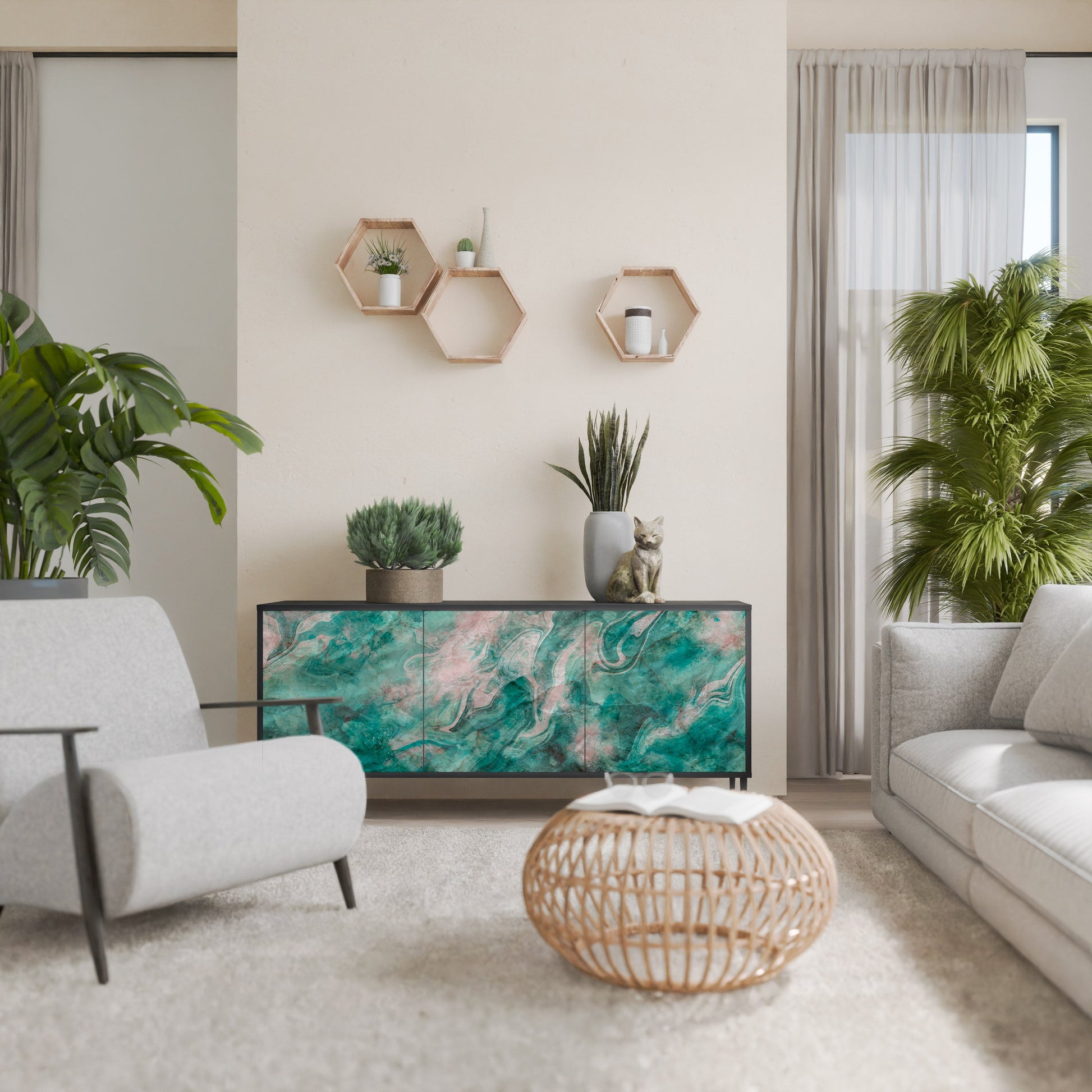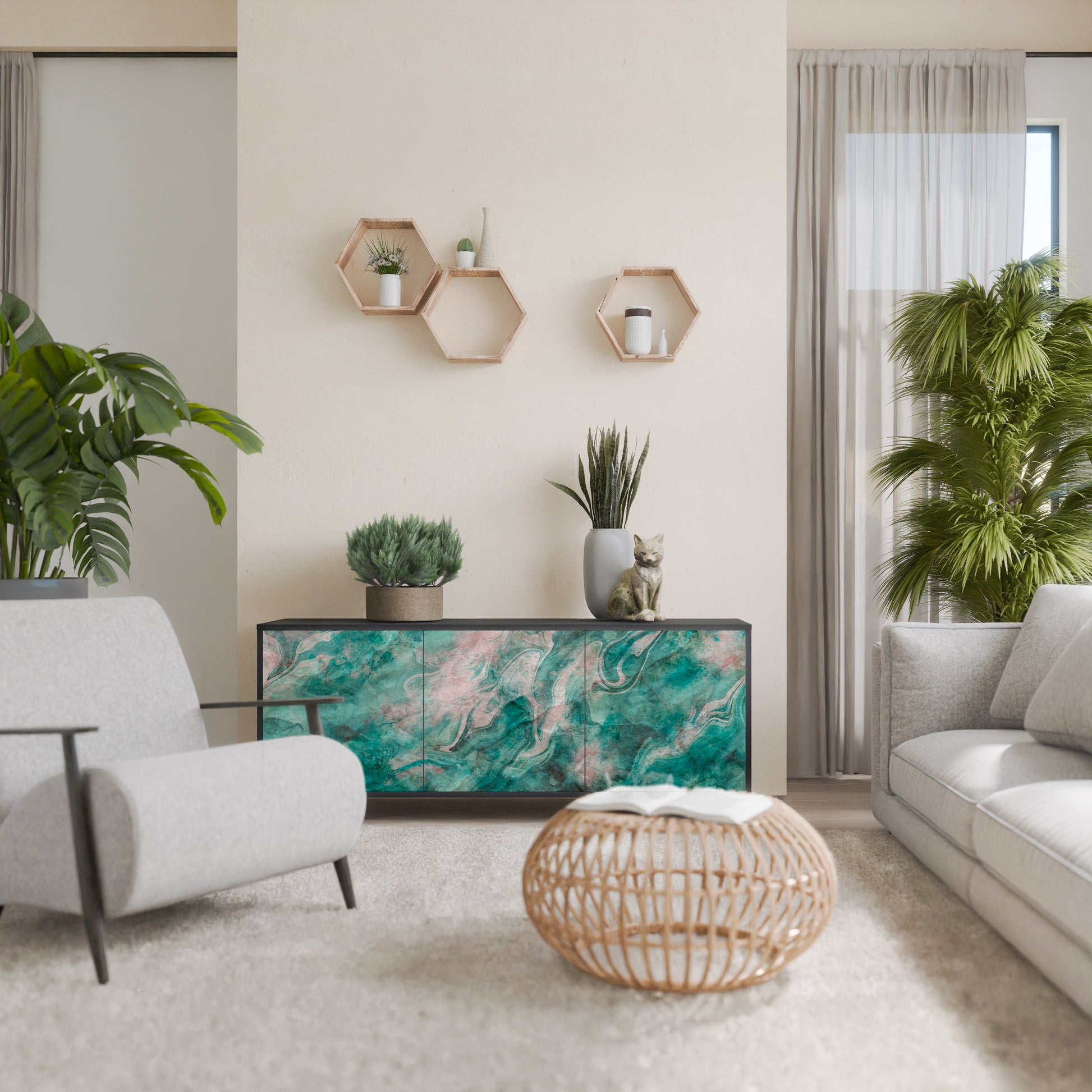Eleganza e funzionalità in un unico arredo – la nostra madia a 3 ante con corpo nero è la scelta perfetta per chi ama gli interni moderni e di carattere. Il corpo nero enfatizza la personalità decisa del mobile, mentre i frontali con stampa esclusiva aggiungono un tocco artistico e ricercato. Si inserisce alla perfezione in soggiorno, camera da letto o studio, valorizzando sia ambienti contemporanei sia contesti in stile industriale.