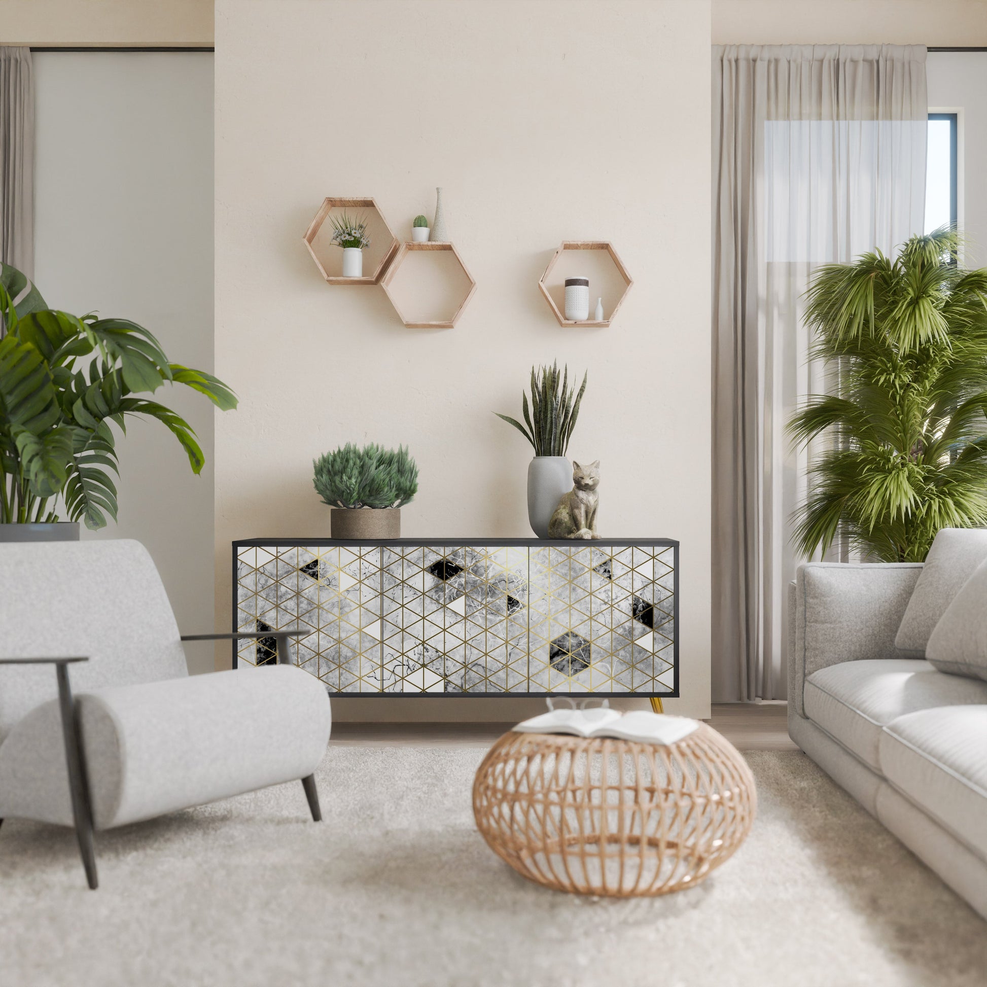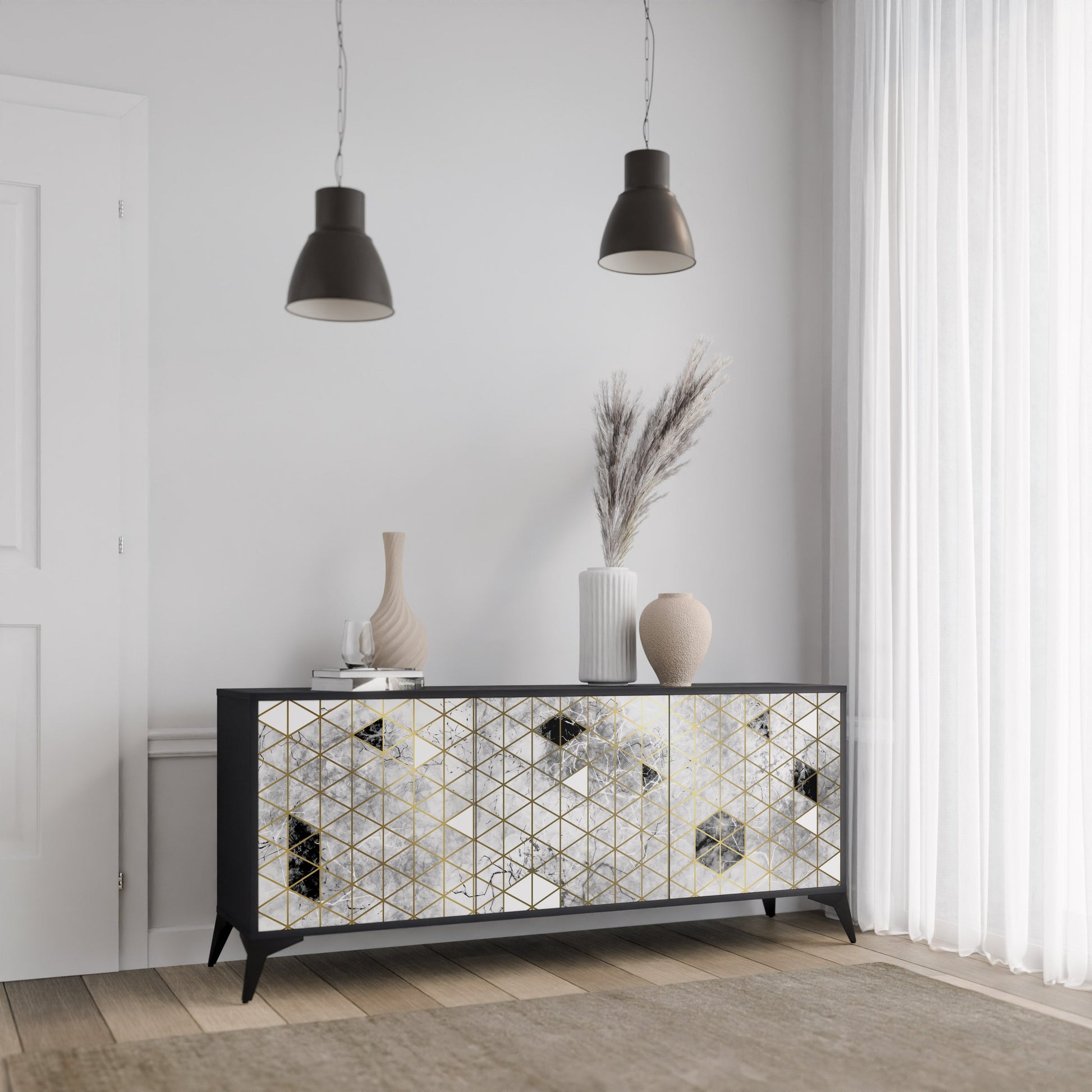 Eleganza e funzionalità in un unico arredo – la nostra madia a 3 ante con corpo nero è la scelta perfetta per chi ama gli interni moderni e di carattere. Il corpo nero enfatizza la personalità decisa del mobile, mentre i frontali con stampa esclusiva aggiungono un tocco artistico e ricercato. Si inserisce alla perfezione in soggiorno, camera da letto o studio, valorizzando sia ambienti contemporanei sia contesti in stile industriale.
