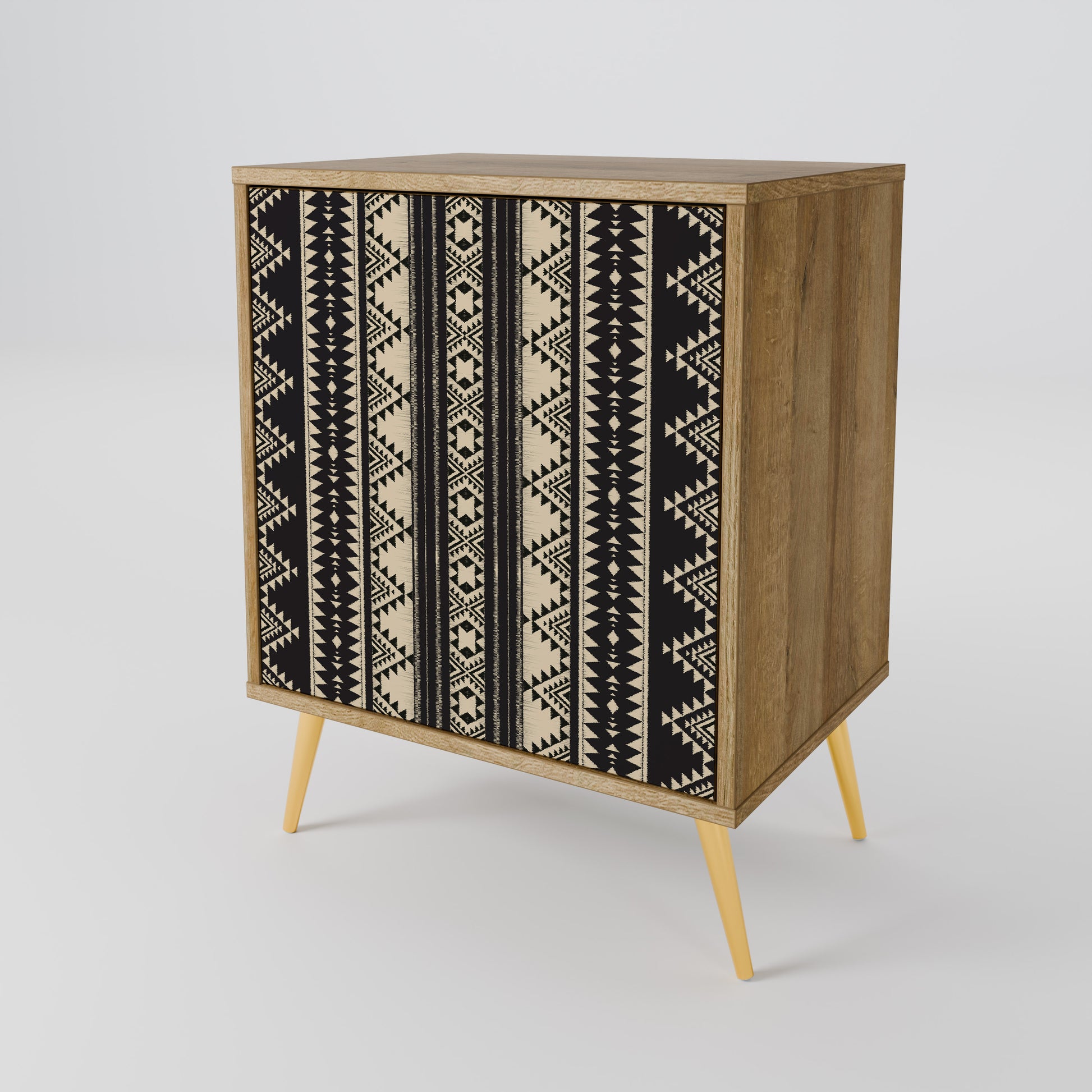 Il frontale dal design elegante, arricchito da una stampa esclusiva del motivo AZTEC, aggiunge un tocco moderno e rende la madia non solo un mobile pratico, ma anche un importante elemento decorativo dell’arredo.
