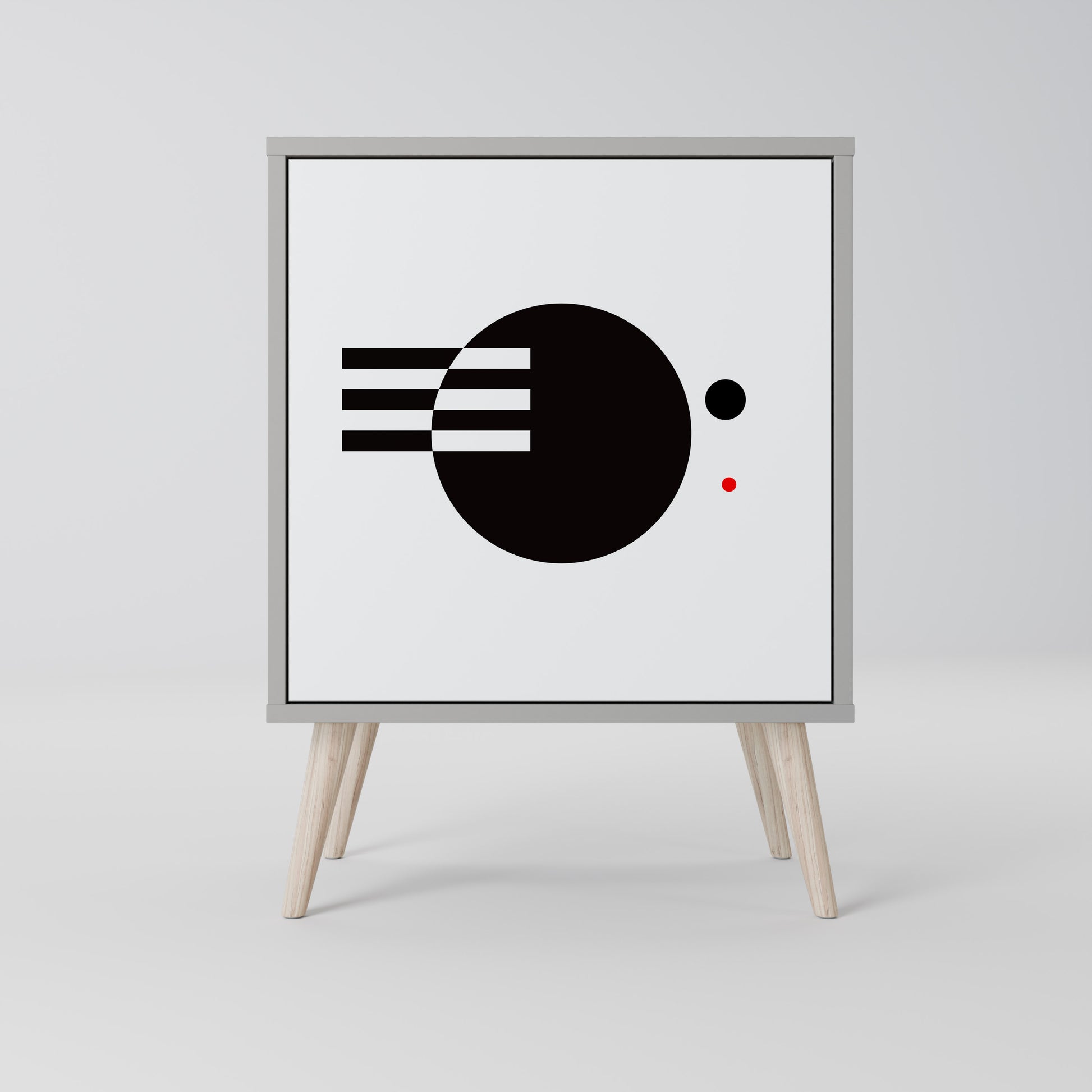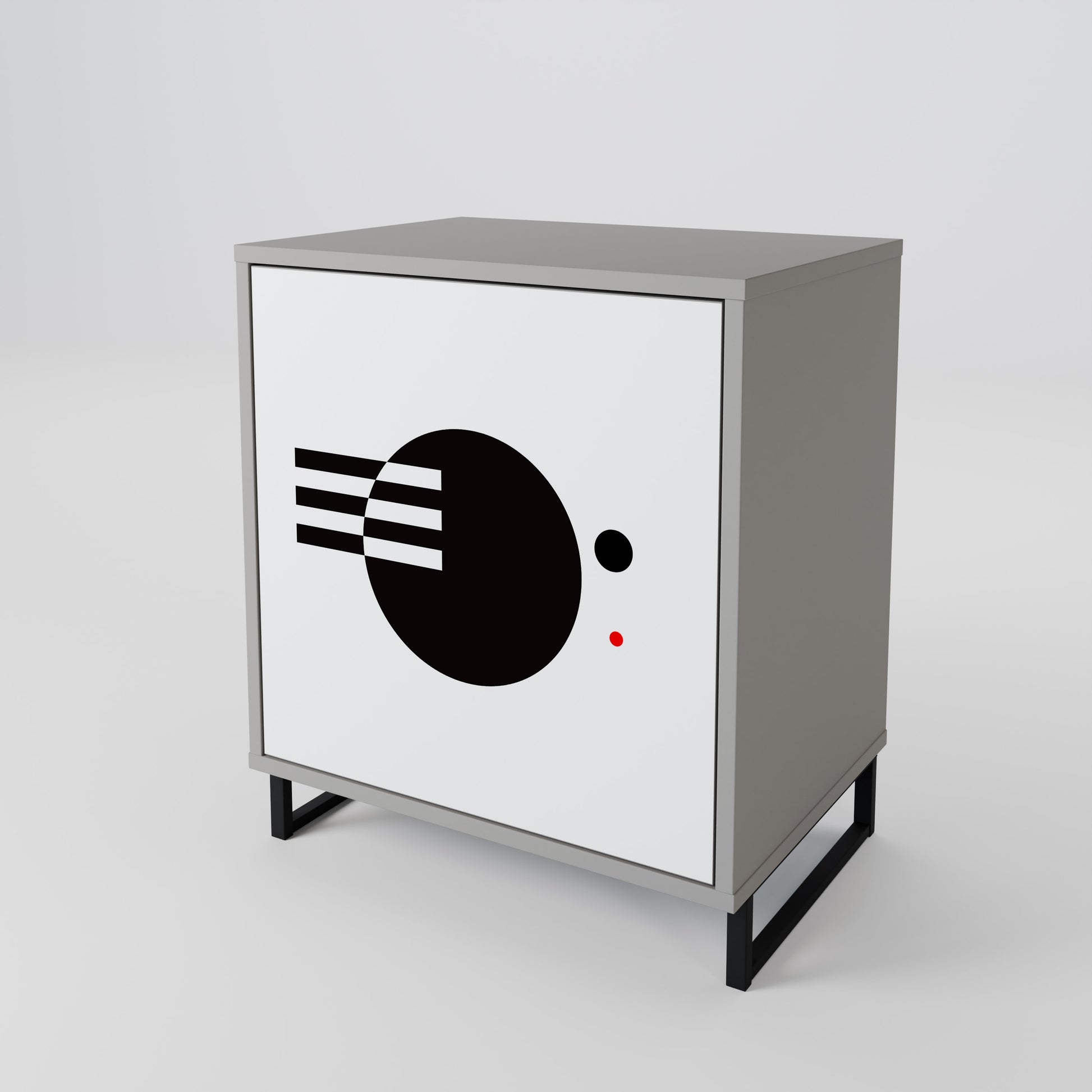 Credenza a 1 anta con combinazione bianco e nero, finitura grigia