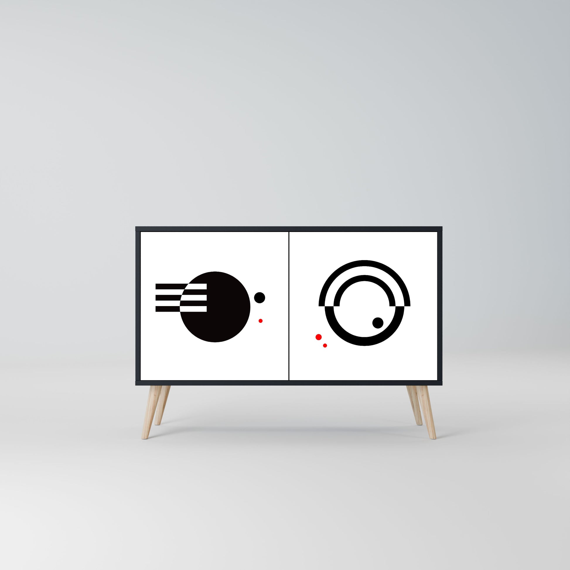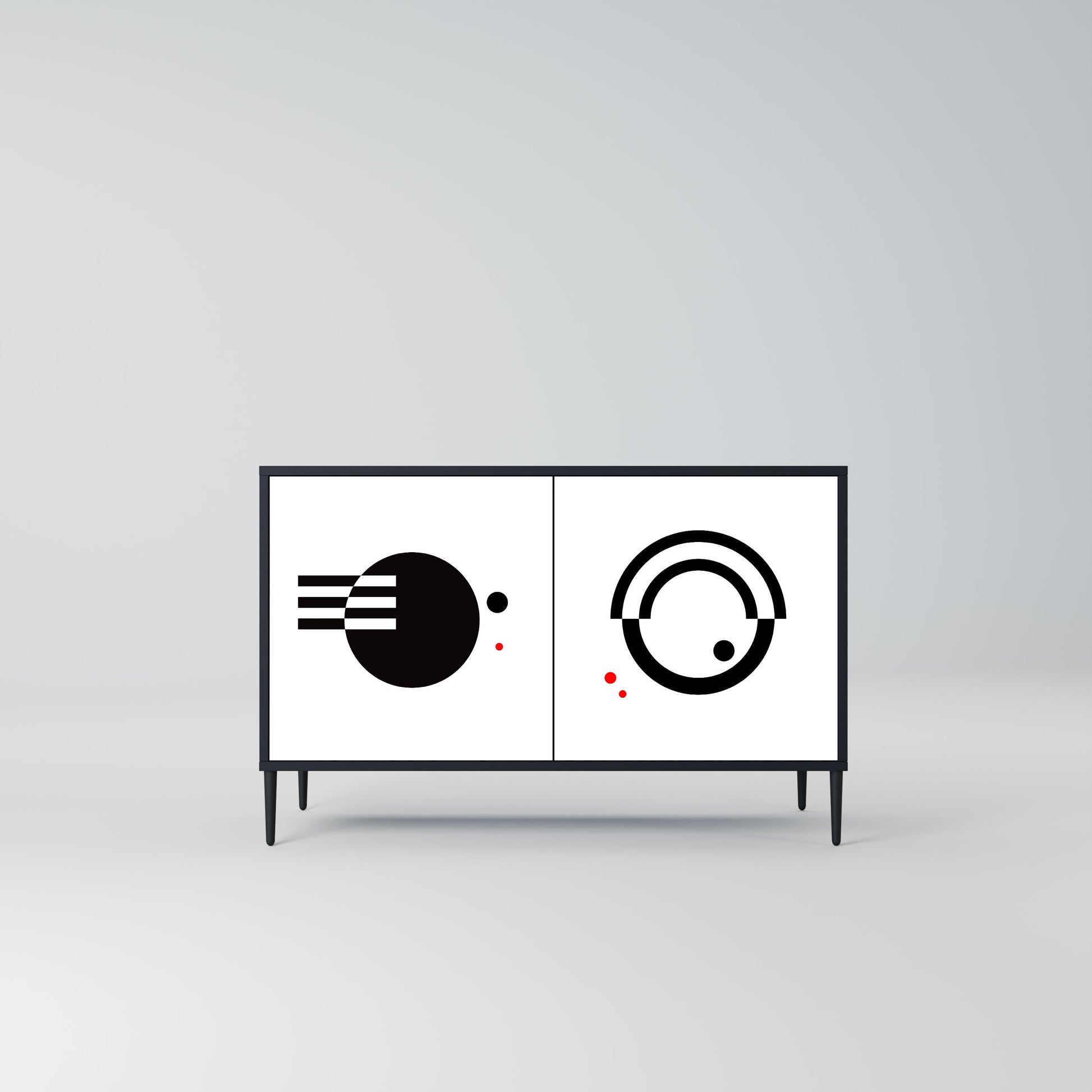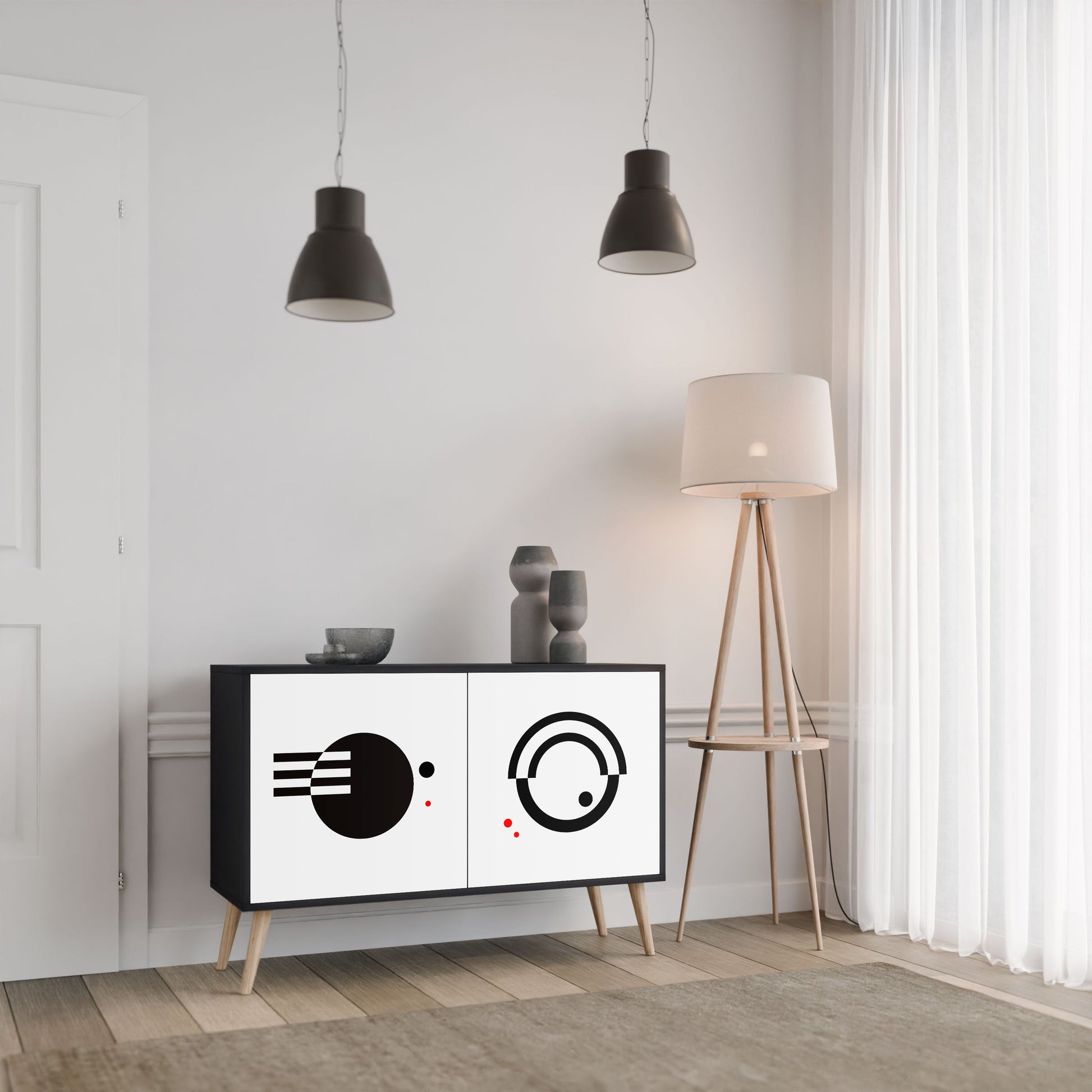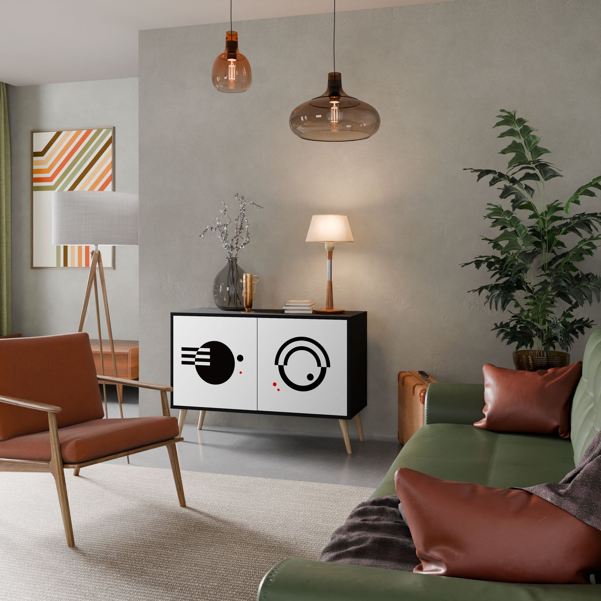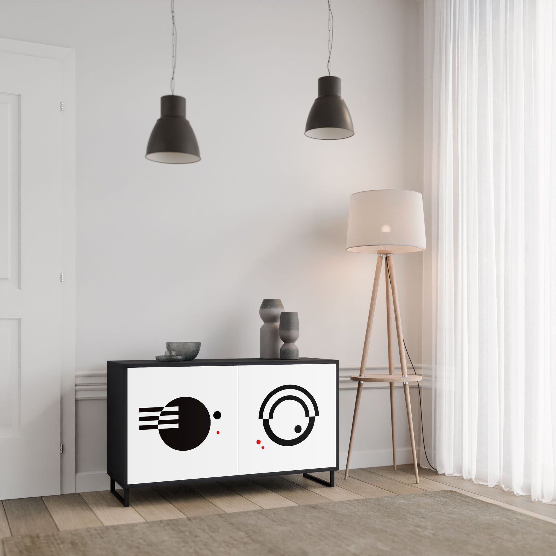 Eleganza e funzionalità in un unico arredo – la nostra madia a 2 ante con corpo nero è la scelta perfetta per chi ama gli interni moderni e di carattere. Il corpo nero enfatizza la personalità decisa del mobile, mentre i frontali con stampa esclusiva aggiungono un tocco artistico e ricercato. Si inserisce alla perfezione in soggiorno, camera da letto o studio, valorizzando sia ambienti contemporanei sia contesti in stile industriale.