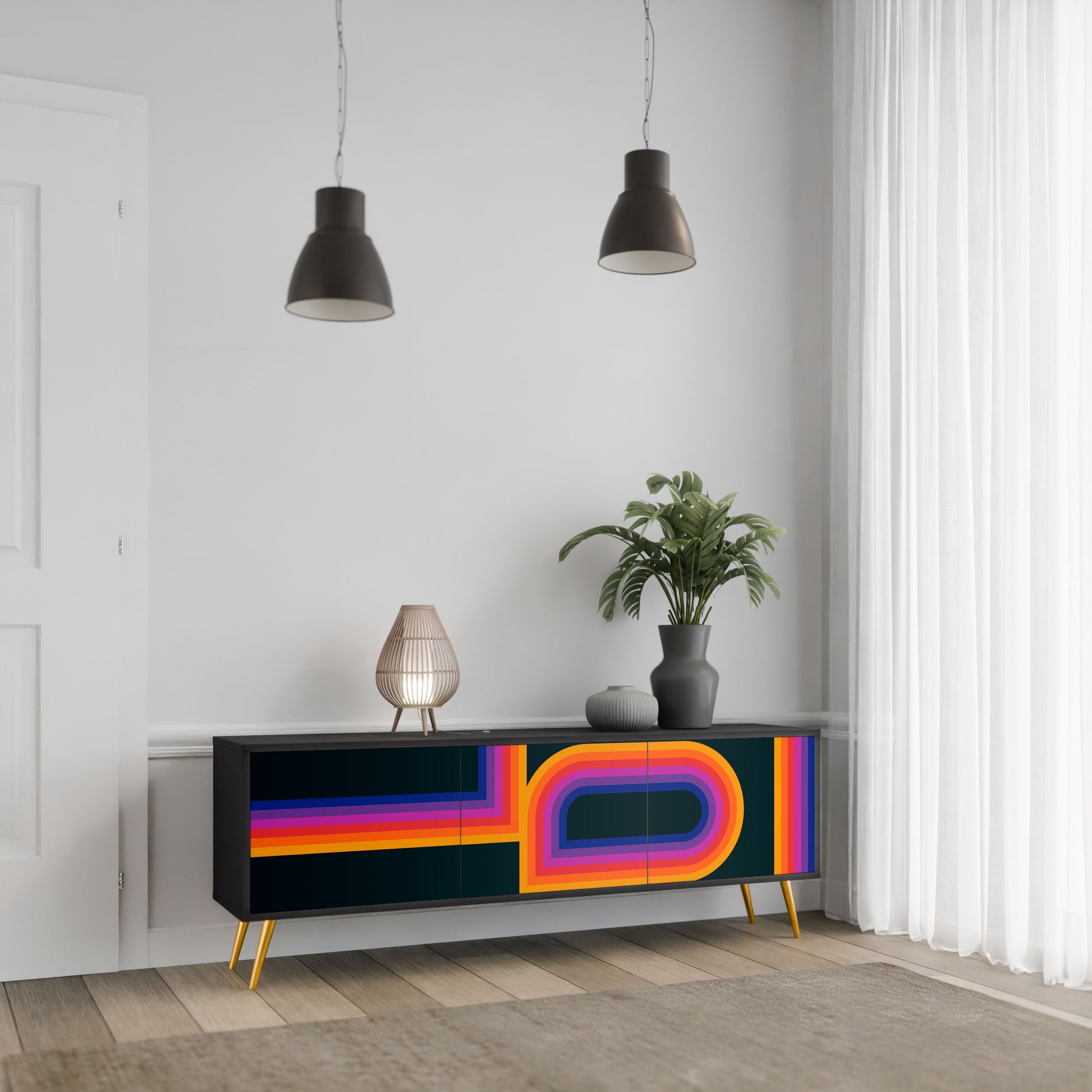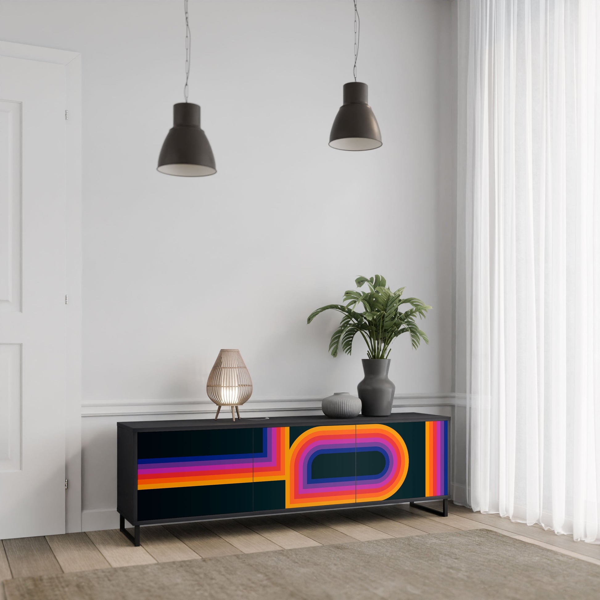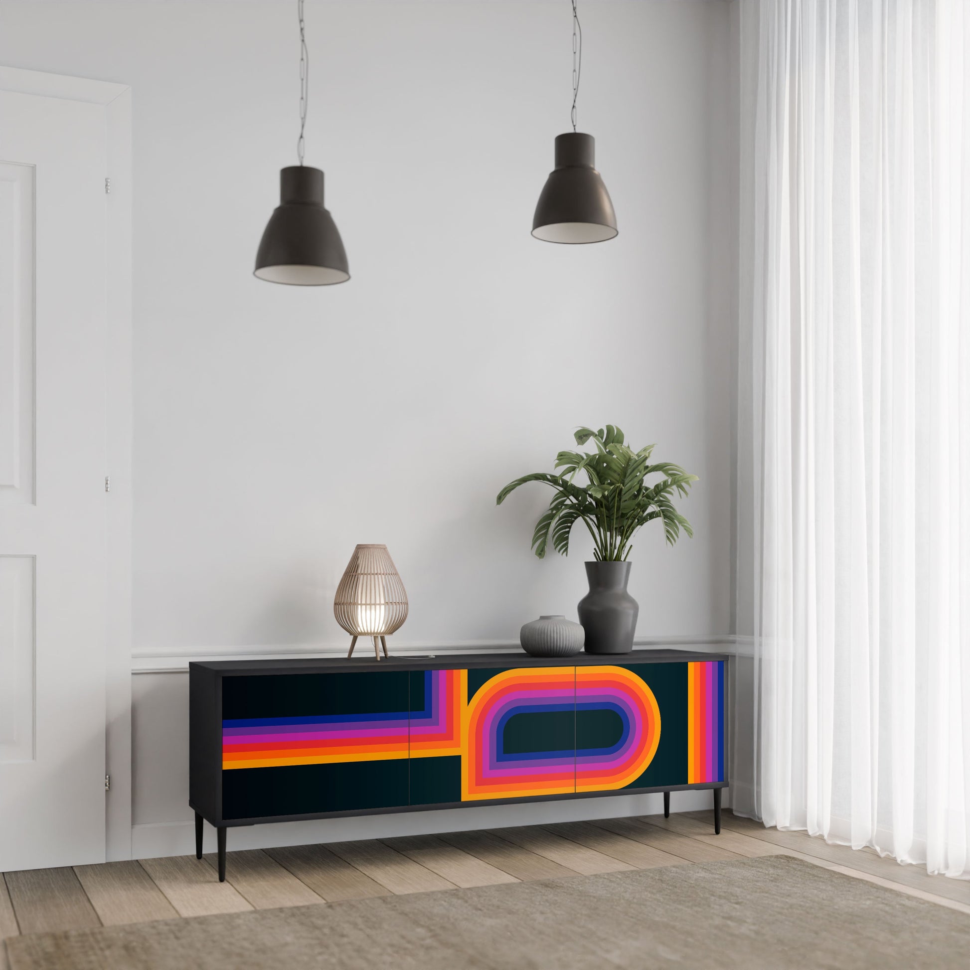 Il corpo nero del mobile crea un accento deciso e contemporaneo, che si abbina alla perfezione agli ambienti in stile industriale e minimalista. I frontali con stampa dal design ricercato aggiungono carattere e unicità, rendendo questo mobile non solo pratico, ma anche un forte elemento decorativo.