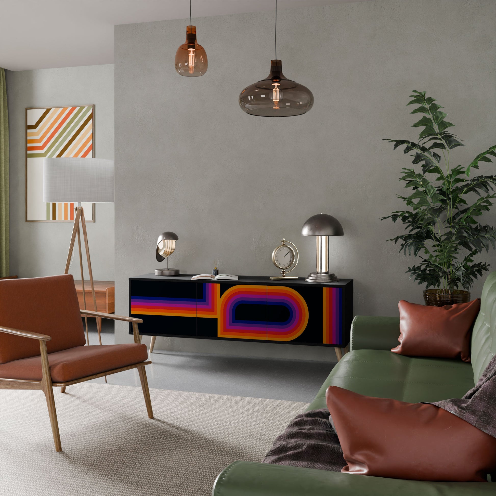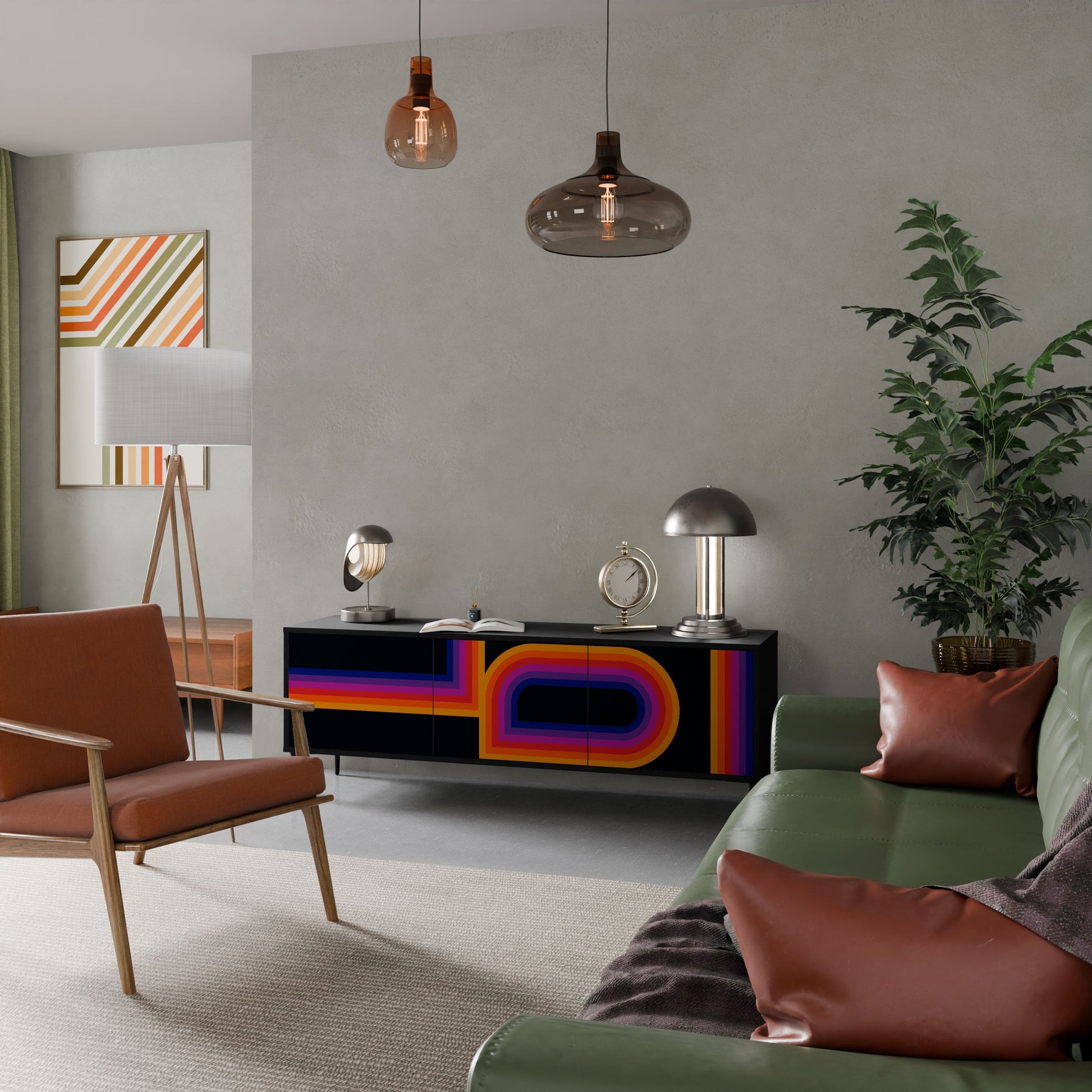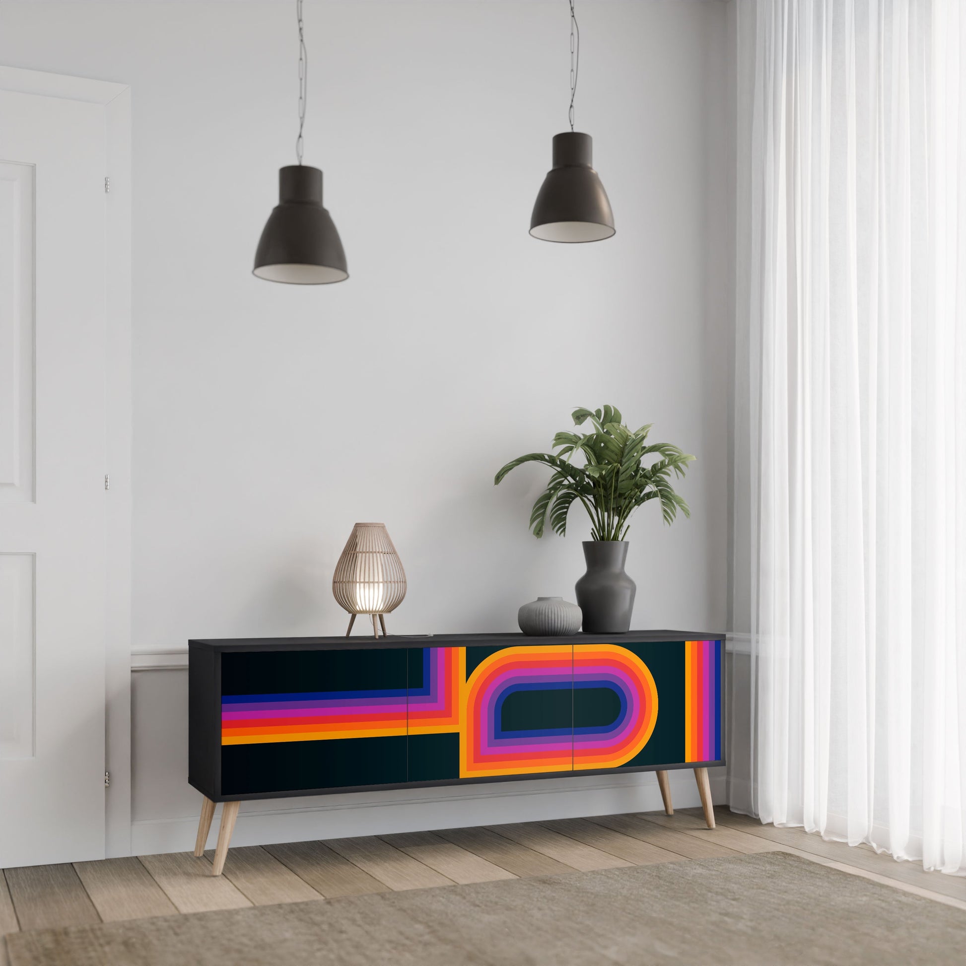 Il corpo nero del mobile crea un accento deciso e contemporaneo, che si abbina alla perfezione agli ambienti in stile industriale e minimalista. I frontali con stampa dal design ricercato aggiungono carattere e unicità, rendendo questo mobile non solo pratico, ma anche un forte elemento decorativo.