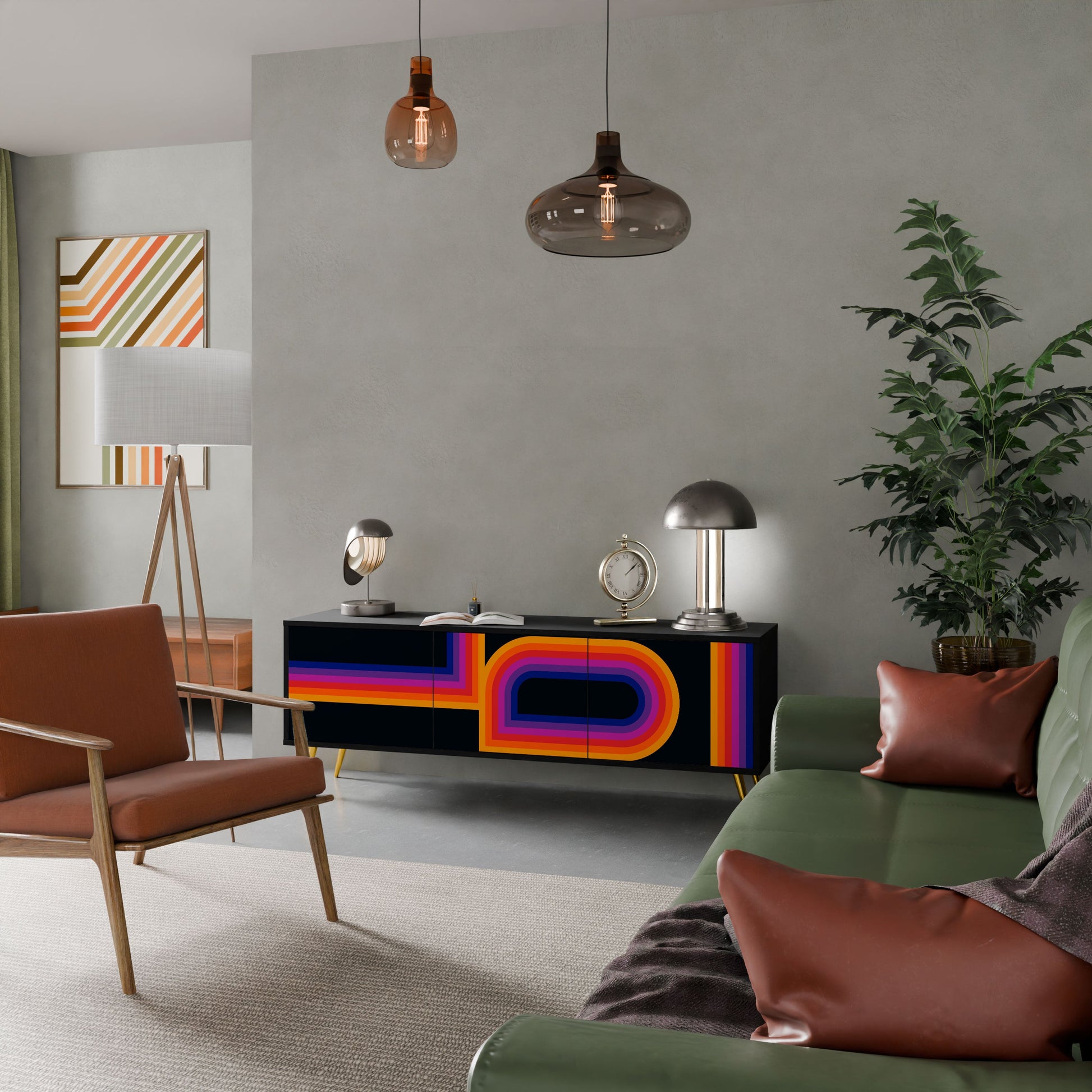 Scopri il perfetto equilibrio tra stile e funzionalità! Il nostro mobile TV a 3 ante con corpo nero porta eleganza moderna e il massimo spazio contenitivo nel tuo soggiorno. È la scelta ideale per la zona living, offrendo un piano per la TV e spazio dedicato a dispositivi elettronici, accessori e decorazioni.