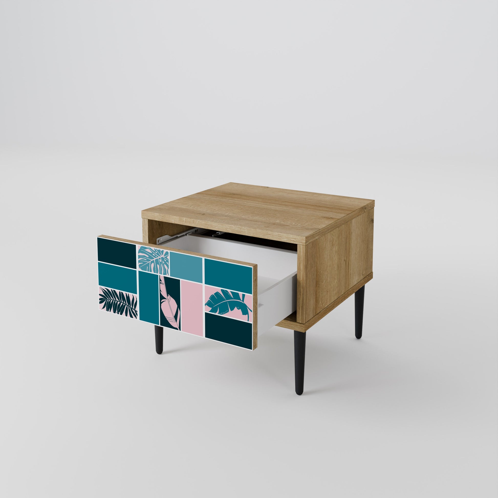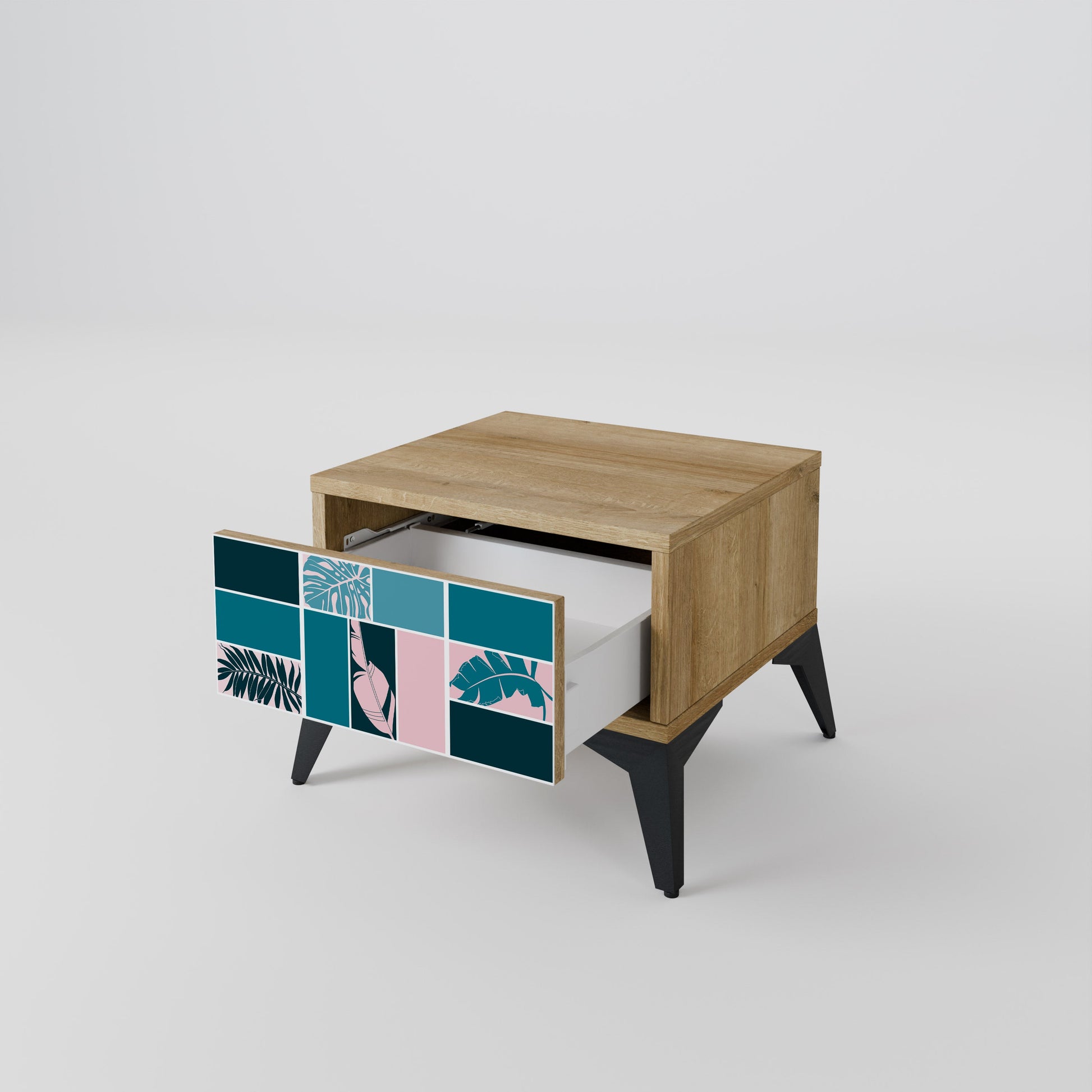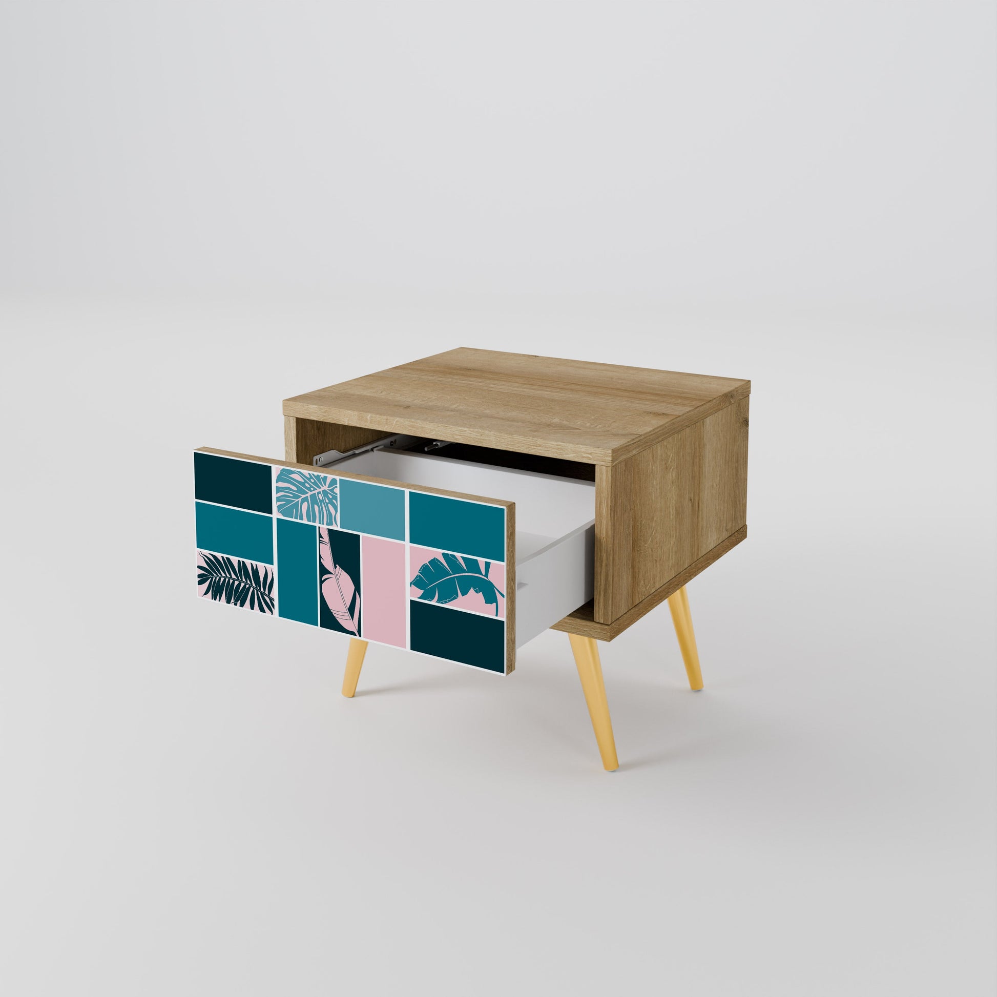 Scopri funzionalità ed eleganza in un formato compatto con il nostro comodino con cassetto. Questo elemento d’arredo pratico e di stile combina perfettamente la bellezza naturale del legno con un design moderno sul frontale del cassetto, creando un dettaglio armonioso per qualsiasi camera da letto.