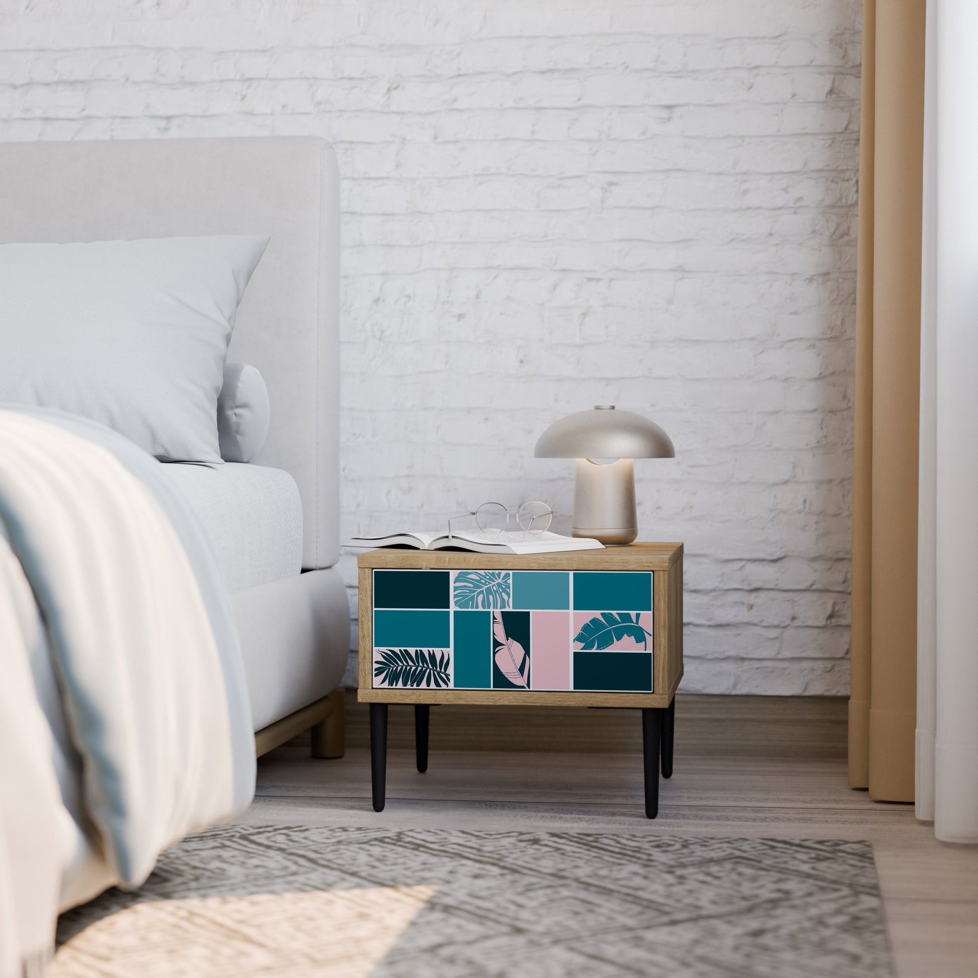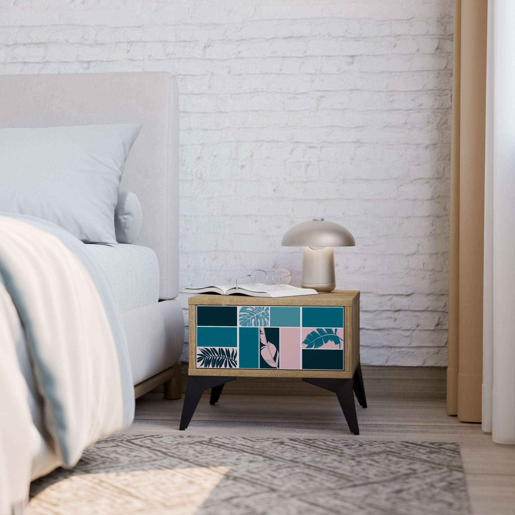 Il comodino è progettato pensando alla tua praticità e all’ordine. Il cassetto capiente è ideale per riporre piccoli oggetti, come cosmetici o caricabatterie, mentre l’ampio piano superiore offre spazio per una lampada da notte, un libro o il telefono, garantendoti che tutto ciò di cui hai bisogno prima di dormire sia sempre a portata di mano.