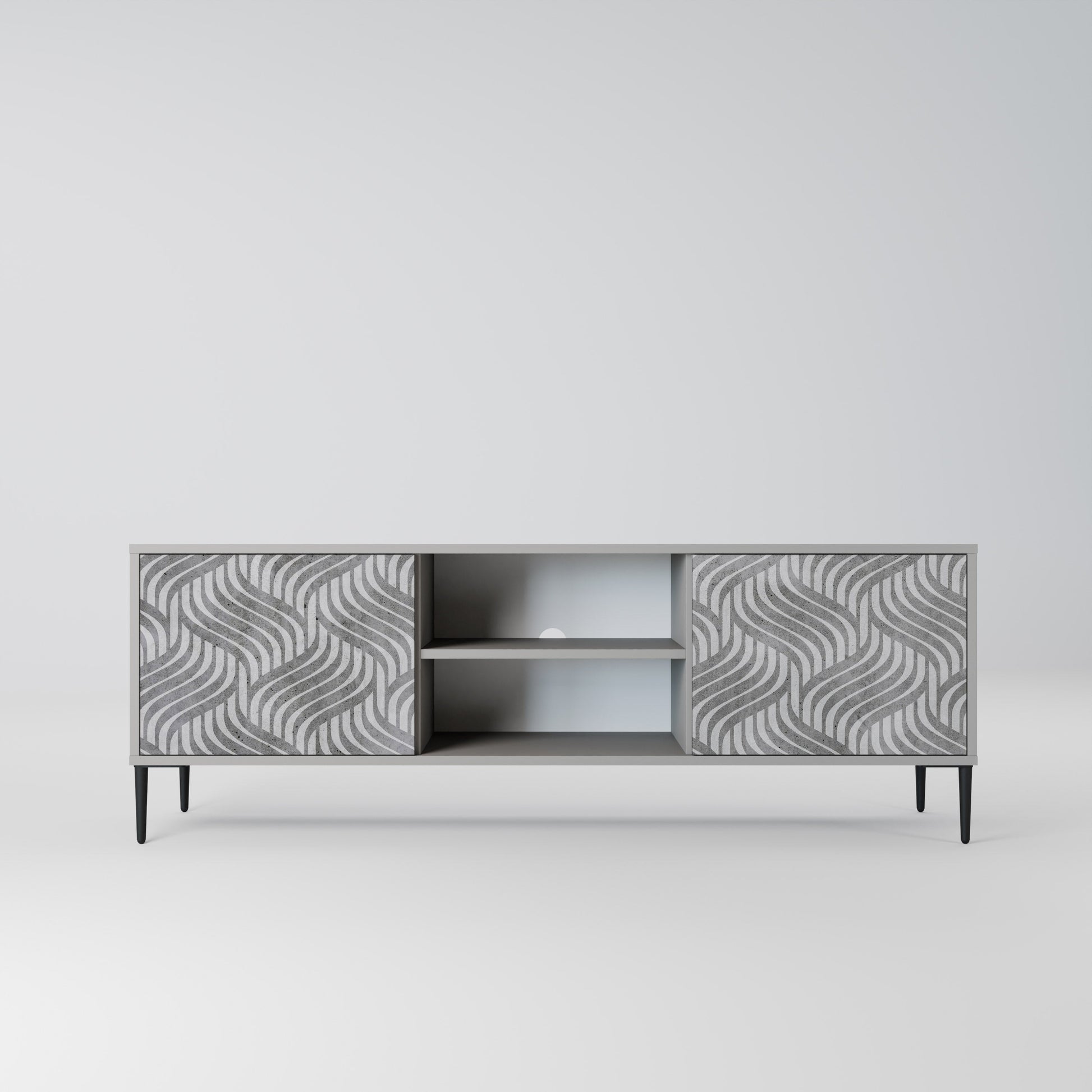 Il corpo grigio conferisce al mobile un aspetto contemporaneo e raffinato, mentre i frontali con stampa decorativa d’effetto catturano lo sguardo e trasformano il mobile nel punto focale della stanza. L’ampio spazio interno permette di riporre dispositivi elettronici, cavi, telecomandi e altri accessori, aiutandoti a mantenere ordine e organizzazione.