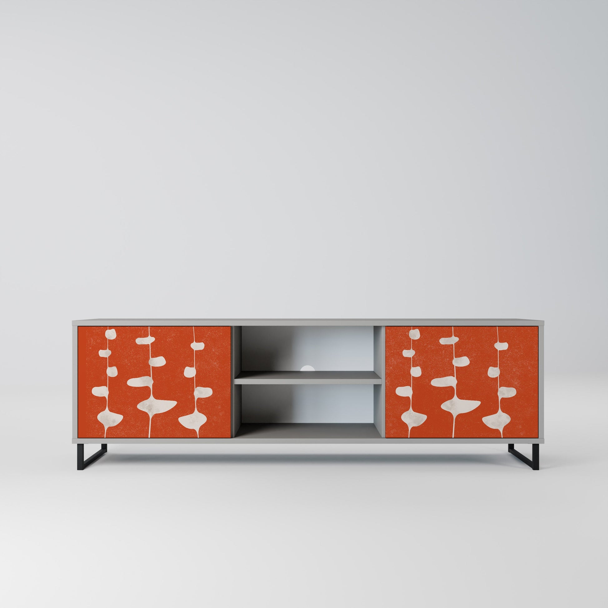 Il corpo grigio conferisce al mobile un aspetto contemporaneo e raffinato, mentre i frontali con stampa decorativa d’effetto catturano lo sguardo e trasformano il mobile nel punto focale della stanza. L’ampio spazio interno permette di riporre dispositivi elettronici, cavi, telecomandi e altri accessori, aiutandoti a mantenere ordine e organizzazione.