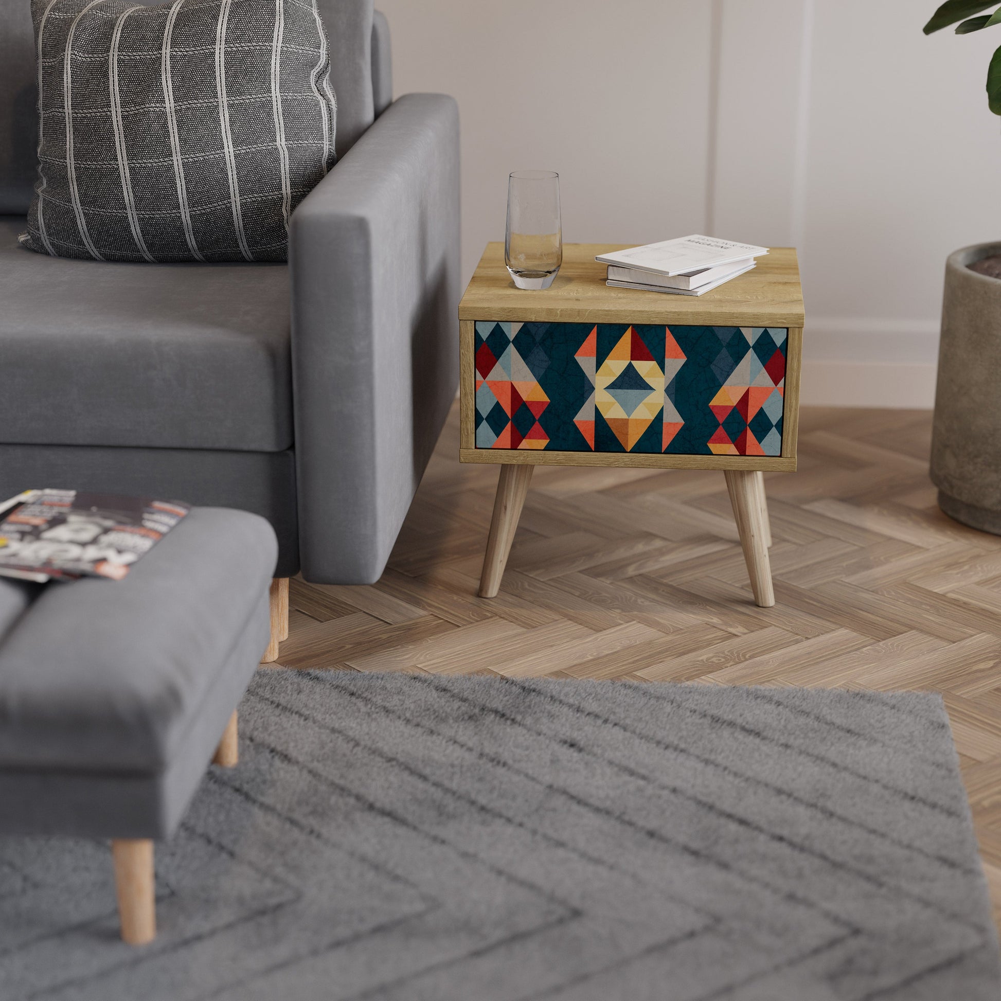 Scopri funzionalità ed eleganza in un formato compatto con il nostro comodino con cassetto. Questo elemento d’arredo pratico e di stile combina perfettamente la bellezza naturale del legno con un design moderno sul frontale del cassetto, creando un dettaglio armonioso per qualsiasi camera da letto.