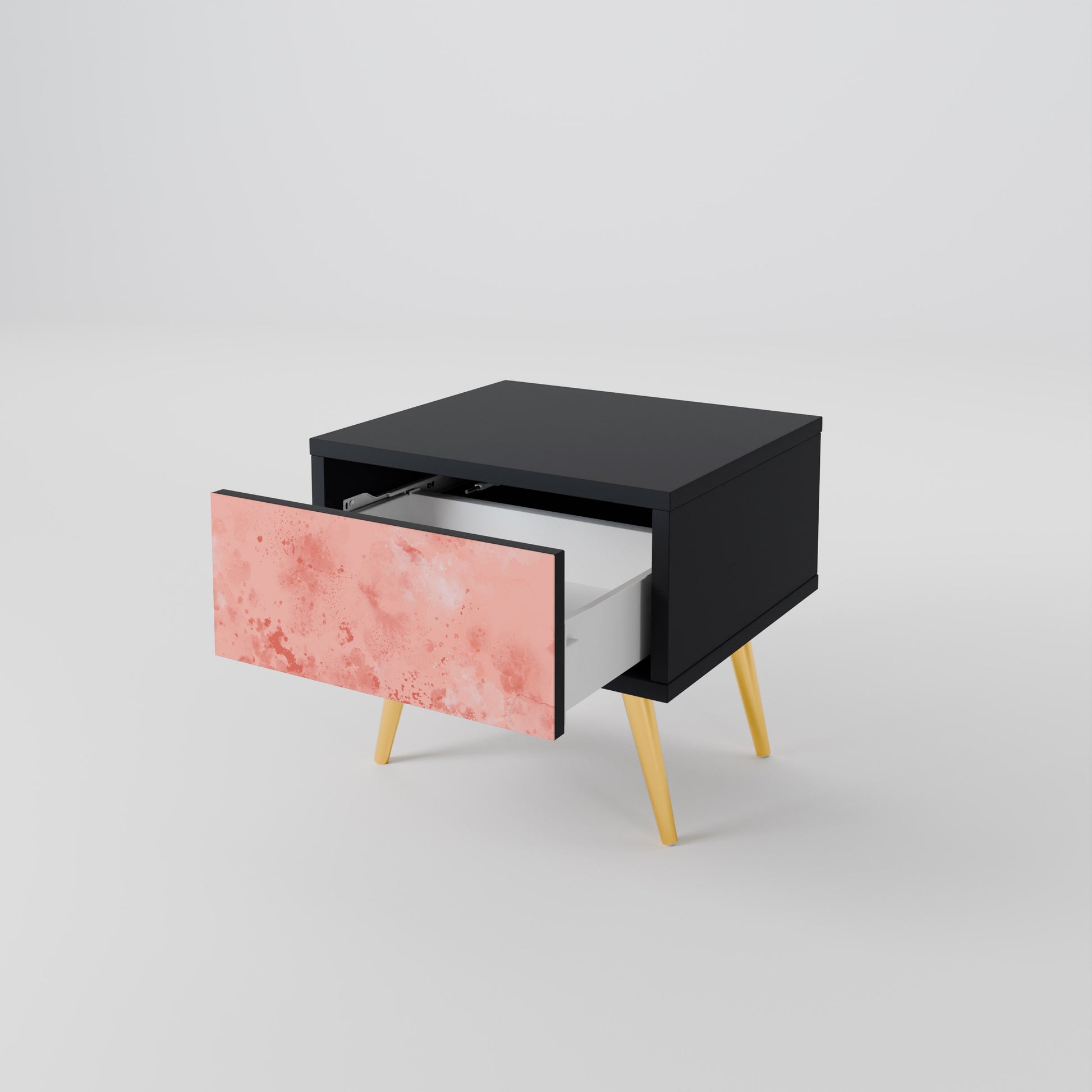 Scopri raffinatezza e praticità in un formato compatto con il nostro comodino con cassetto in elegante finitura nera. Questo elemento d’arredo funzionale e sofisticato unisce uno stile contemporaneo a un design minimalista, diventando un dettaglio di grande impatto in qualsiasi camera da letto.