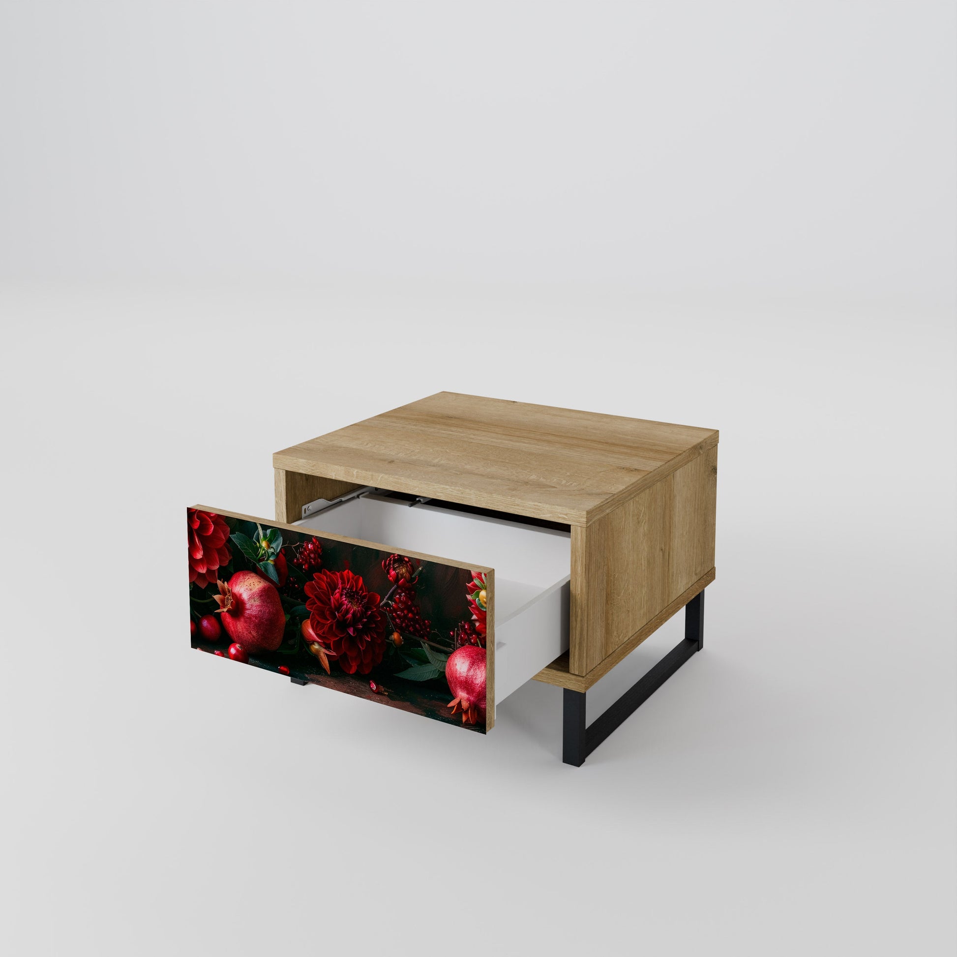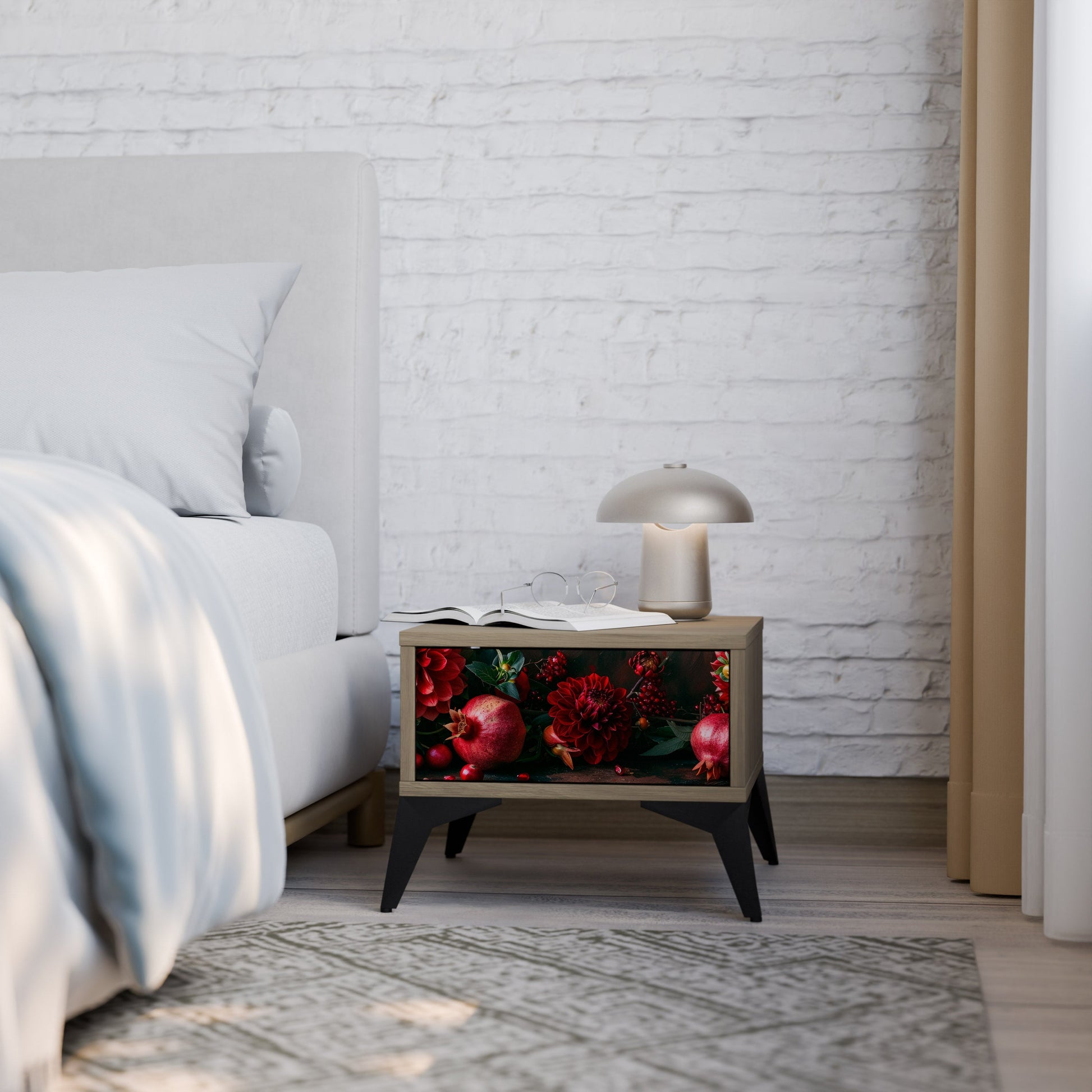 DAHLIAS AND POMEGRANATES Comodino in Effetto Rovere