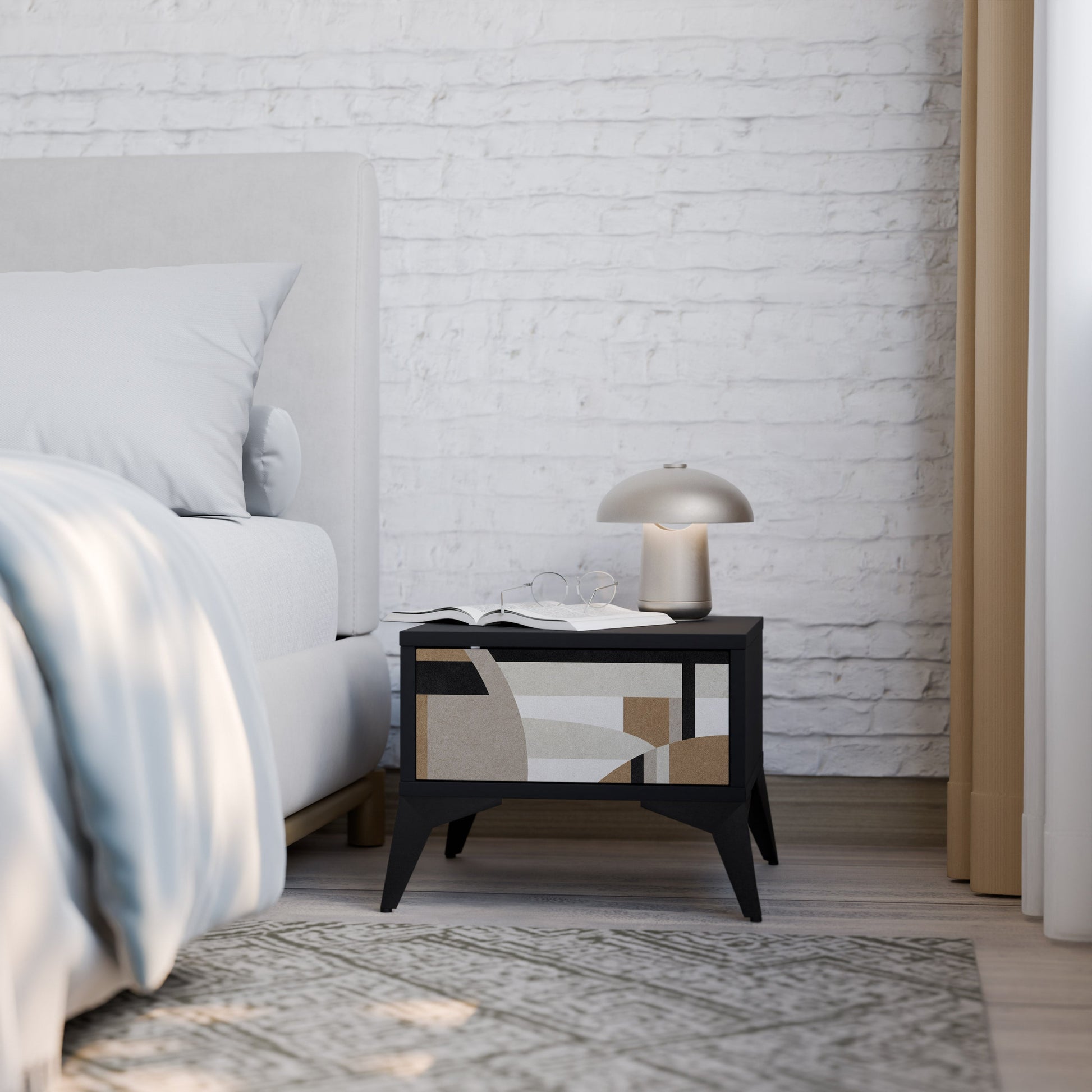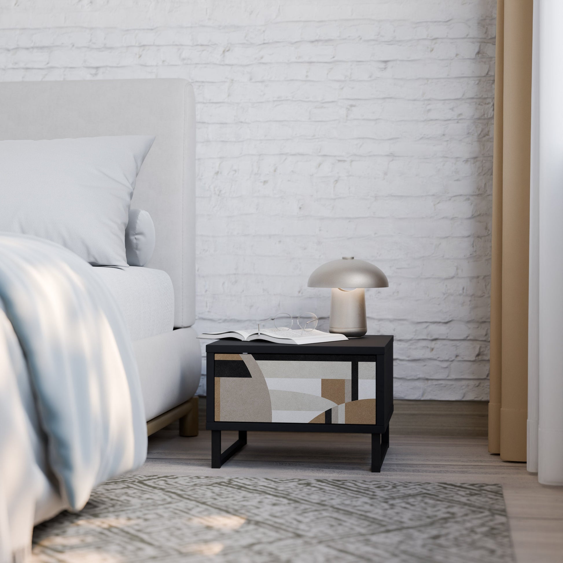 Scopri raffinatezza e praticità in un formato compatto con il nostro comodino con cassetto in elegante finitura nera. Questo elemento d’arredo funzionale e sofisticato unisce uno stile contemporaneo a un design minimalista, diventando un dettaglio di grande impatto in qualsiasi camera da letto.