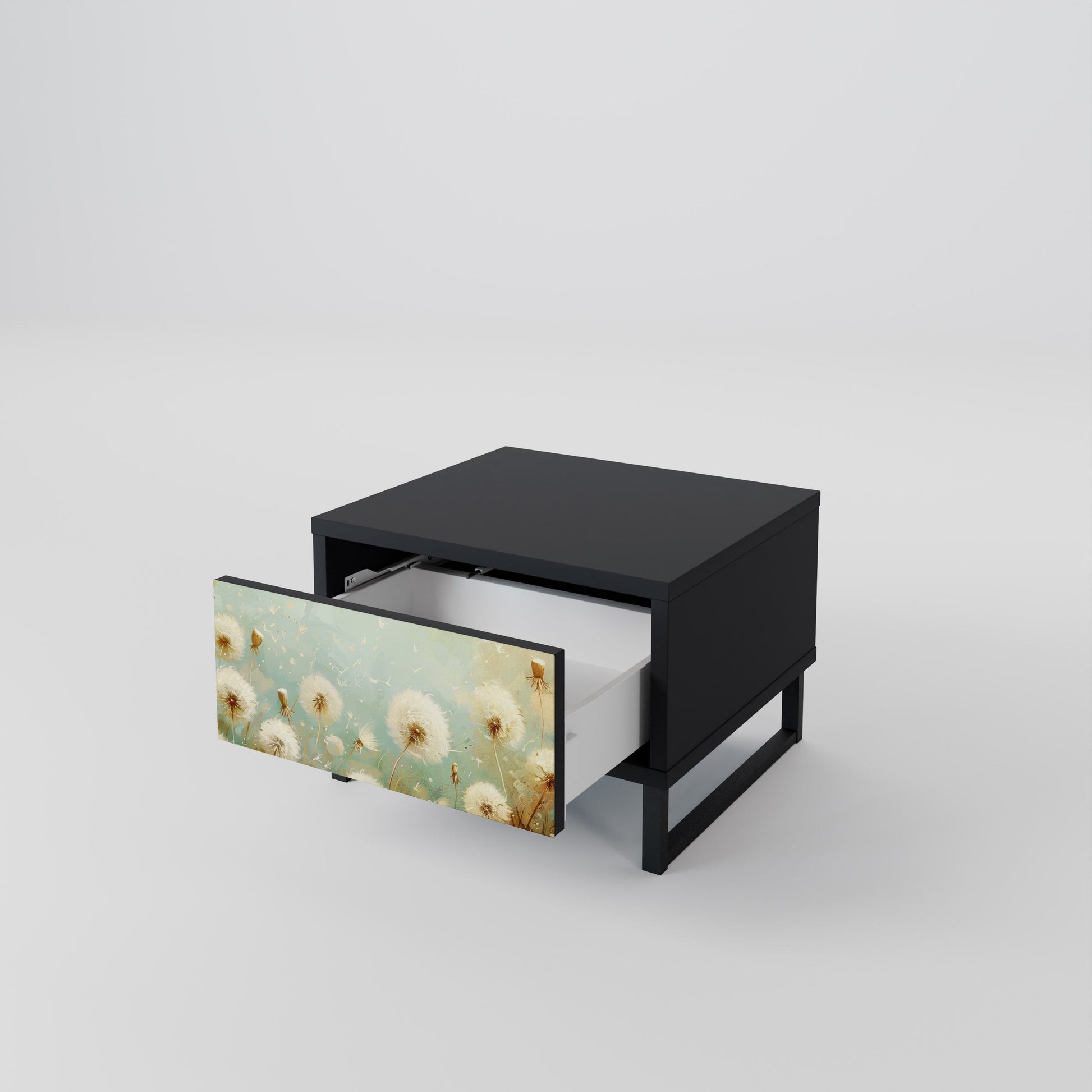 Scopri raffinatezza e praticità in un formato compatto con il nostro comodino con cassetto in elegante finitura nera. Questo elemento d’arredo funzionale e sofisticato unisce uno stile contemporaneo a un design minimalista, diventando un dettaglio di grande impatto in qualsiasi camera da letto.