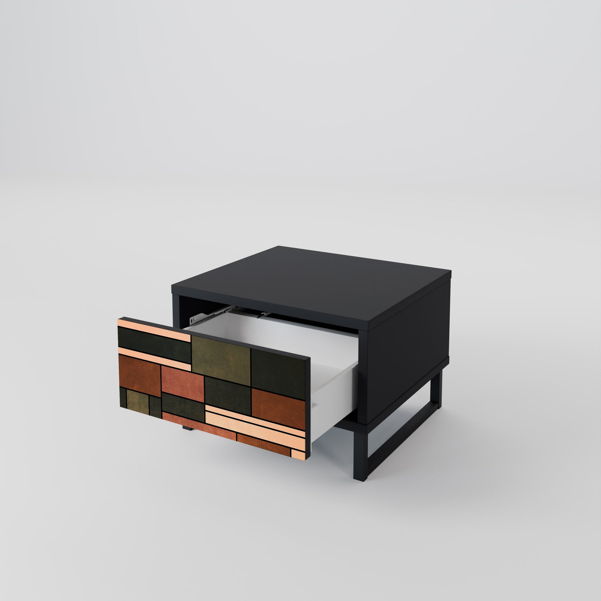 Scopri raffinatezza e praticità in un formato compatto con il nostro comodino con cassetto in elegante finitura nera. Questo elemento d’arredo funzionale e sofisticato unisce uno stile contemporaneo a un design minimalista, diventando un dettaglio di grande impatto in qualsiasi camera da letto.