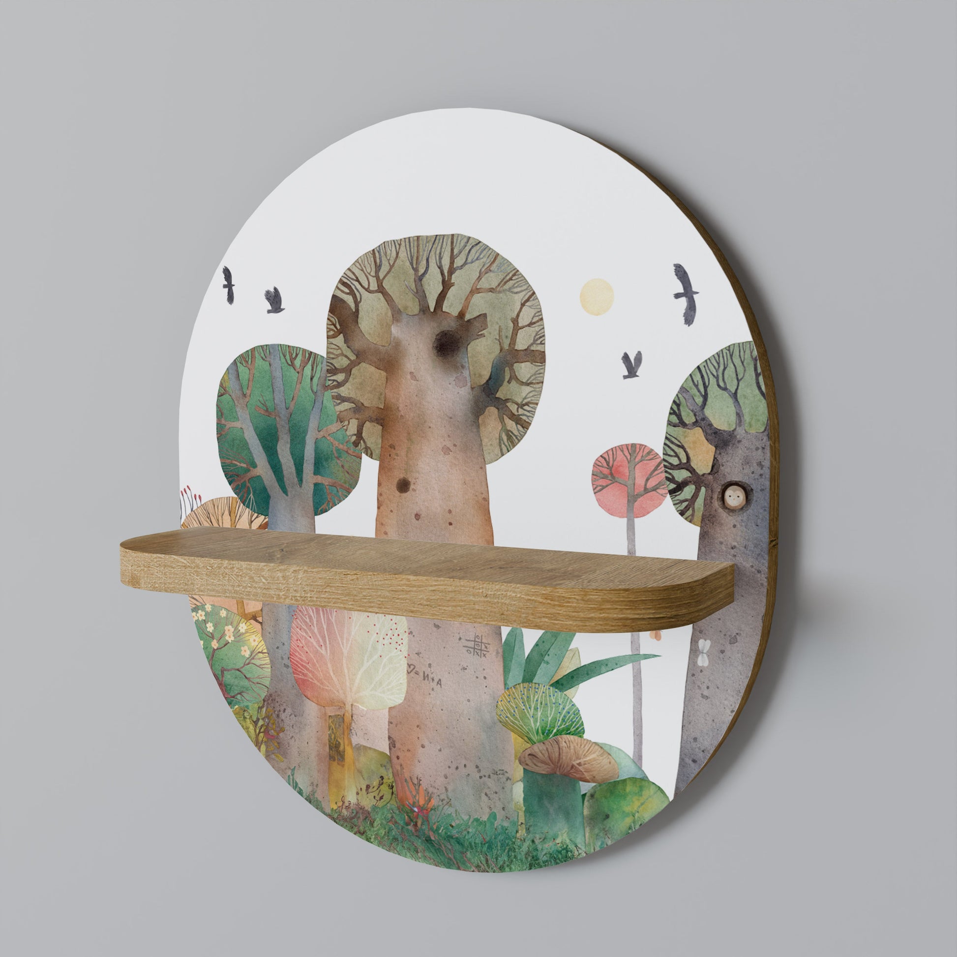 FLIGHT OVER Mensola Ovale Decorativa in Effetto Rovere