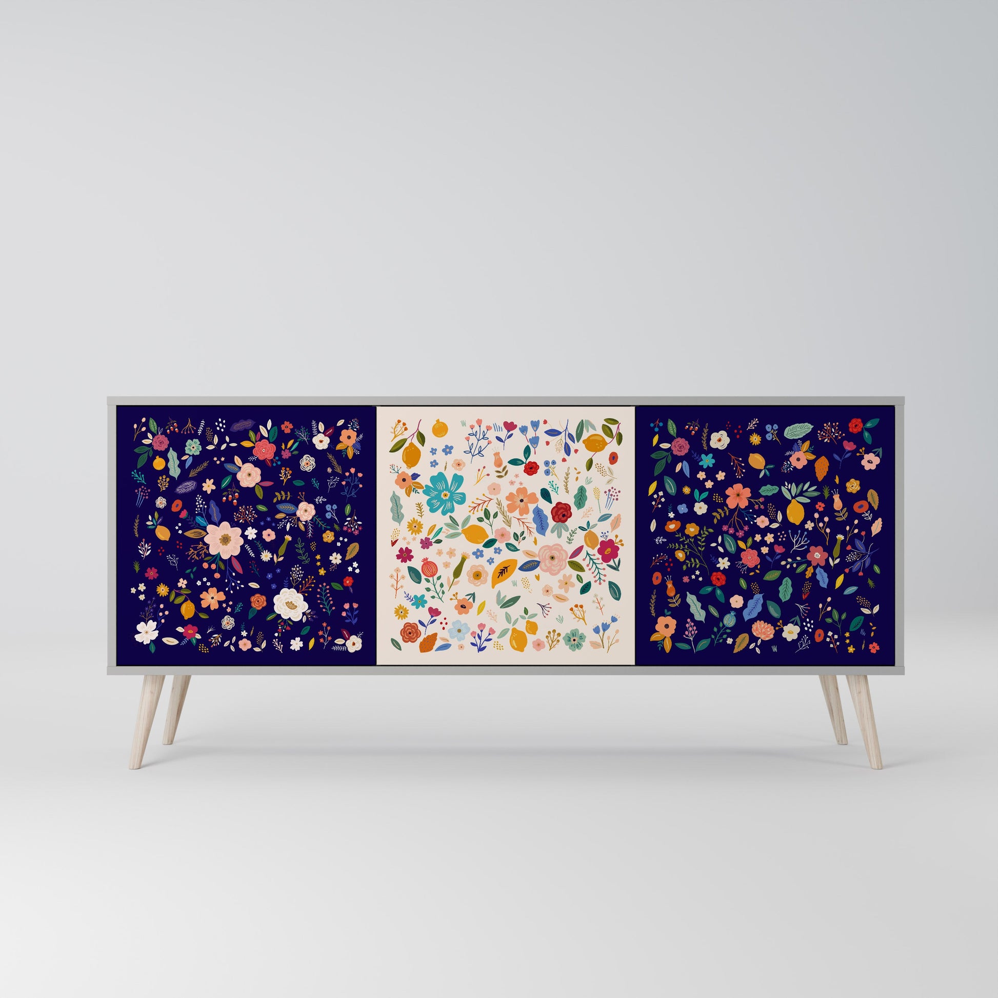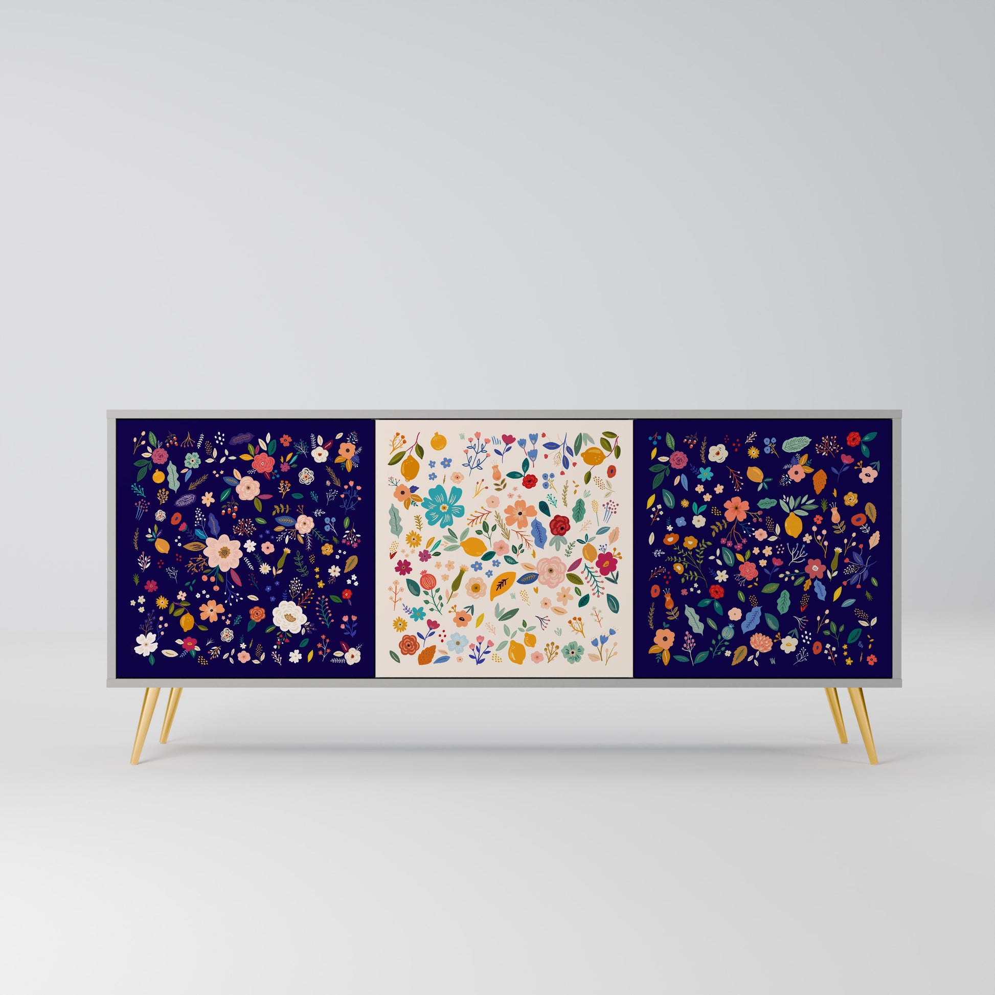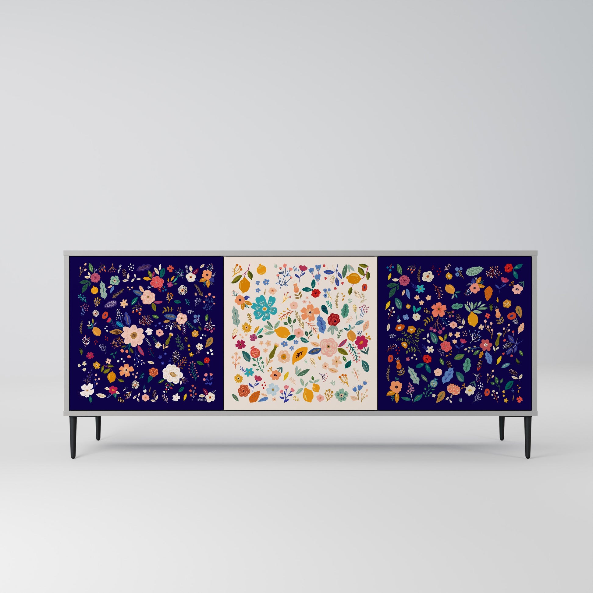 FLORAL COMBINATION Buffet 3 Portes Finition Grise
