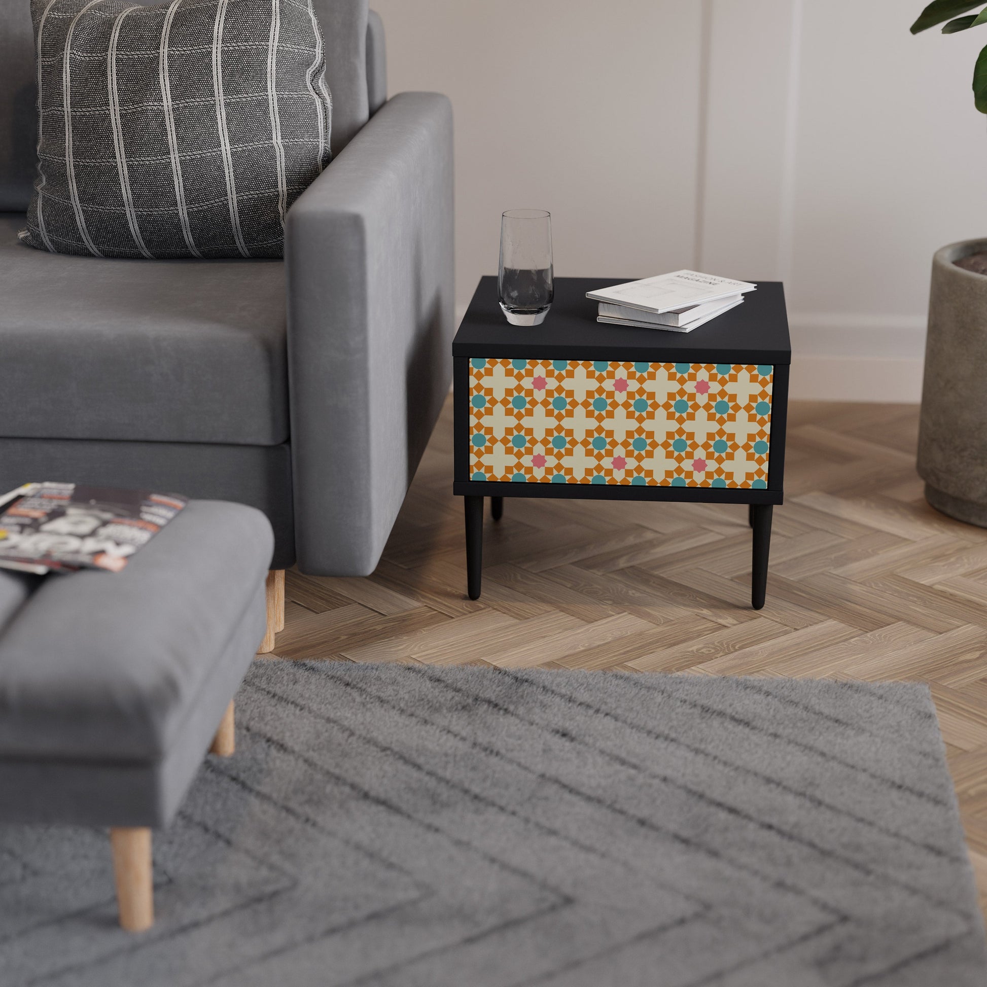 Scopri raffinatezza e praticità in un formato compatto con il nostro comodino con cassetto in elegante finitura nera. Questo elemento d’arredo funzionale e sofisticato unisce uno stile contemporaneo a un design minimalista, diventando un dettaglio di grande impatto in qualsiasi camera da letto.