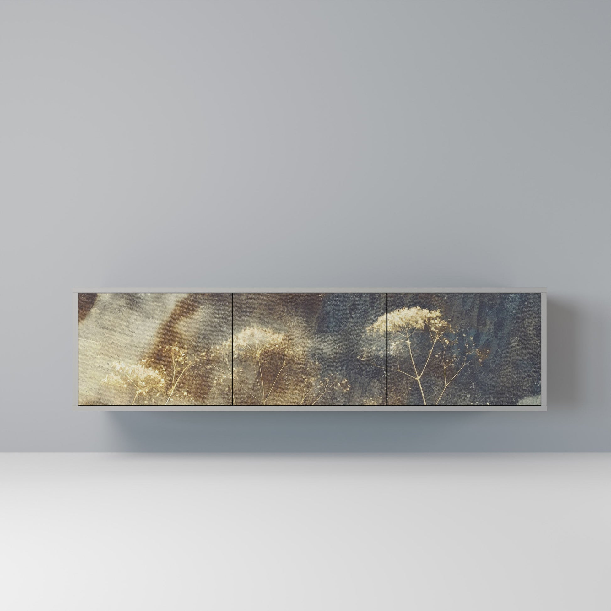 Il corpo grigio del mobile crea un accento raffinato e contemporaneo, che si abbina alla perfezione agli ambienti in stile industriale e minimalista. I frontali con stampa dal design ricercato aggiungono carattere e unicità, rendendo questo mobile non solo pratico, ma anche un forte elemento decorativo.
