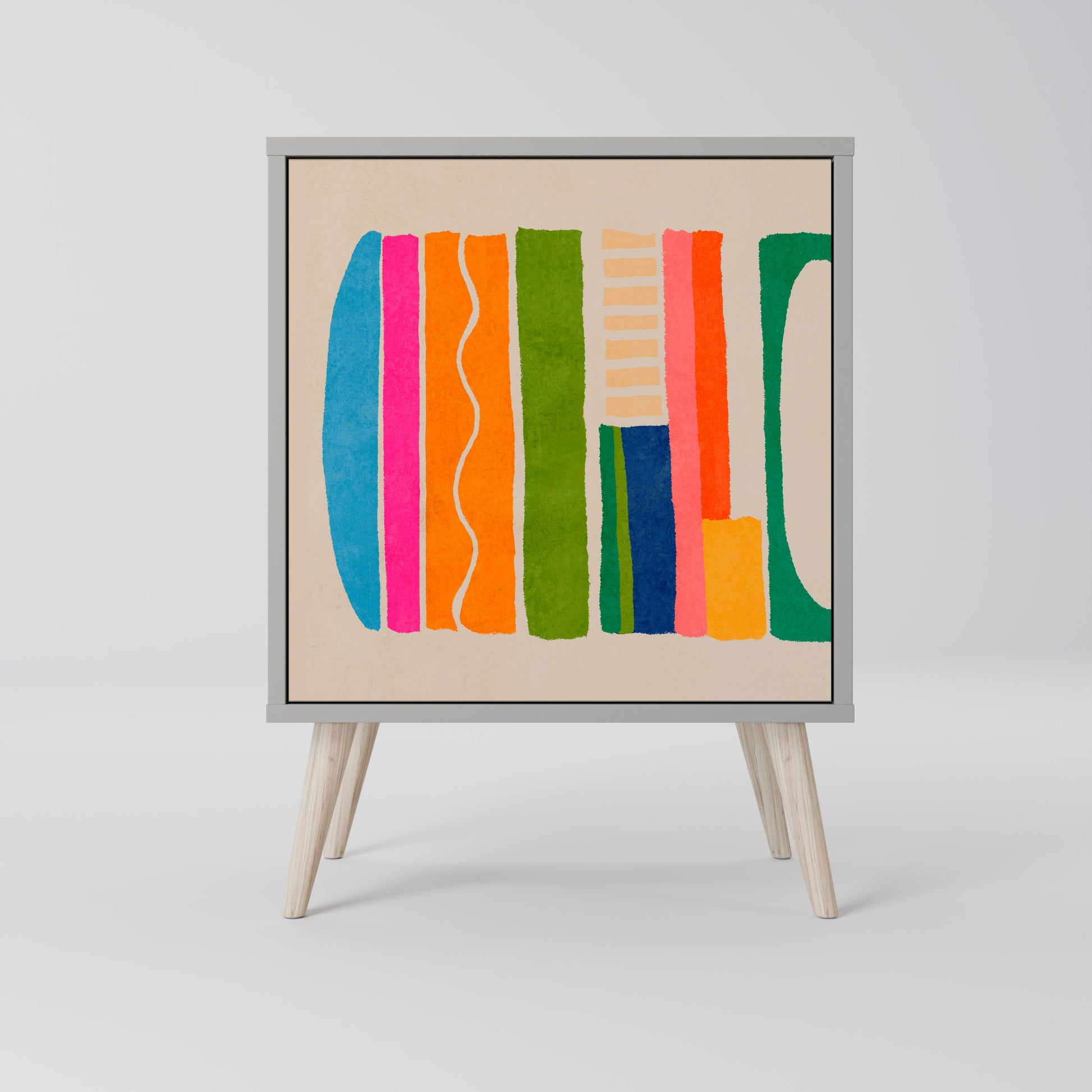 Questo mobile compatto ma straordinariamente elegante colpisce per il suo design minimalista, che si adatta perfettamente sia agli interni moderni che a quelli classici. Il tenue colore grigio della struttura conferisce al mobile un carattere discreto ma distintivo, mentre i frontali con una stampa esclusiva aggiungono un tocco artistico.