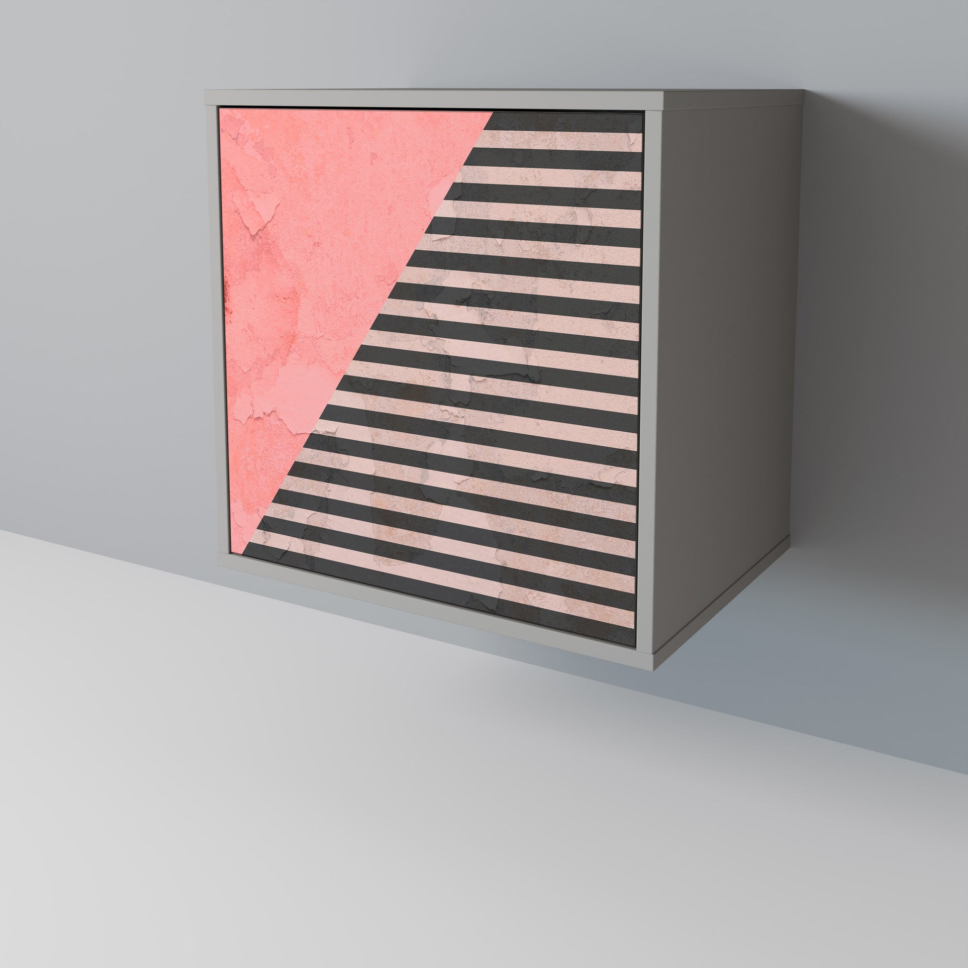 Questo mobile compatto ma straordinariamente elegante colpisce per il suo design minimalista, che si adatta perfettamente sia agli interni moderni che a quelli classici. Il tenue colore grigio della struttura conferisce al mobile un carattere discreto ma distintivo, mentre i frontali con una stampa esclusiva aggiungono un tocco artistico.