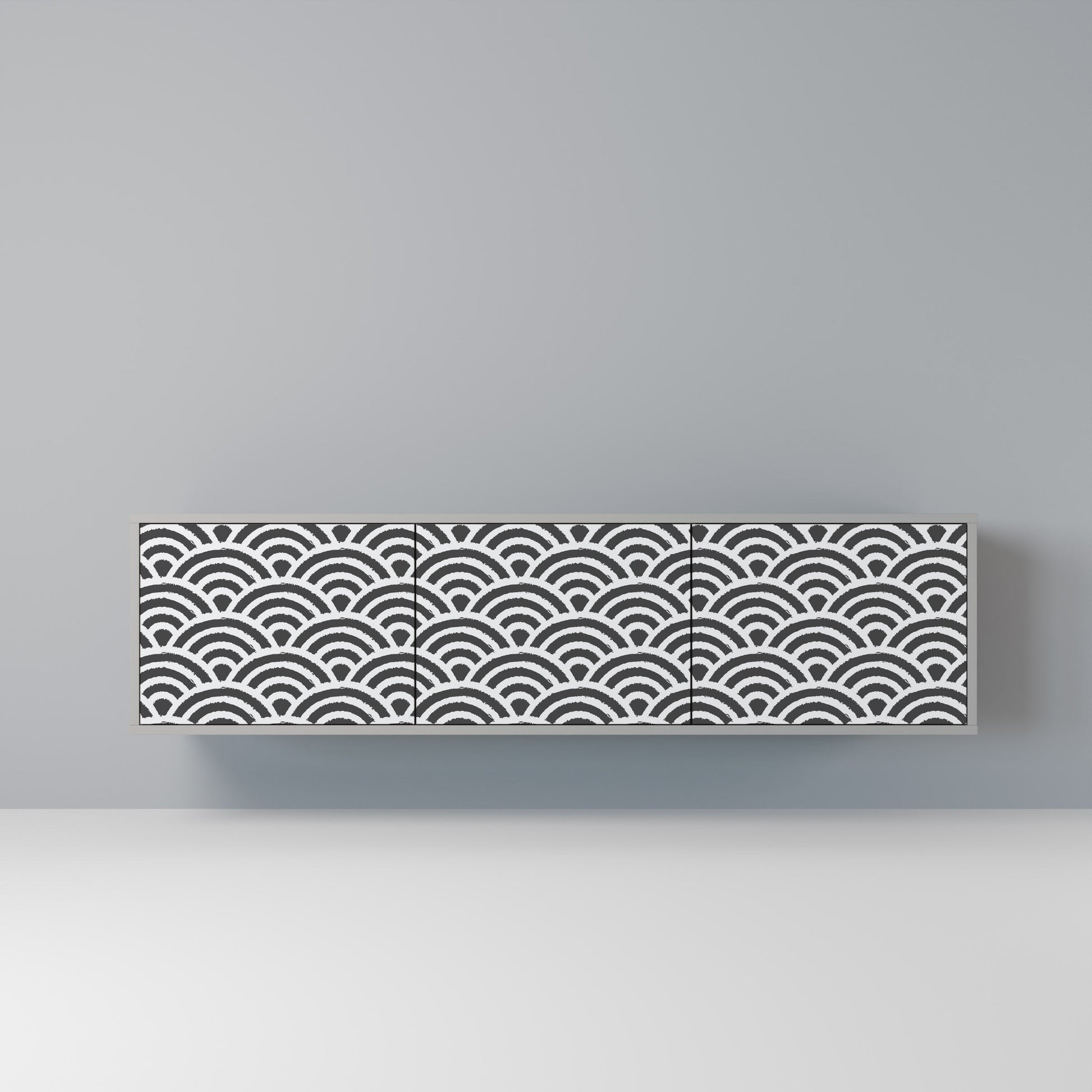 Il corpo grigio del mobile crea un accento raffinato e contemporaneo, che si abbina alla perfezione agli ambienti in stile industriale e minimalista. I frontali con stampa dal design ricercato aggiungono carattere e unicità, rendendo questo mobile non solo pratico, ma anche un forte elemento decorativo.