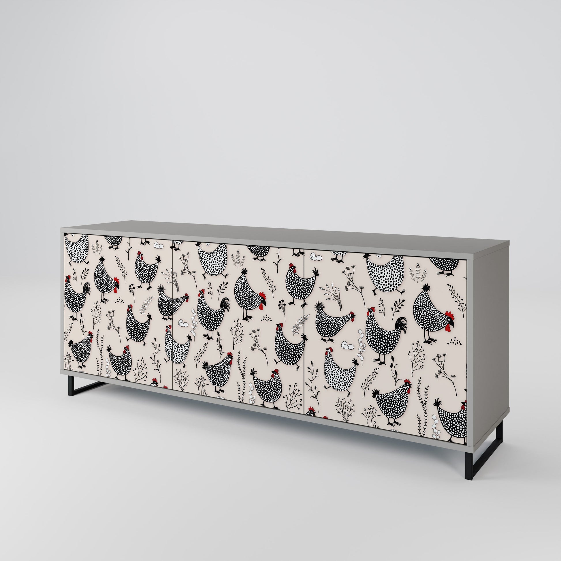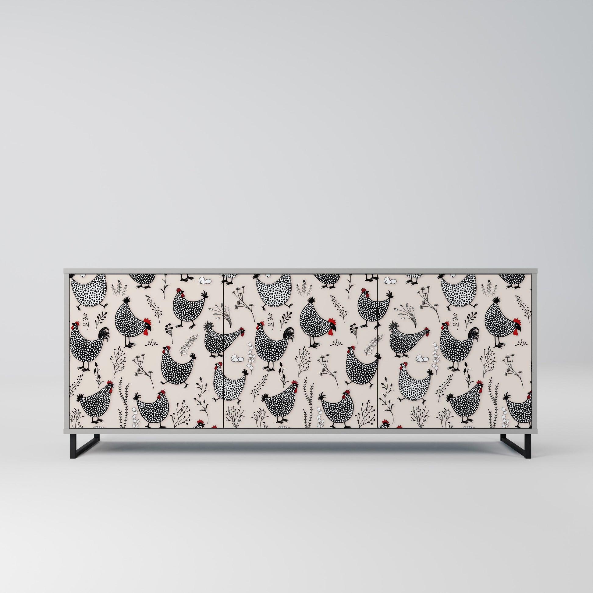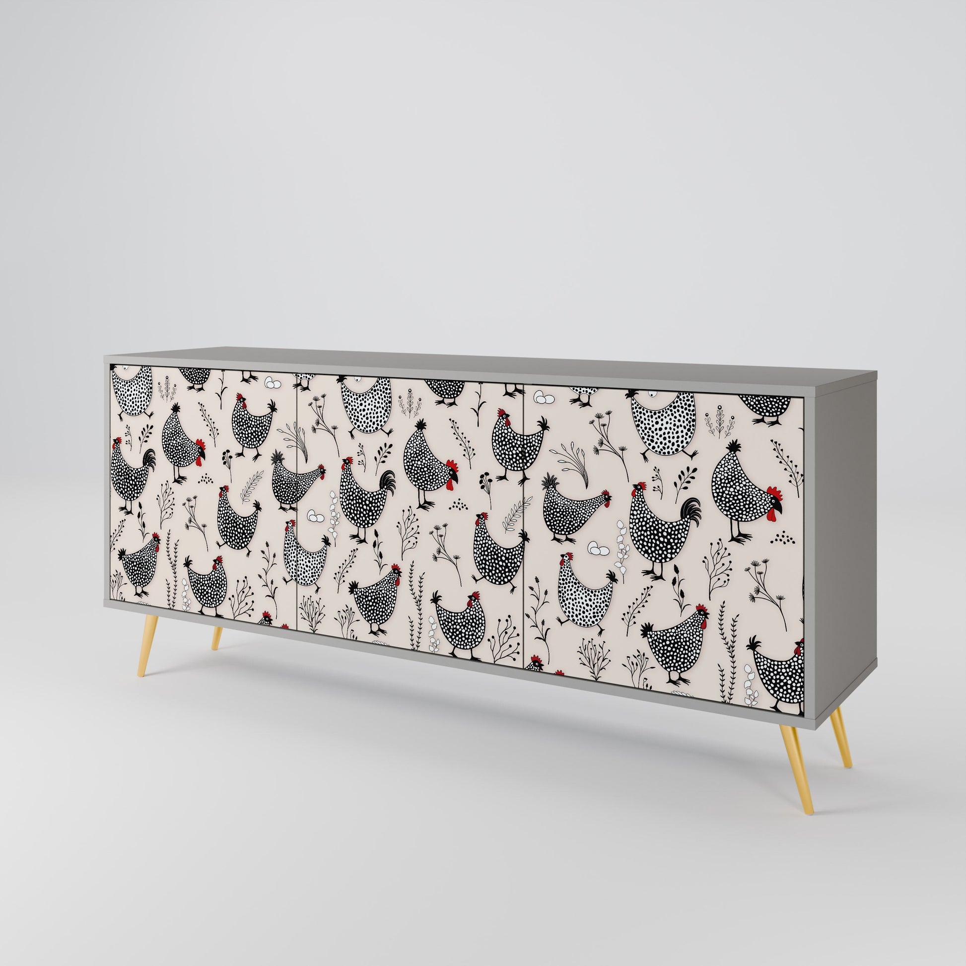 HAPPY HENS Buffet 3 Portes Finition Grise