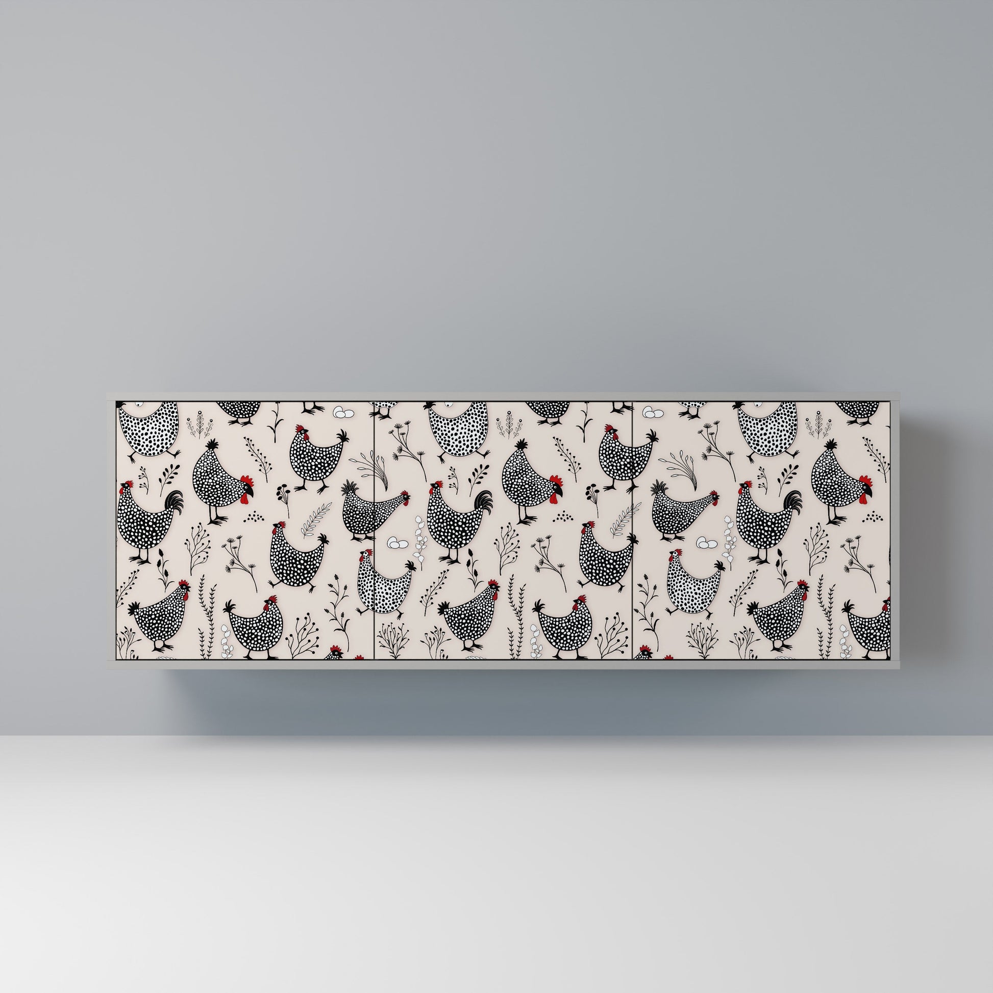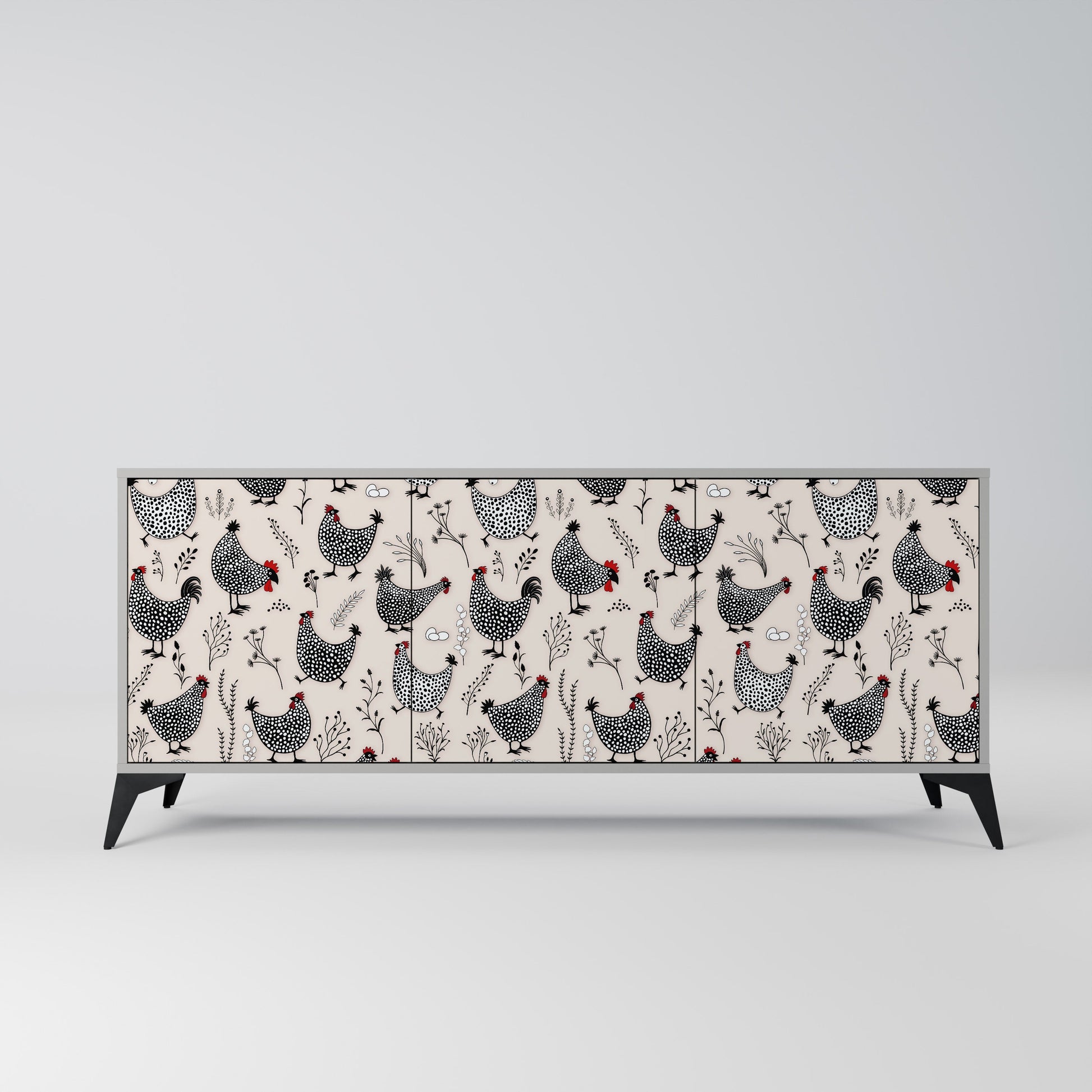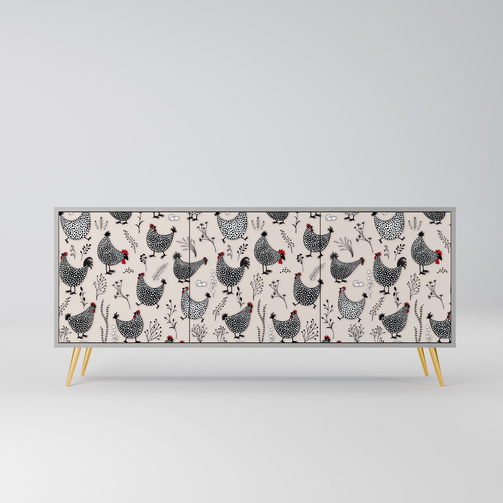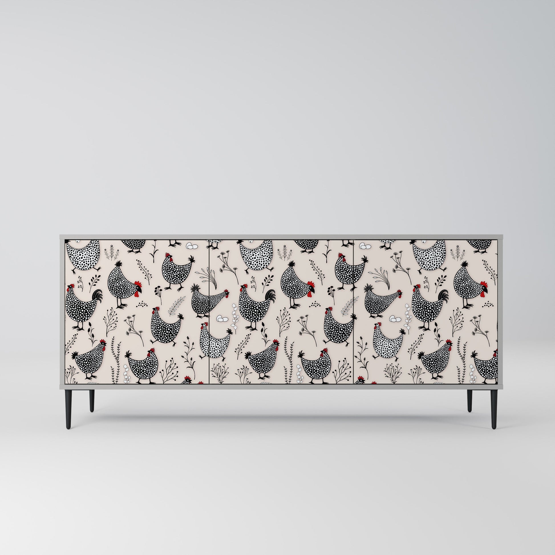 HAPPY HENS Buffet 3 Portes Finition Grise
