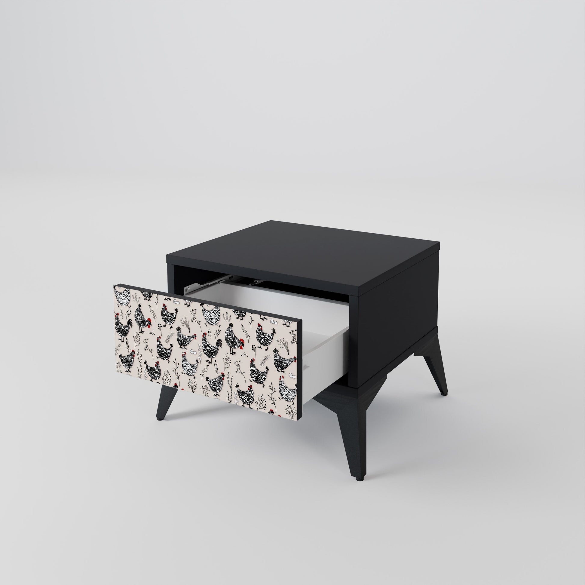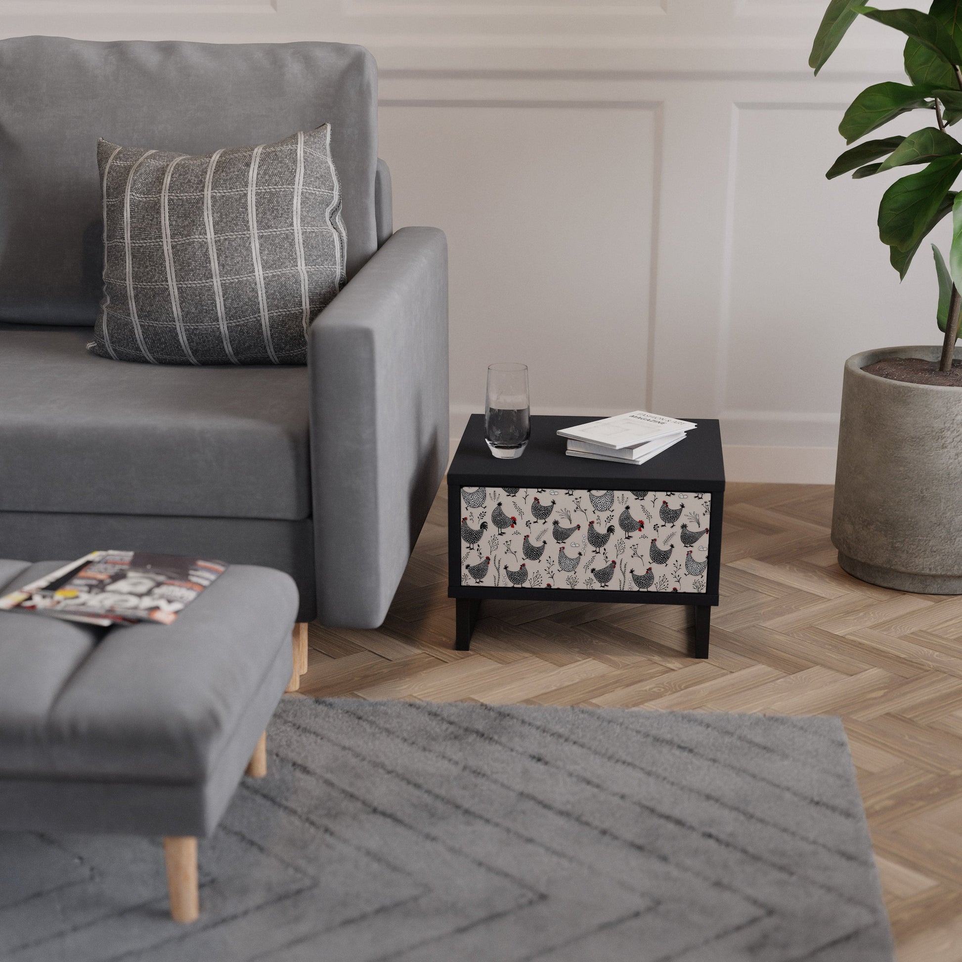Scopri raffinatezza e praticità in un formato compatto con il nostro comodino con cassetto in elegante finitura nera. Questo elemento d’arredo funzionale e sofisticato unisce uno stile contemporaneo a un design minimalista, diventando un dettaglio di grande impatto in qualsiasi camera da letto.