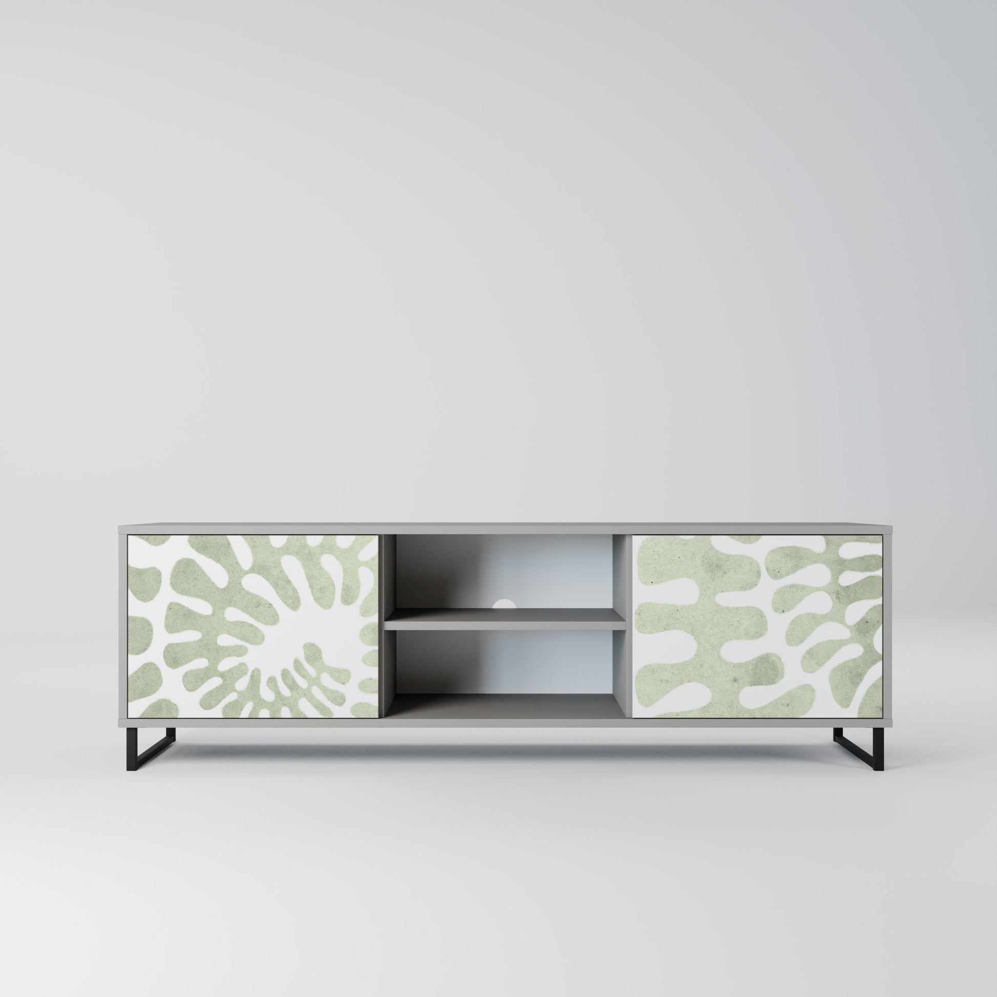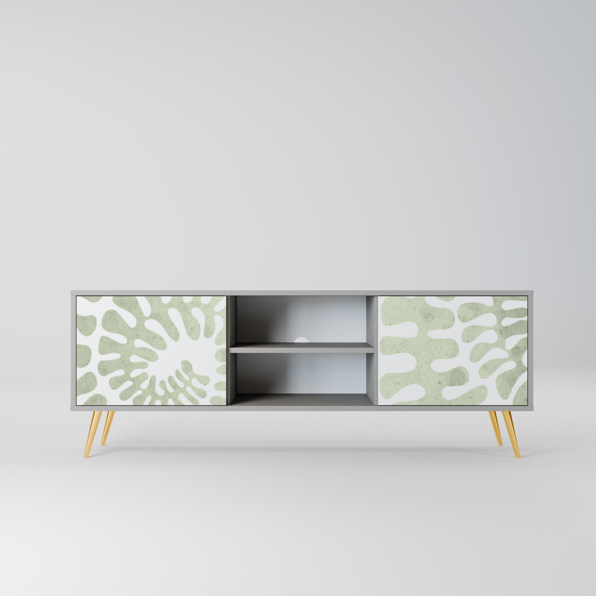 Il corpo grigio conferisce al mobile un aspetto contemporaneo e raffinato, mentre i frontali con stampa decorativa d’effetto catturano lo sguardo e trasformano il mobile nel punto focale della stanza. L’ampio spazio interno permette di riporre dispositivi elettronici, cavi, telecomandi e altri accessori, aiutandoti a mantenere ordine e organizzazione.