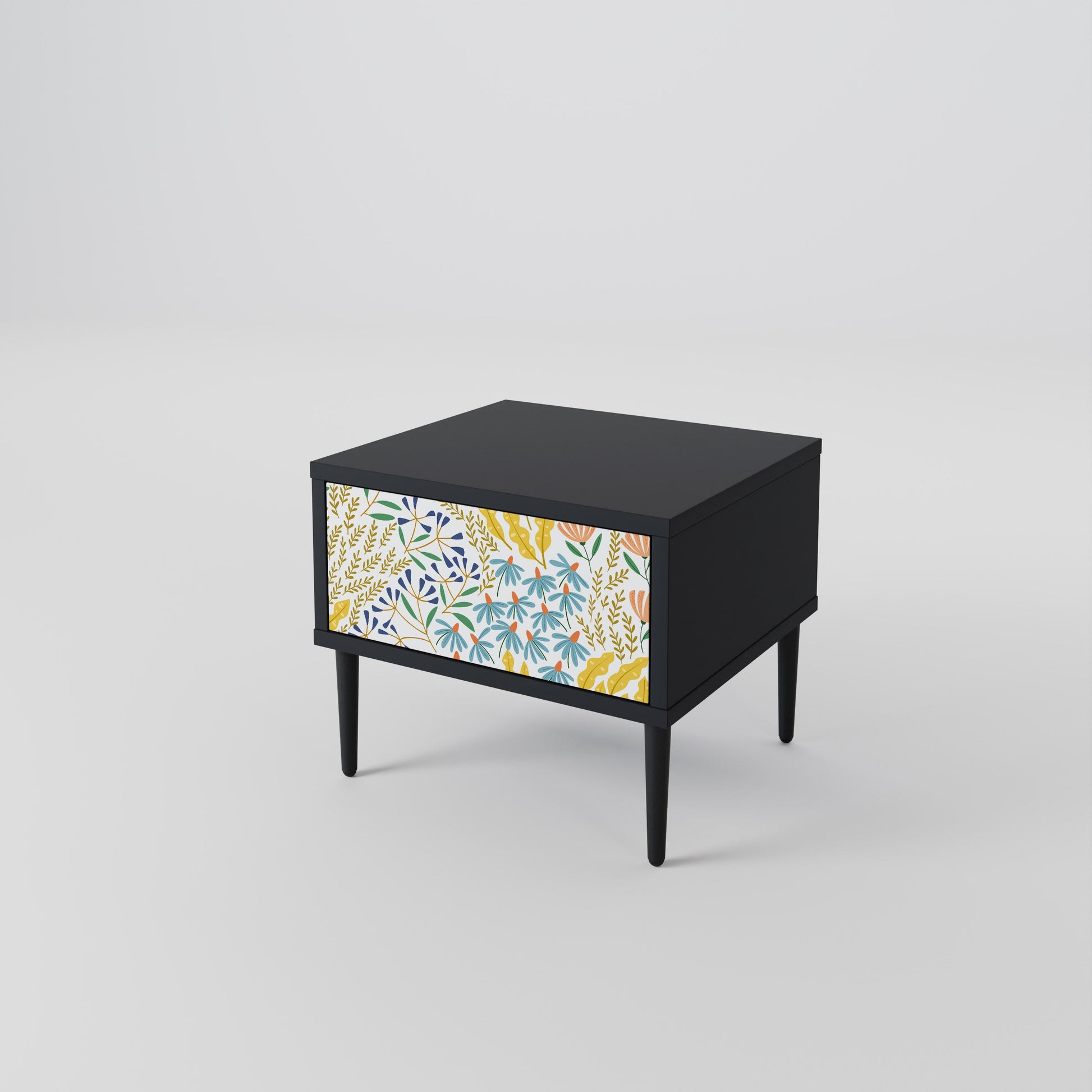Scopri raffinatezza e praticità in un formato compatto con il nostro comodino con cassetto in elegante finitura nera. Questo elemento d’arredo funzionale e sofisticato unisce uno stile contemporaneo a un design minimalista, diventando un dettaglio di grande impatto in qualsiasi camera da letto.