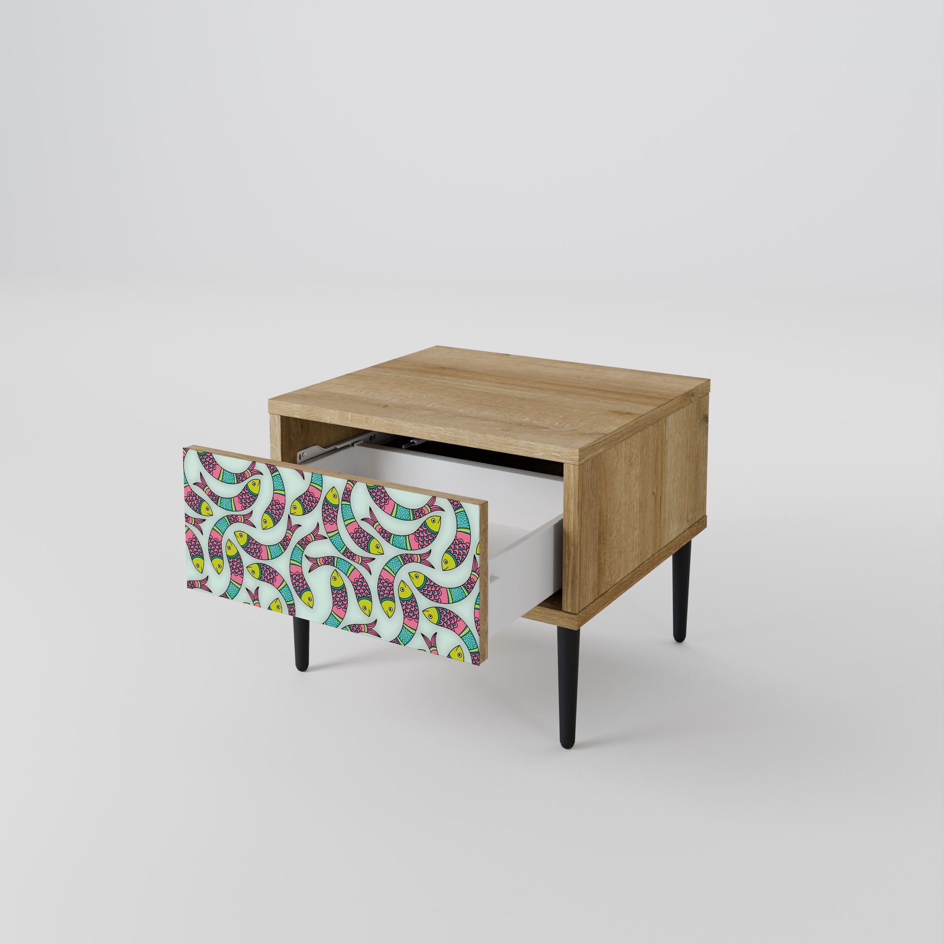 Scopri funzionalità ed eleganza in un formato compatto con il nostro comodino con cassetto. Questo elemento d’arredo pratico e di stile combina perfettamente la bellezza naturale del legno con un design moderno sul frontale del cassetto, creando un dettaglio armonioso per qualsiasi camera da letto.