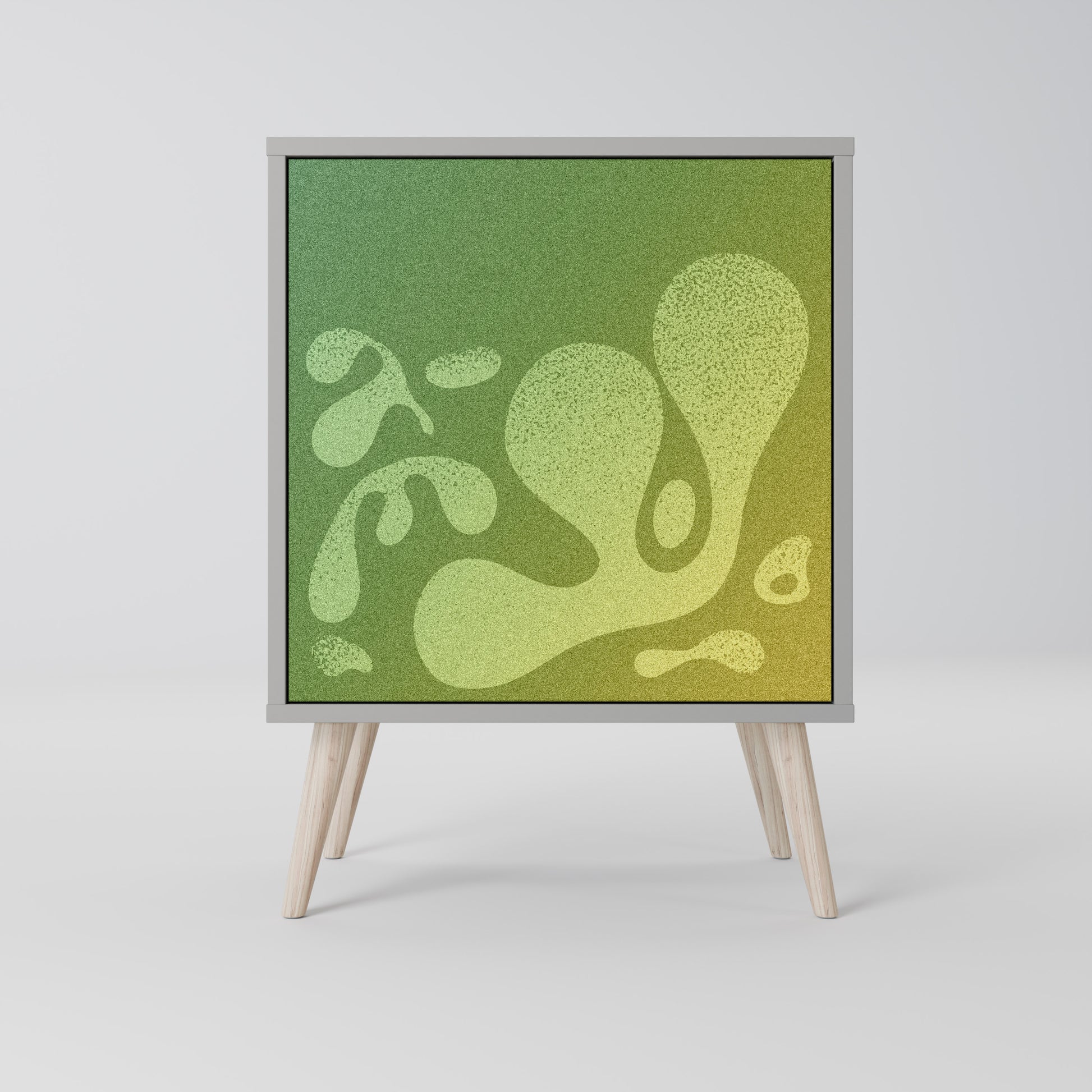 Questo mobile compatto ma straordinariamente elegante colpisce per il suo design minimalista, che si adatta perfettamente sia agli interni moderni che a quelli classici. Il tenue colore grigio della struttura conferisce al mobile un carattere discreto ma distintivo, mentre i frontali con una stampa esclusiva aggiungono un tocco artistico.