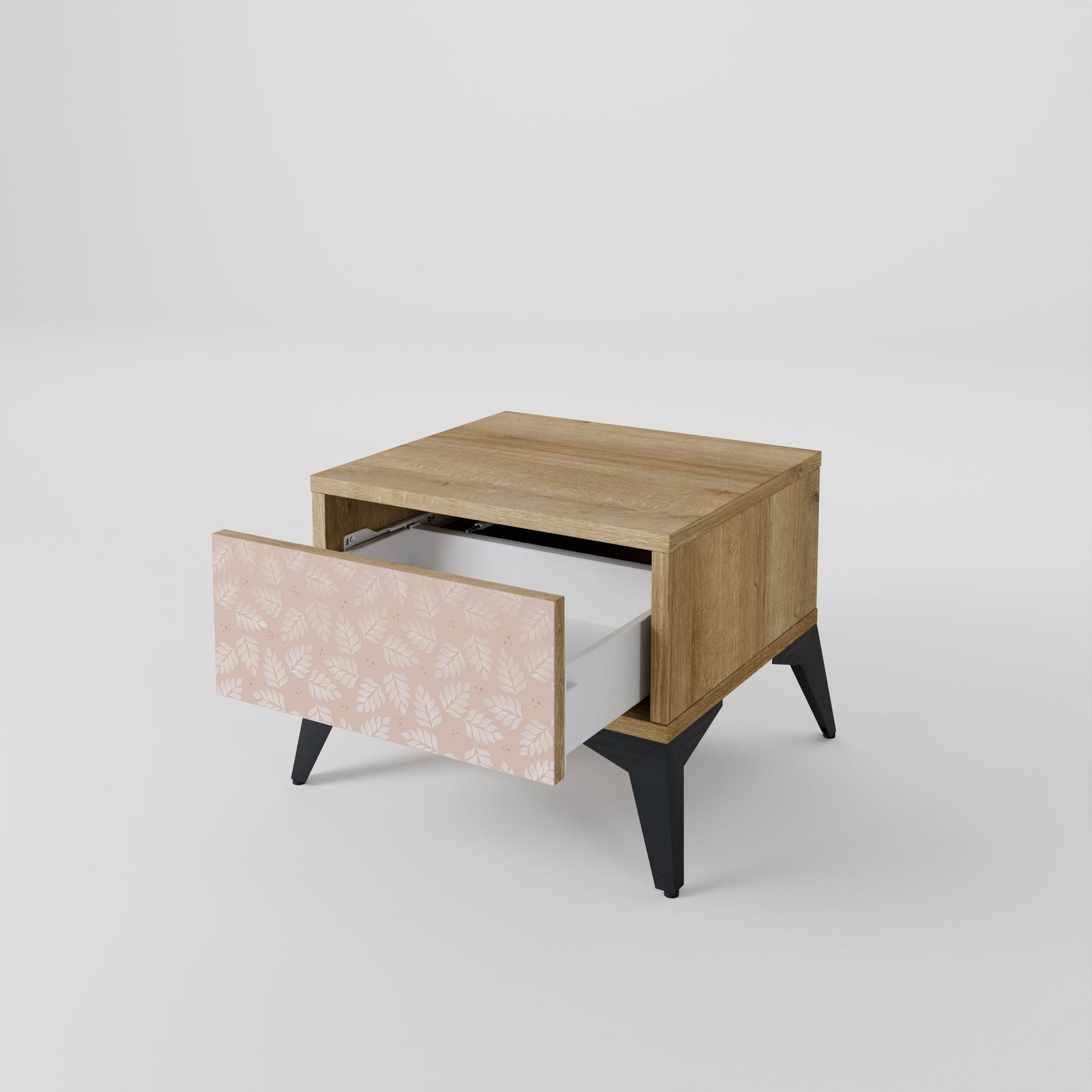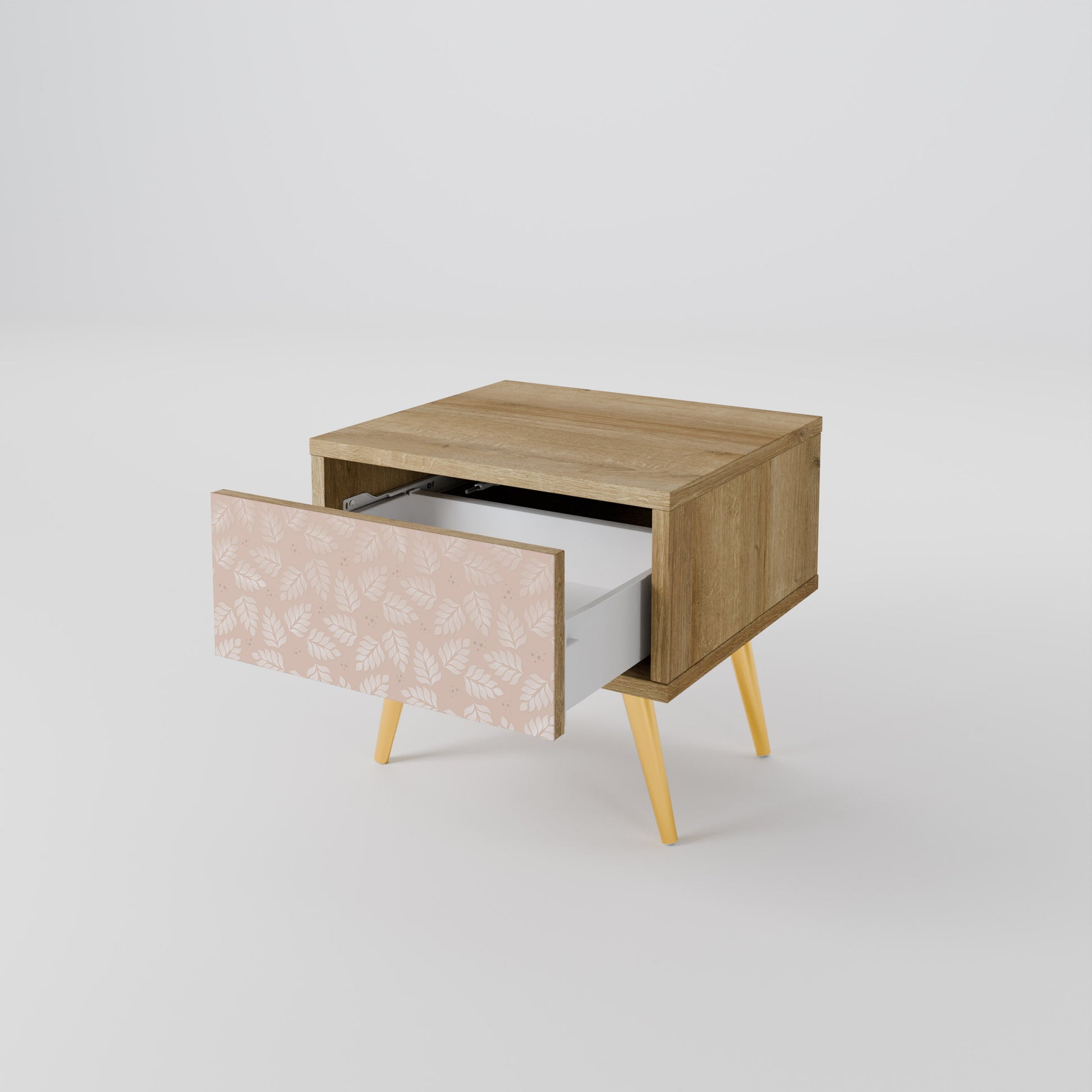 LEAVES ON BEIGE Comodino in Effetto Rovere