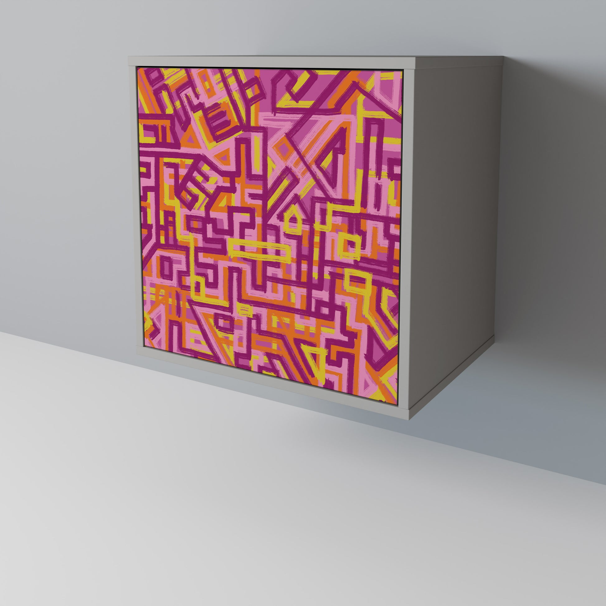 Questo mobile compatto ma straordinariamente elegante colpisce per il suo design minimalista, che si adatta perfettamente sia agli interni moderni che a quelli classici. Il tenue colore grigio della struttura conferisce al mobile un carattere discreto ma distintivo, mentre i frontali con una stampa esclusiva aggiungono un tocco artistico.