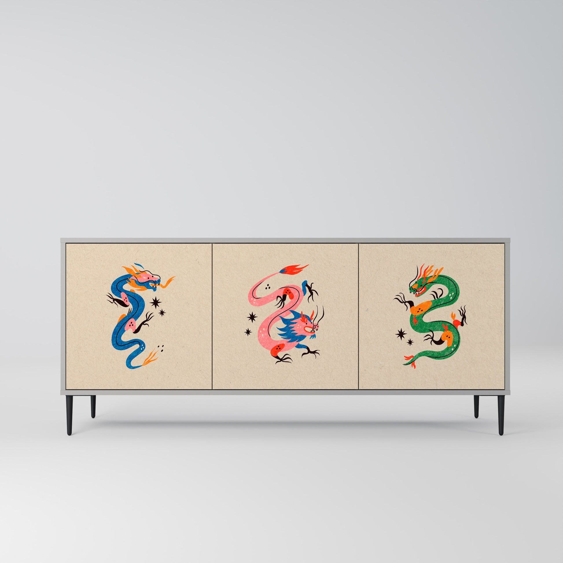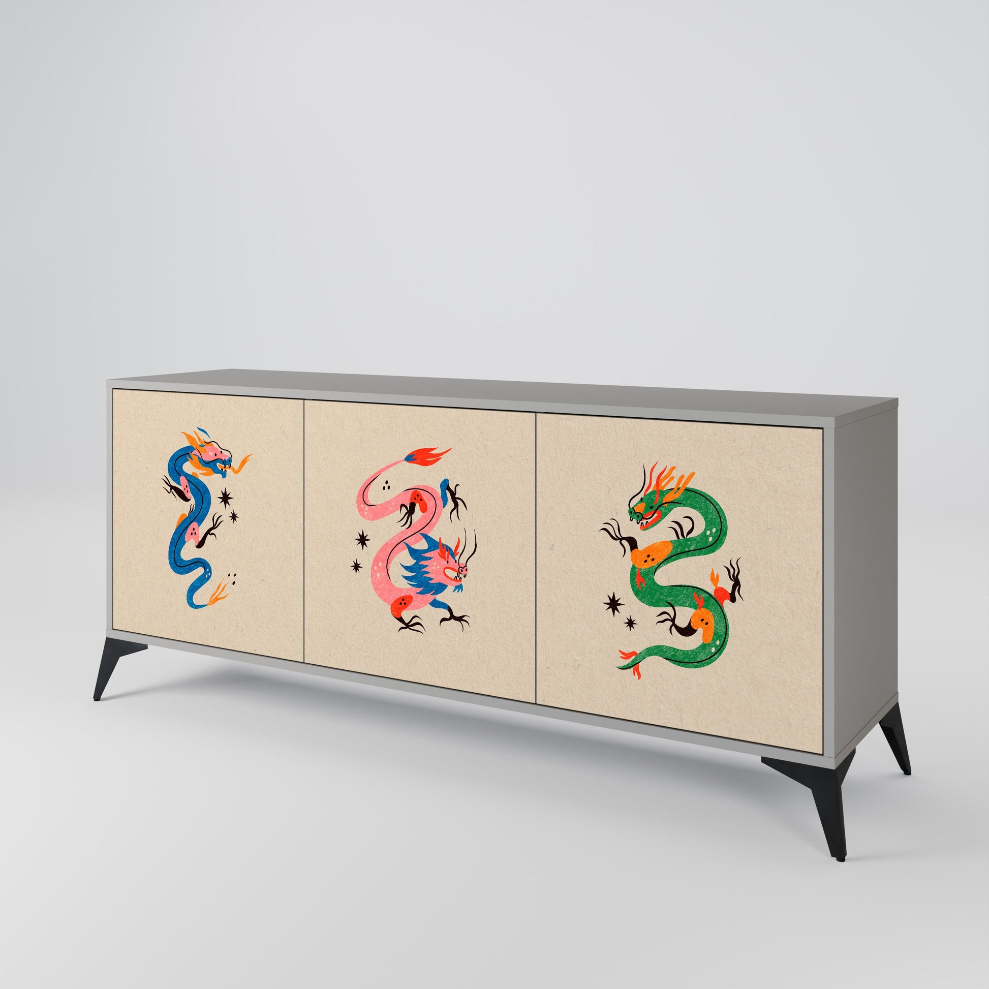 MYTHOLOGICAL CREATURES Buffet 3 Portes Finition Grise