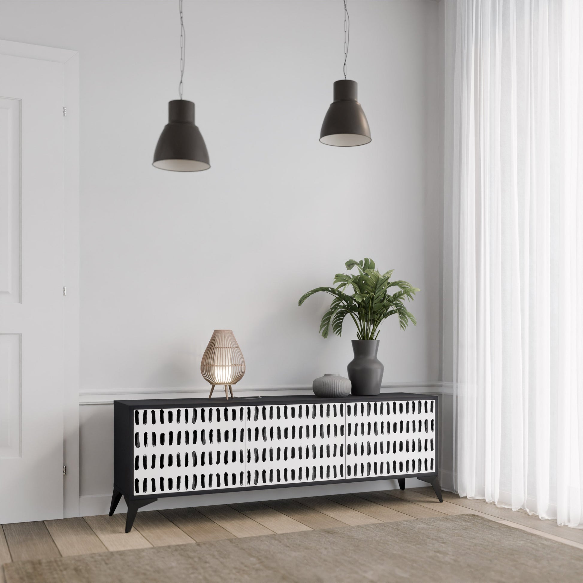 Scopri il perfetto equilibrio tra stile e funzionalità! Il nostro mobile TV a 3 ante con corpo nero porta eleganza moderna e il massimo spazio contenitivo nel tuo soggiorno. È la scelta ideale per la zona living, offrendo un piano per la TV e spazio dedicato a dispositivi elettronici, accessori e decorazioni.