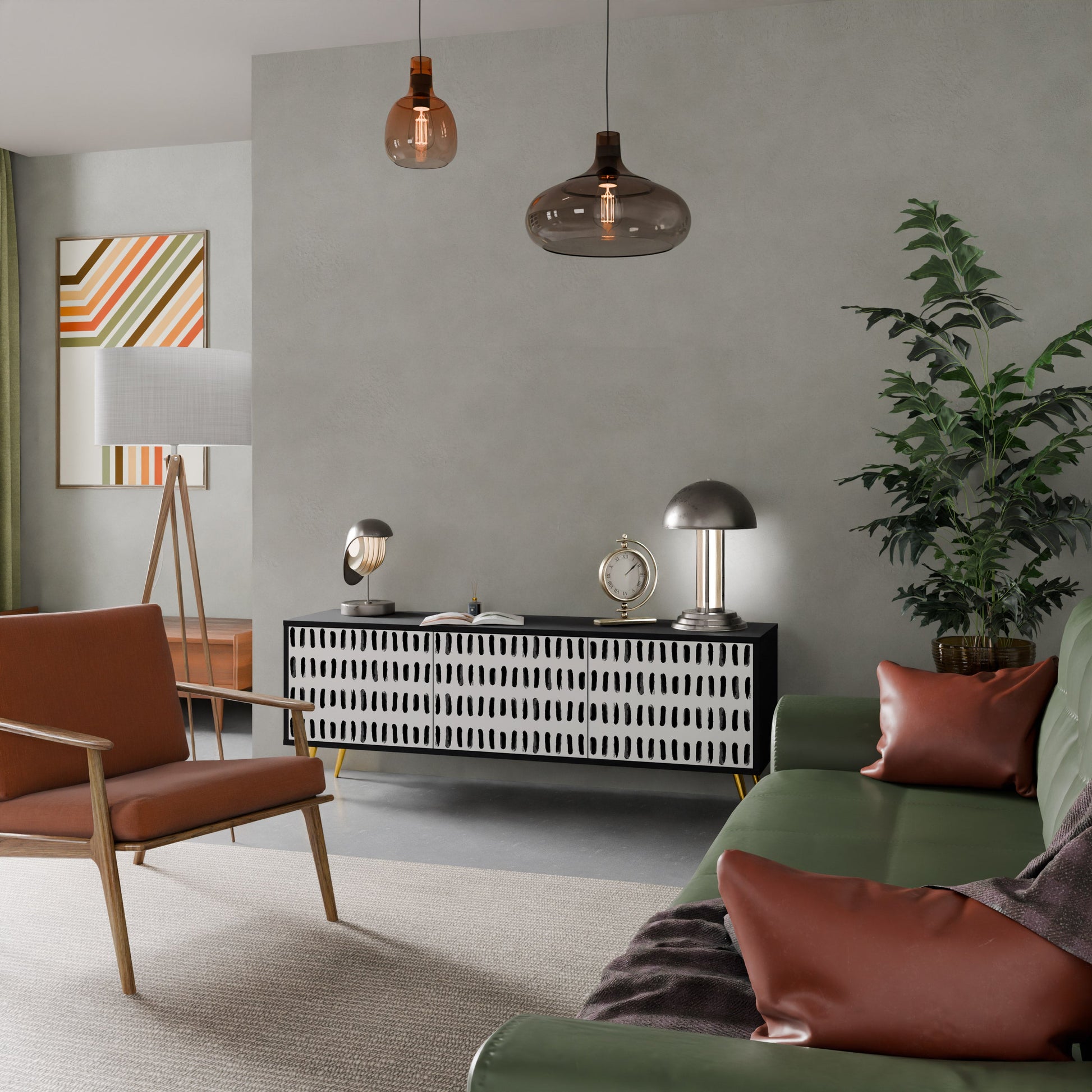 Il corpo nero del mobile crea un accento deciso e contemporaneo, che si abbina alla perfezione agli ambienti in stile industriale e minimalista. I frontali con stampa dal design ricercato aggiungono carattere e unicità, rendendo questo mobile non solo pratico, ma anche un forte elemento decorativo.