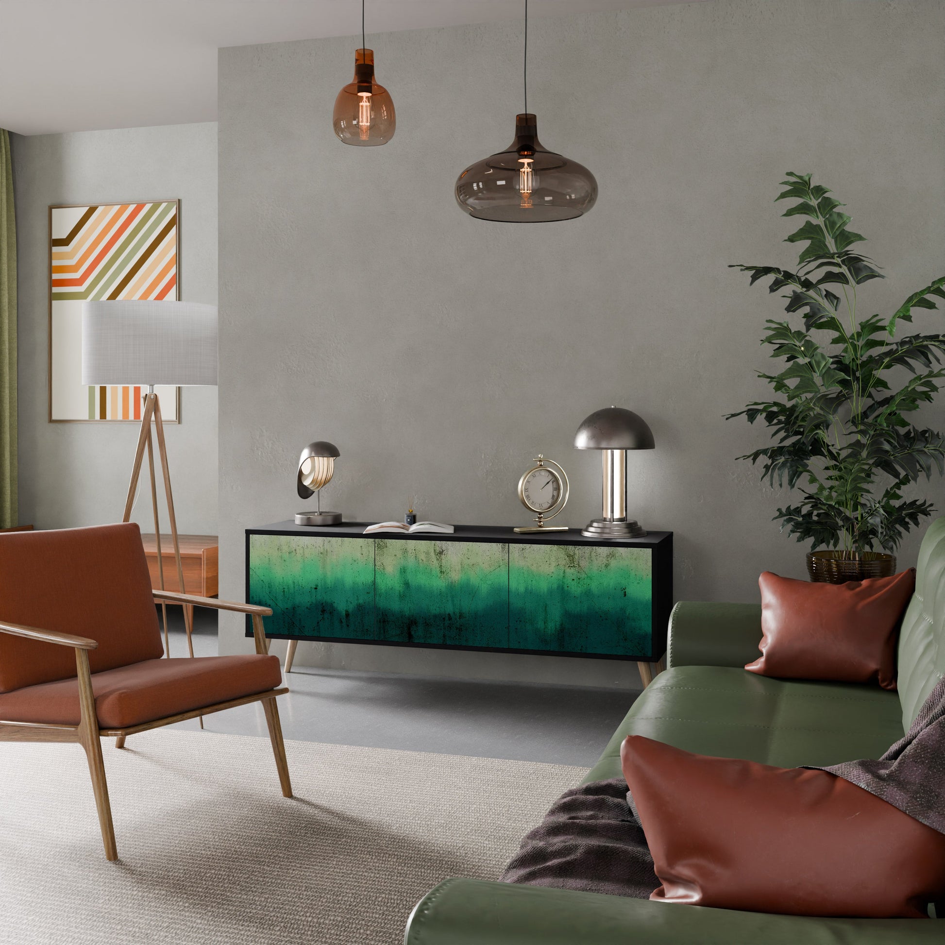 Il corpo nero del mobile crea un accento deciso e contemporaneo, che si abbina alla perfezione agli ambienti in stile industriale e minimalista. I frontali con stampa dal design ricercato aggiungono carattere e unicità, rendendo questo mobile non solo pratico, ma anche un forte elemento decorativo.
