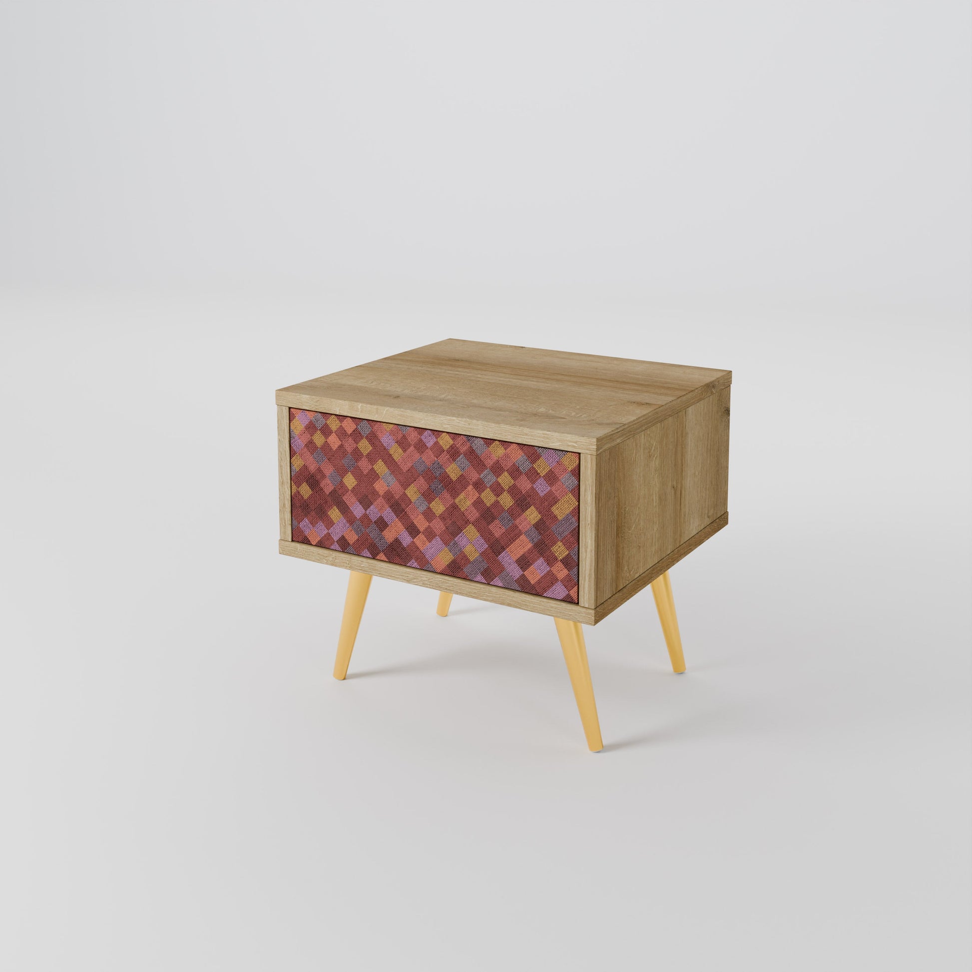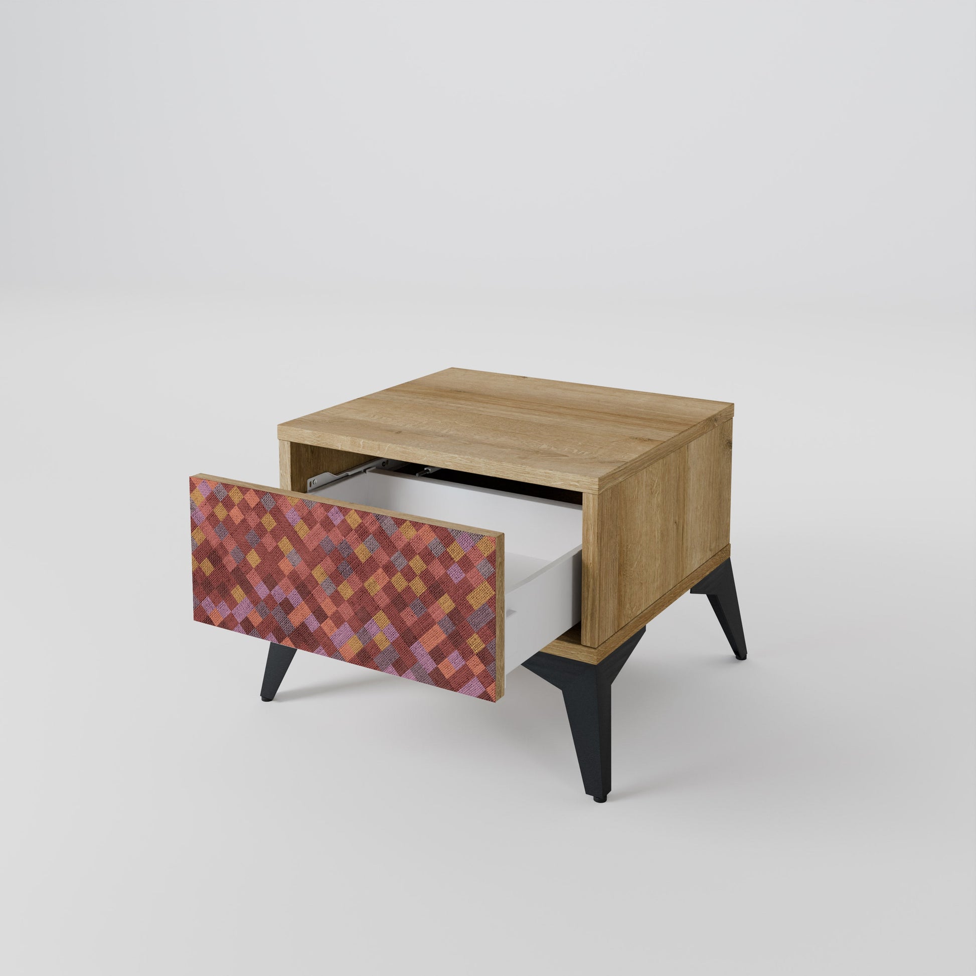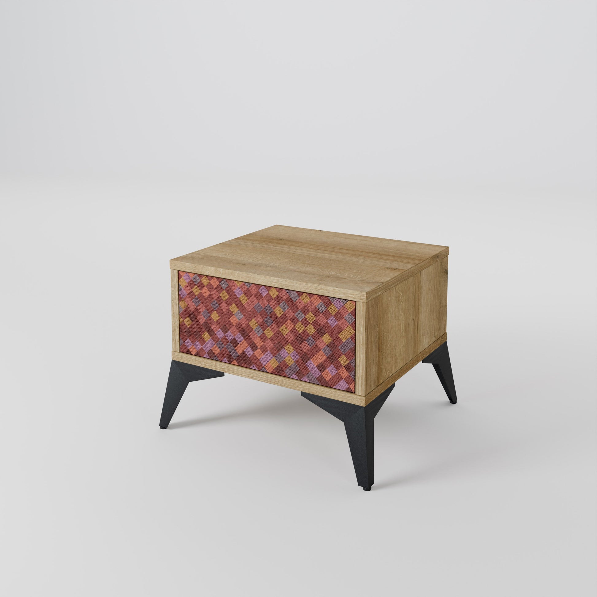 Scopri funzionalità ed eleganza in un formato compatto con il nostro comodino con cassetto. Questo elemento d’arredo pratico e di stile combina perfettamente la bellezza naturale del legno con un design moderno sul frontale del cassetto, creando un dettaglio armonioso per qualsiasi camera da letto.