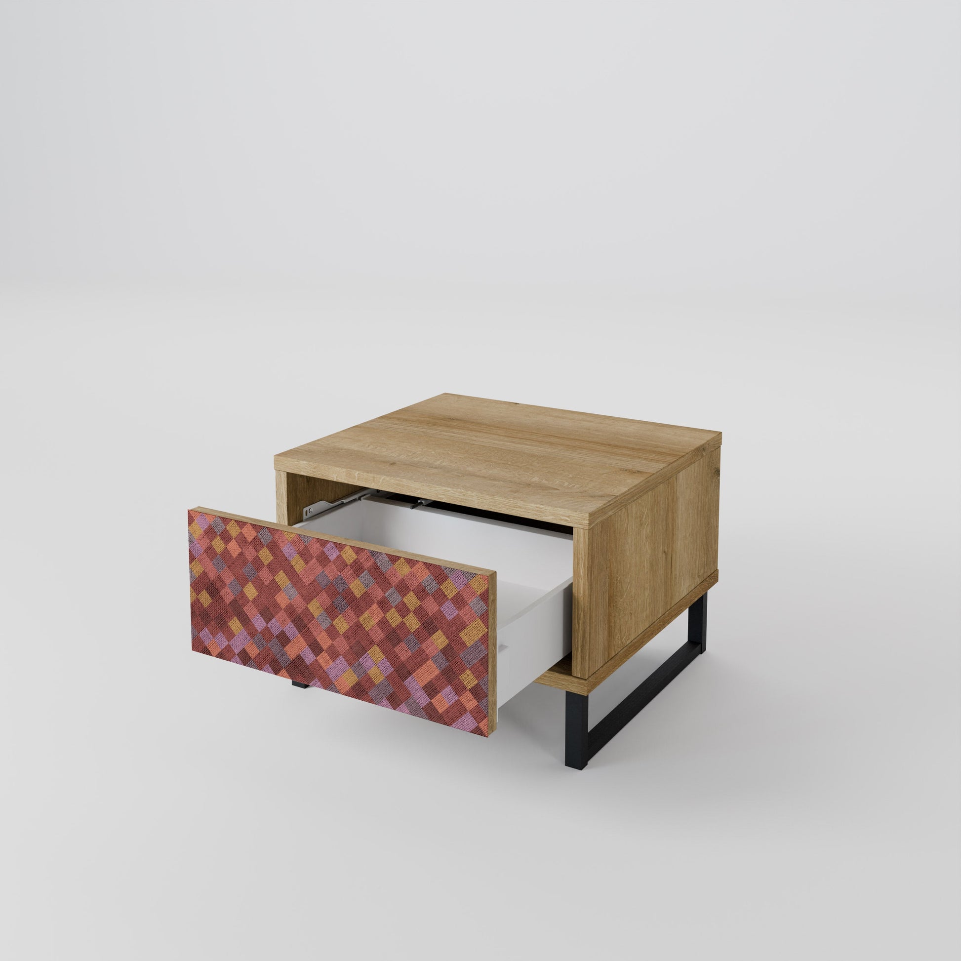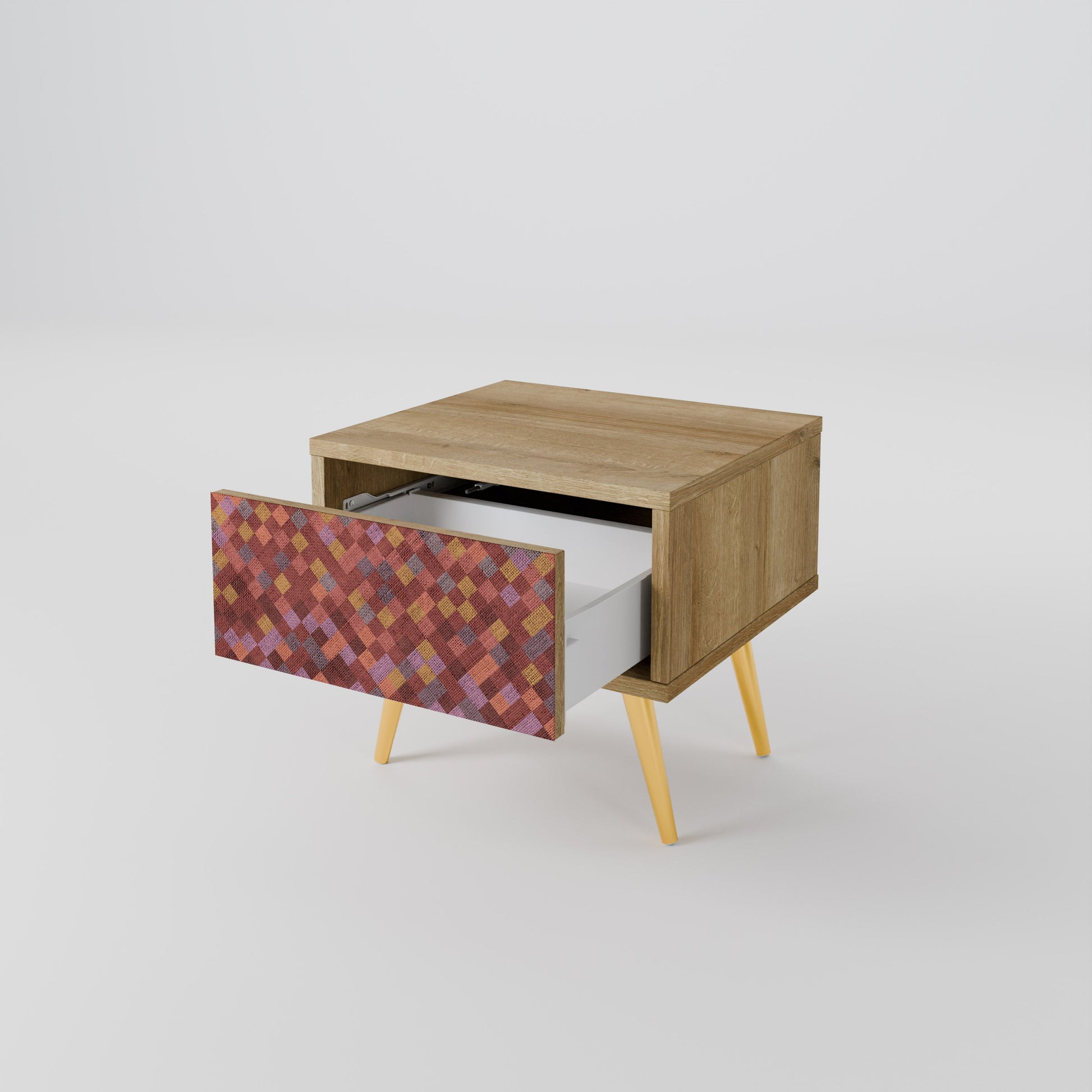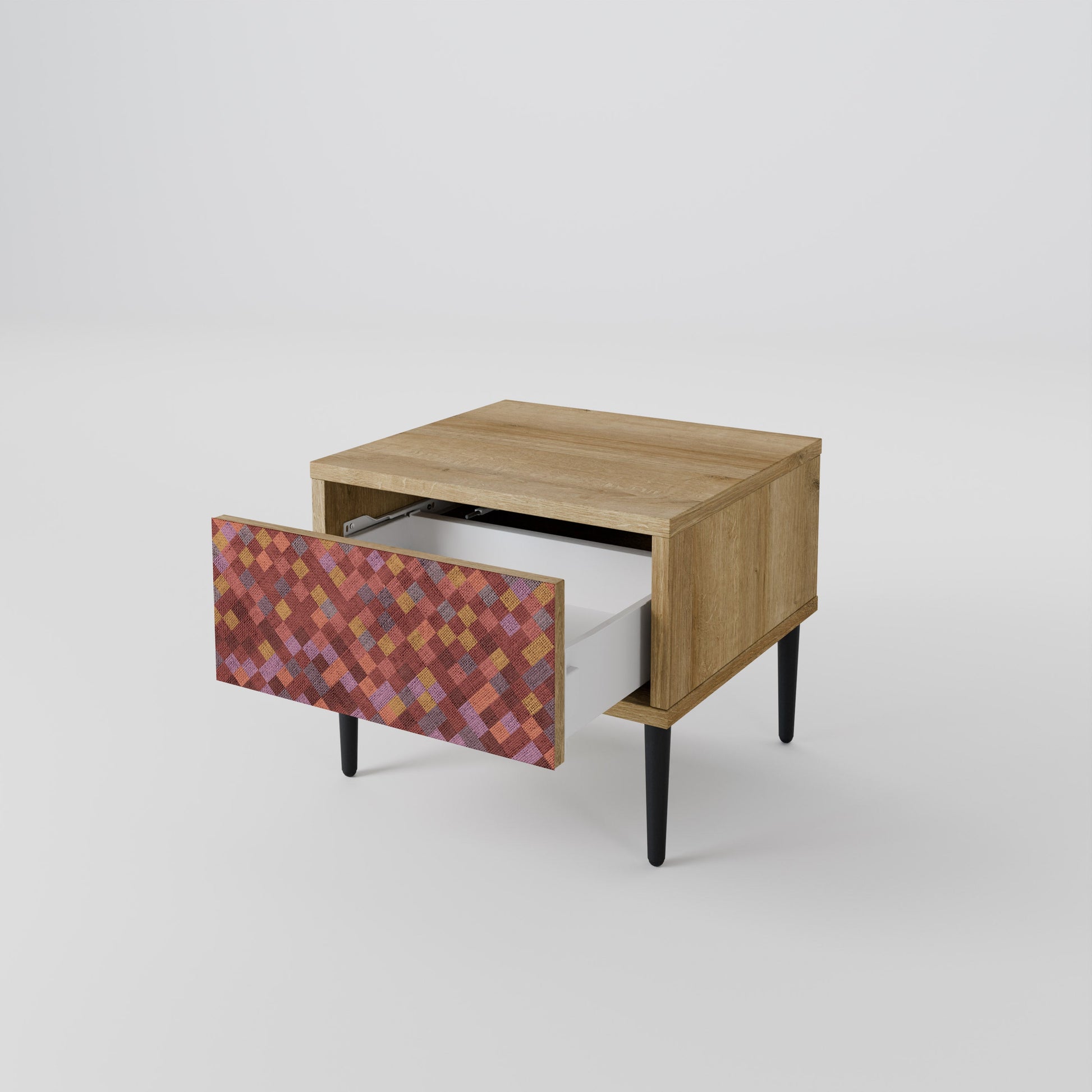 Scopri funzionalità ed eleganza in un formato compatto con il nostro comodino con cassetto. Questo elemento d’arredo pratico e di stile combina perfettamente la bellezza naturale del legno con un design moderno sul frontale del cassetto, creando un dettaglio armonioso per qualsiasi camera da letto.