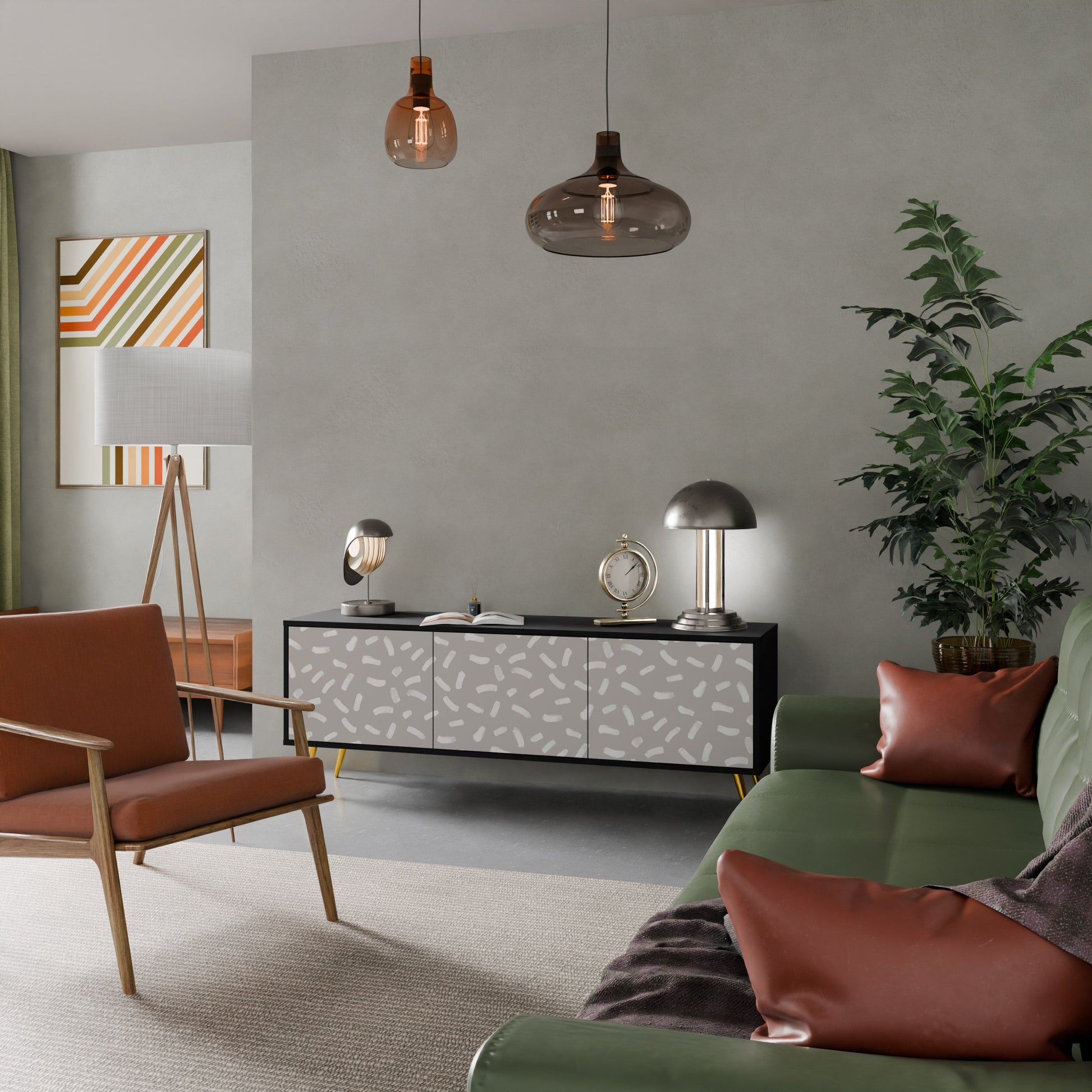 Il corpo nero del mobile crea un accento deciso e contemporaneo, che si abbina alla perfezione agli ambienti in stile industriale e minimalista. I frontali con stampa dal design ricercato aggiungono carattere e unicità, rendendo questo mobile non solo pratico, ma anche un forte elemento decorativo.