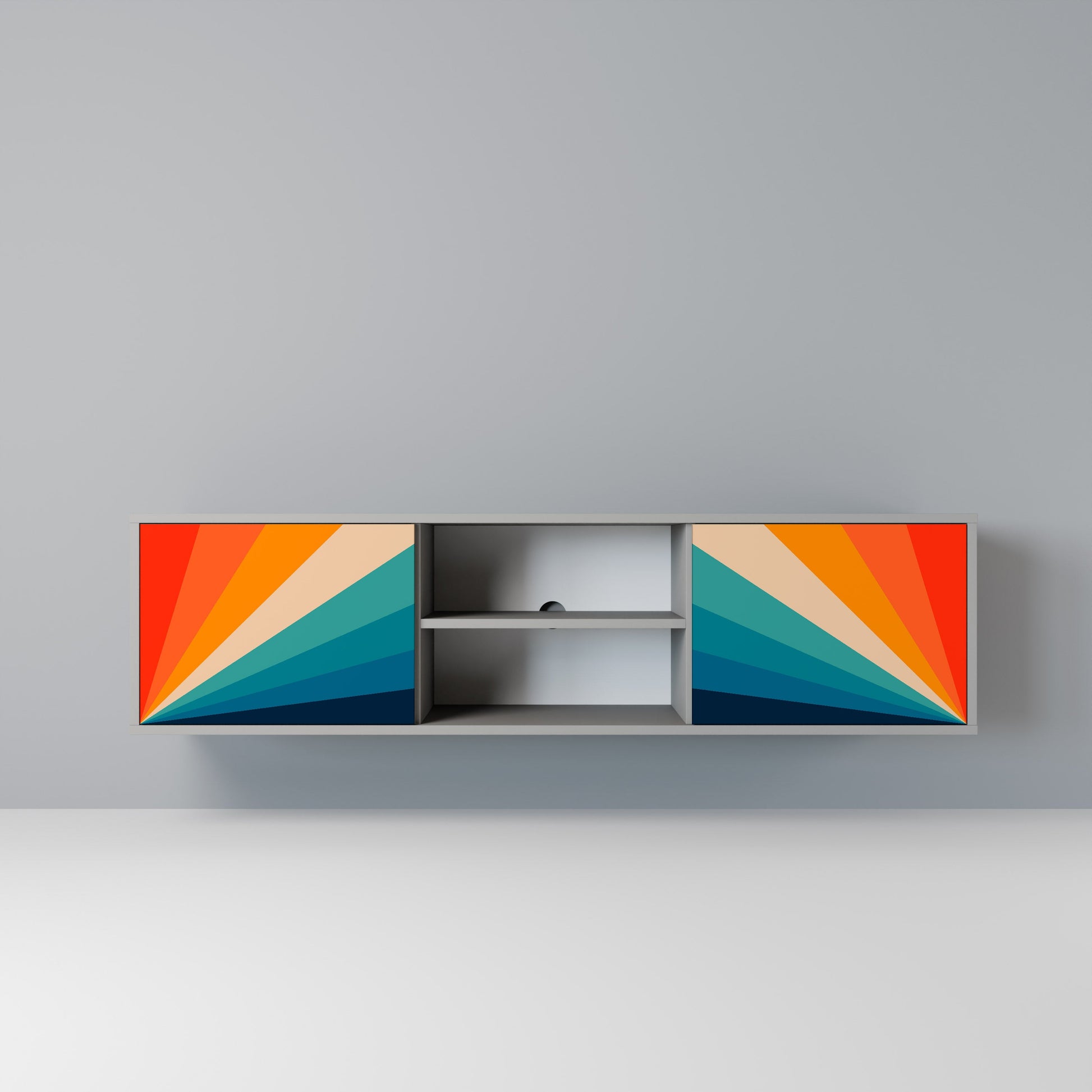 Il corpo grigio conferisce al mobile un aspetto contemporaneo e raffinato, mentre i frontali con stampa decorativa d’effetto catturano lo sguardo e trasformano il mobile nel punto focale della stanza. L’ampio spazio interno permette di riporre dispositivi elettronici, cavi, telecomandi e altri accessori, aiutandoti a mantenere ordine e organizzazione.