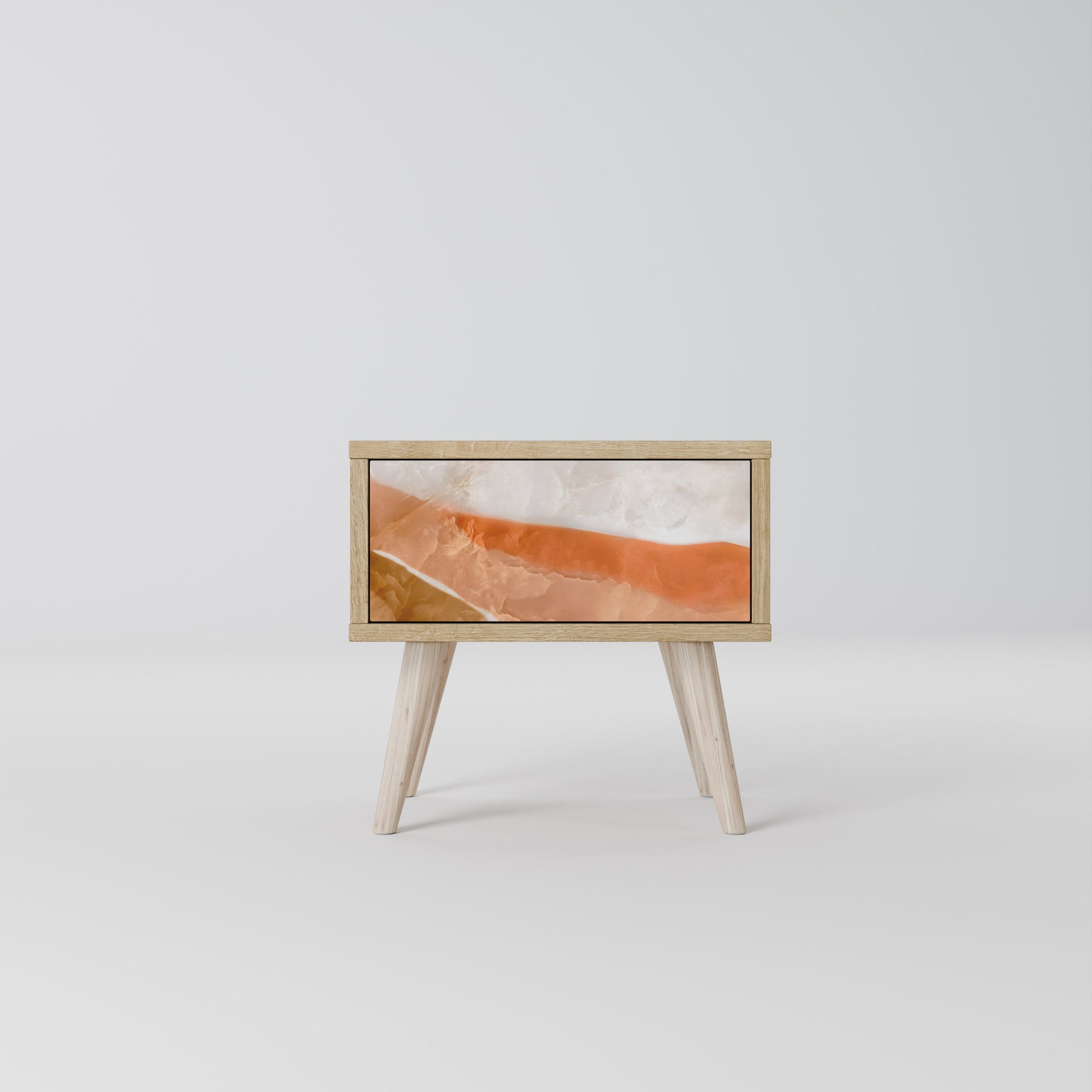 Il comodino è progettato pensando alla tua praticità e all’ordine. Il cassetto capiente è ideale per riporre piccoli oggetti, come cosmetici o caricabatterie, mentre l’ampio piano superiore offre spazio per una lampada da notte, un libro o il telefono, garantendoti che tutto ciò di cui hai bisogno prima di dormire sia sempre a portata di mano.