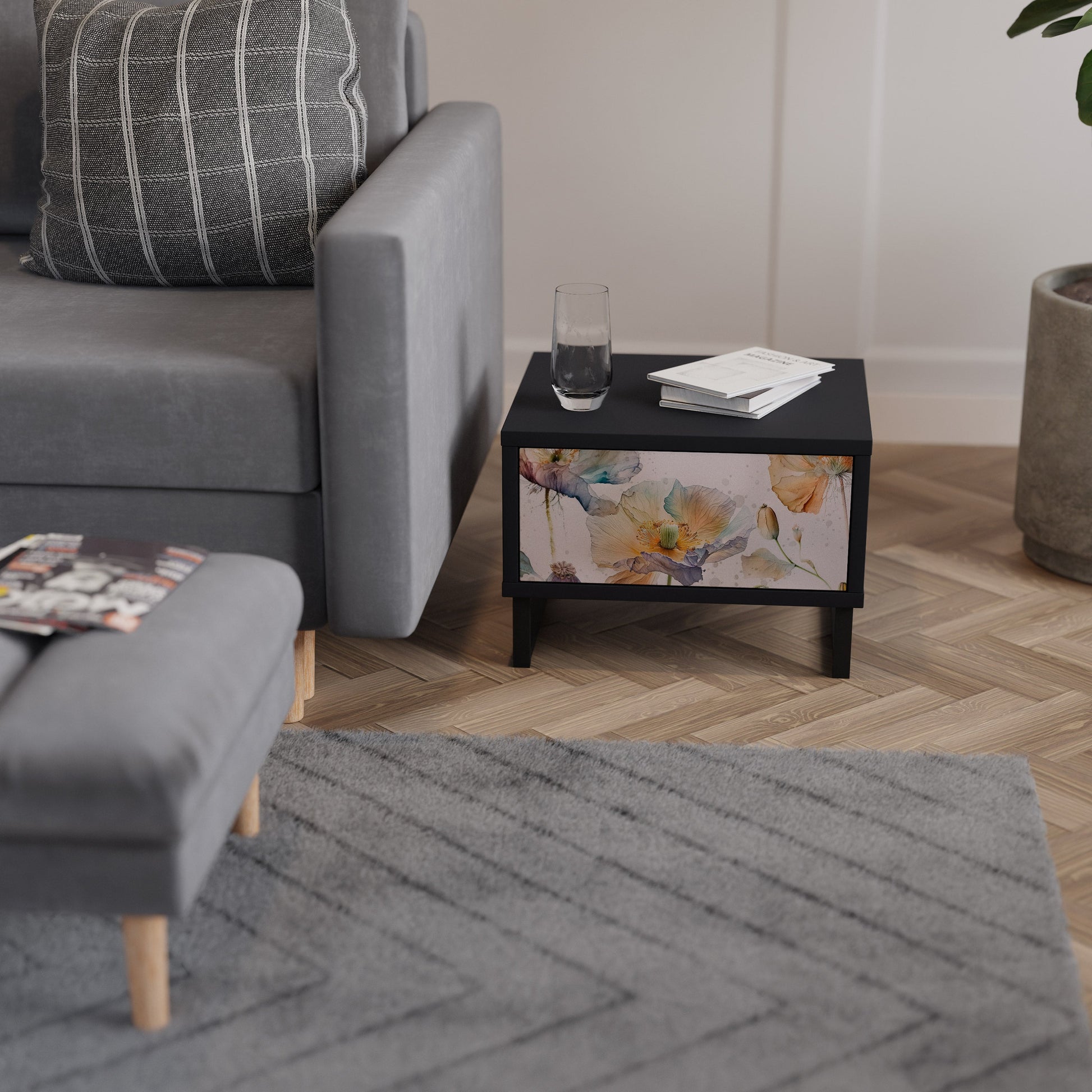 Scopri raffinatezza e praticità in un formato compatto con il nostro comodino con cassetto in elegante finitura nera. Questo elemento d’arredo funzionale e sofisticato unisce uno stile contemporaneo a un design minimalista, diventando un dettaglio di grande impatto in qualsiasi camera da letto.