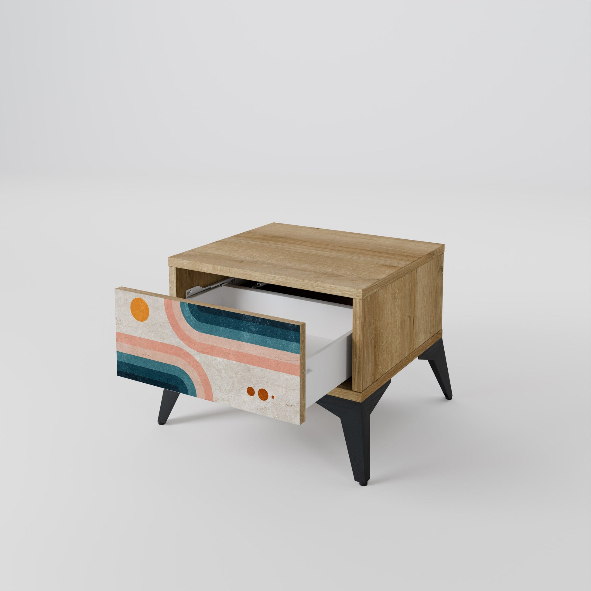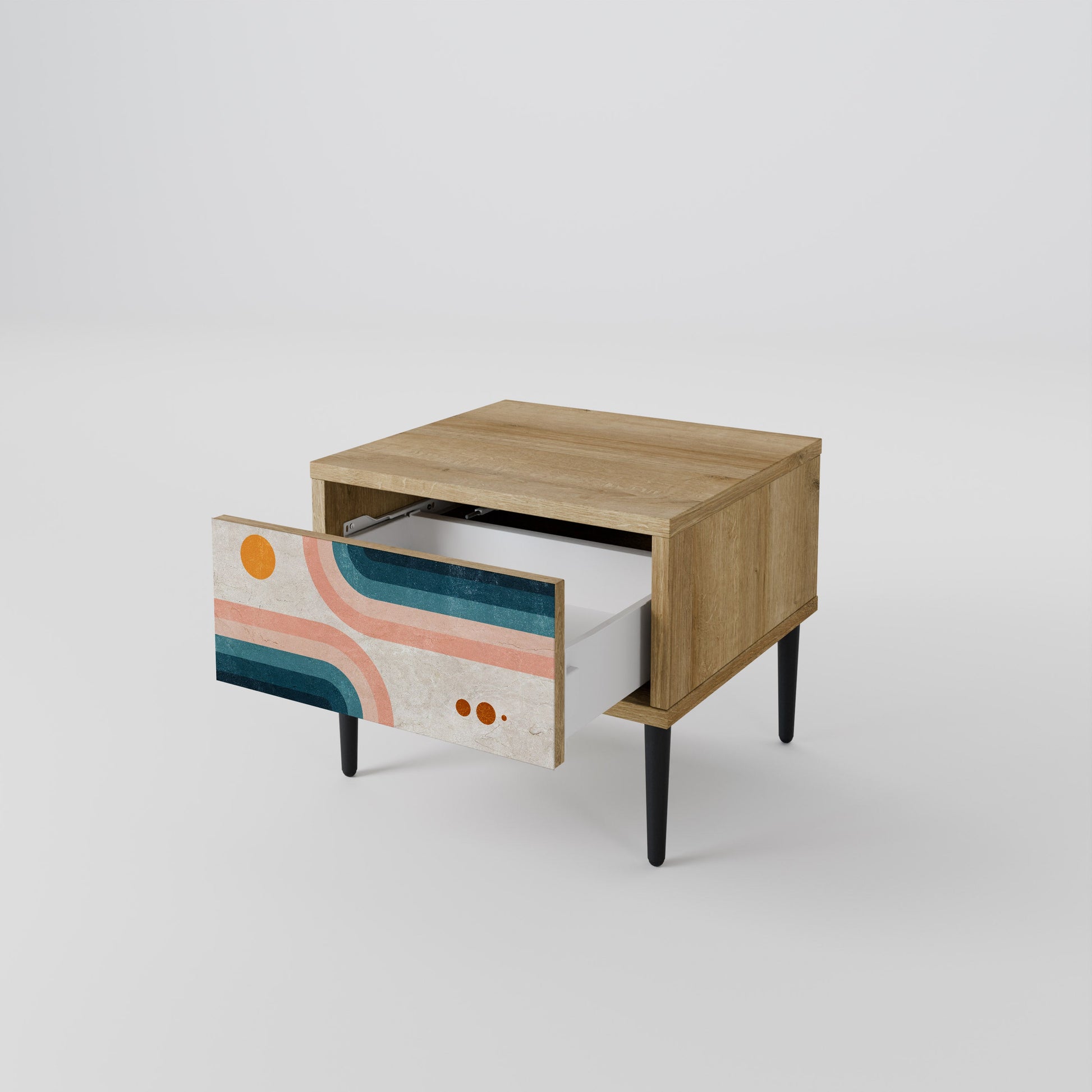 Scopri funzionalità ed eleganza in un formato compatto con il nostro comodino con cassetto. Questo elemento d’arredo pratico e di stile combina perfettamente la bellezza naturale del legno con un design moderno sul frontale del cassetto, creando un dettaglio armonioso per qualsiasi camera da letto.