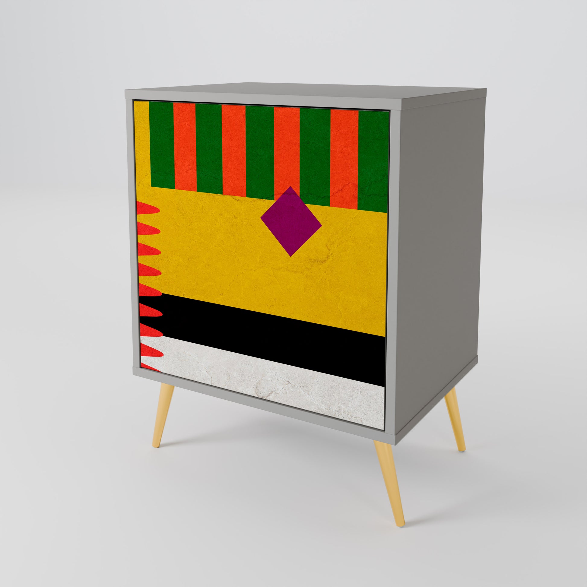 Questo mobile compatto ma straordinariamente elegante colpisce per il suo design minimalista, che si adatta perfettamente sia agli interni moderni che a quelli classici. Il tenue colore grigio della struttura conferisce al mobile un carattere discreto ma distintivo, mentre i frontali con una stampa esclusiva aggiungono un tocco artistico.