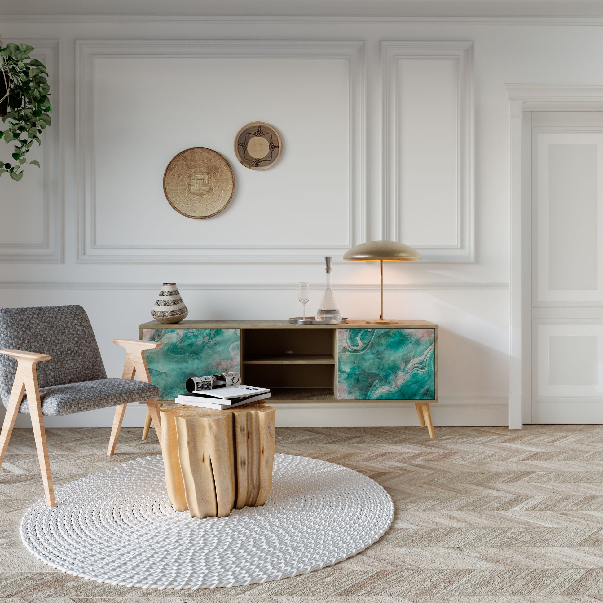 ABSTRACT ALCHEMY 2-Door TV Stand in Oak Effect