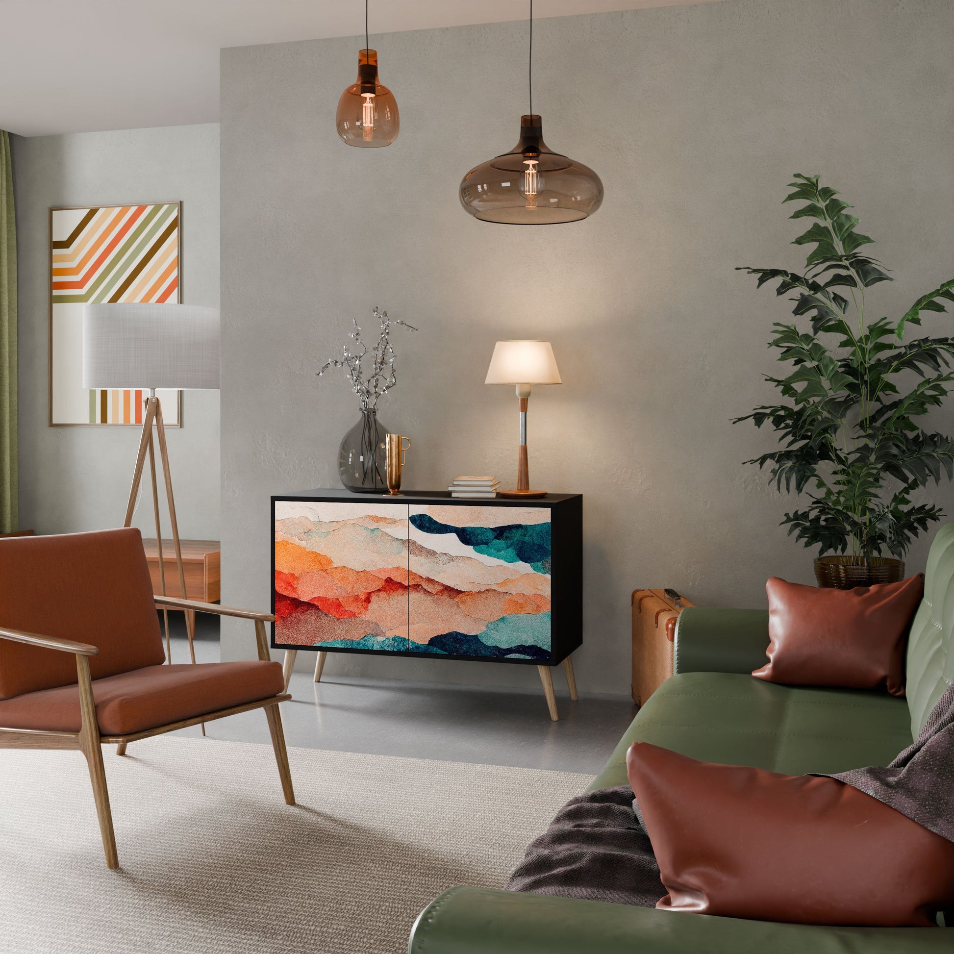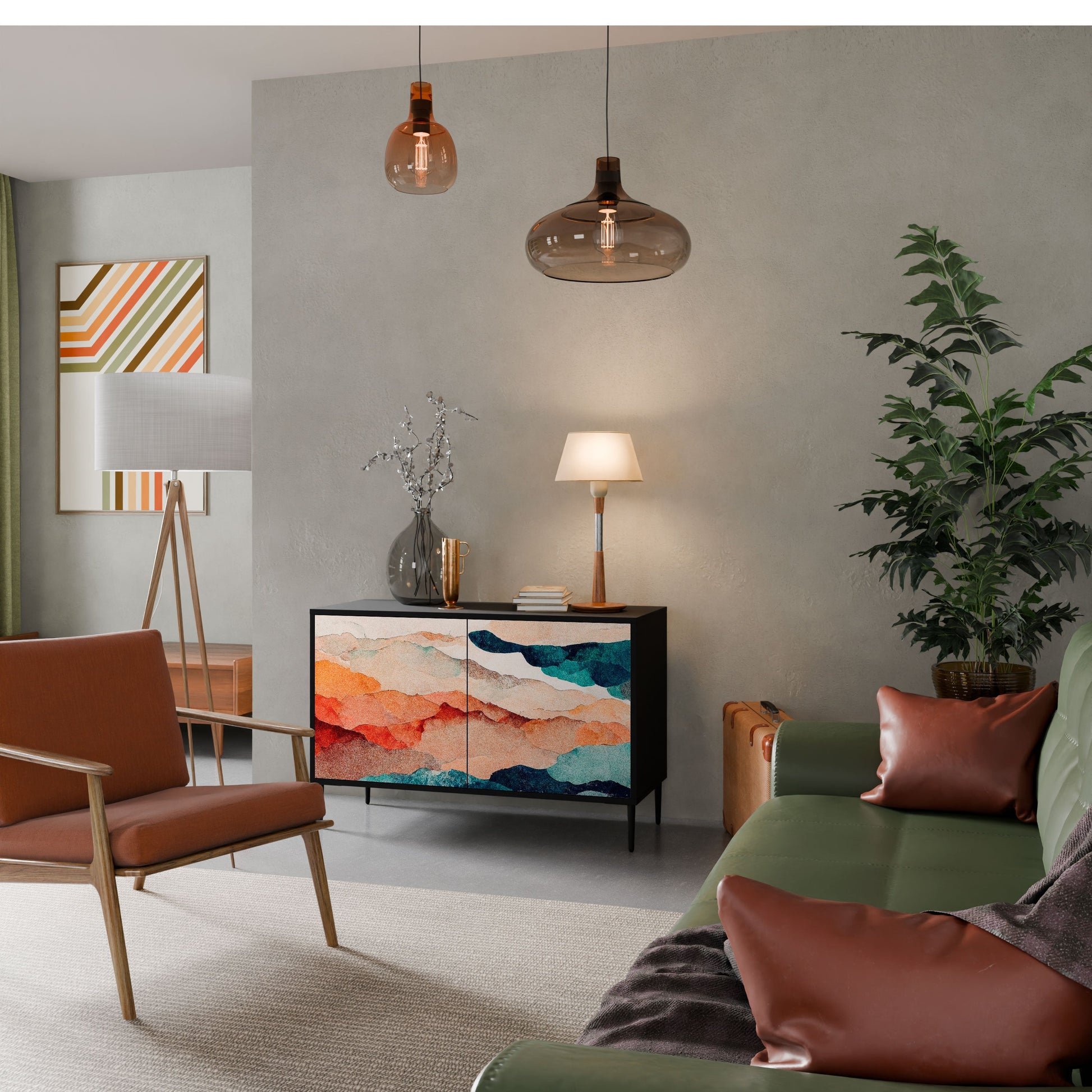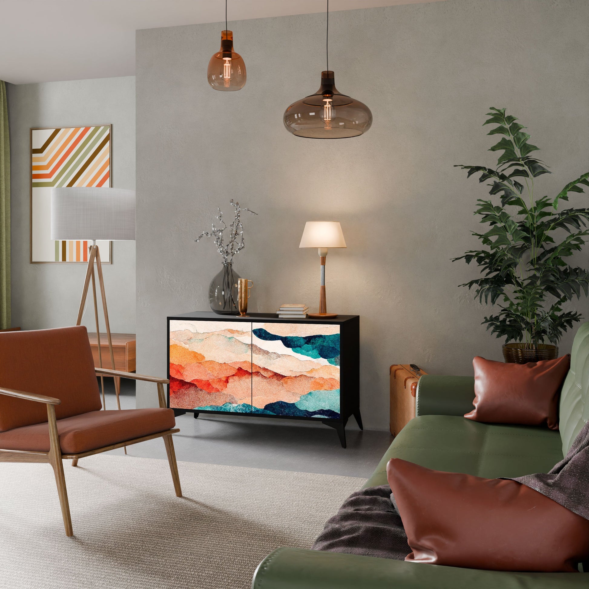 ABSTRACT LANDSCAPE 2-Door Sideboard in Black Finish