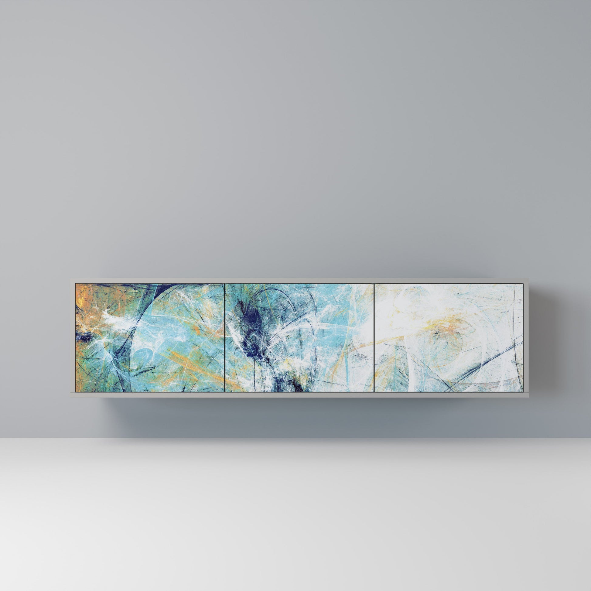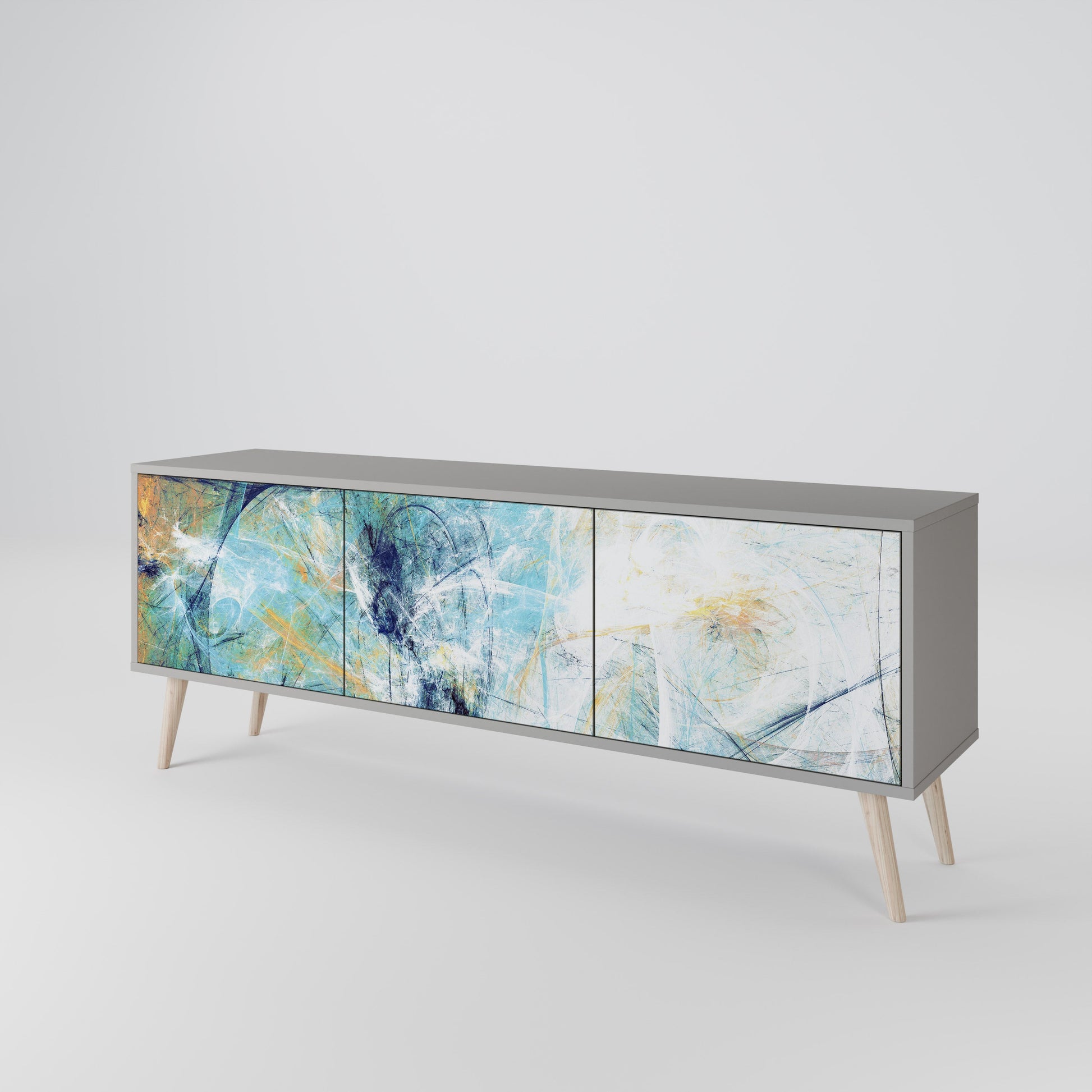 ABSTRACT THOUGHTS 3-Door TV Stand in Grey Finish