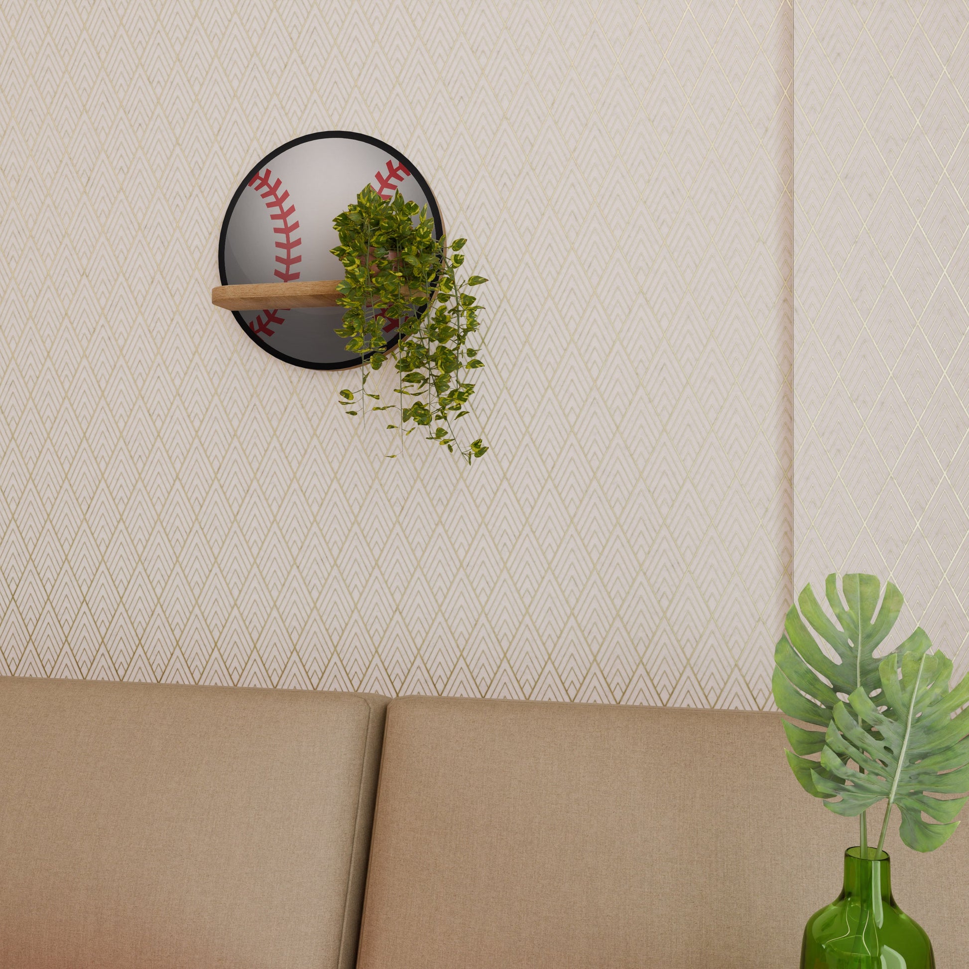 BASEBALL AlLURE Round Art Shelf In Oak Effect